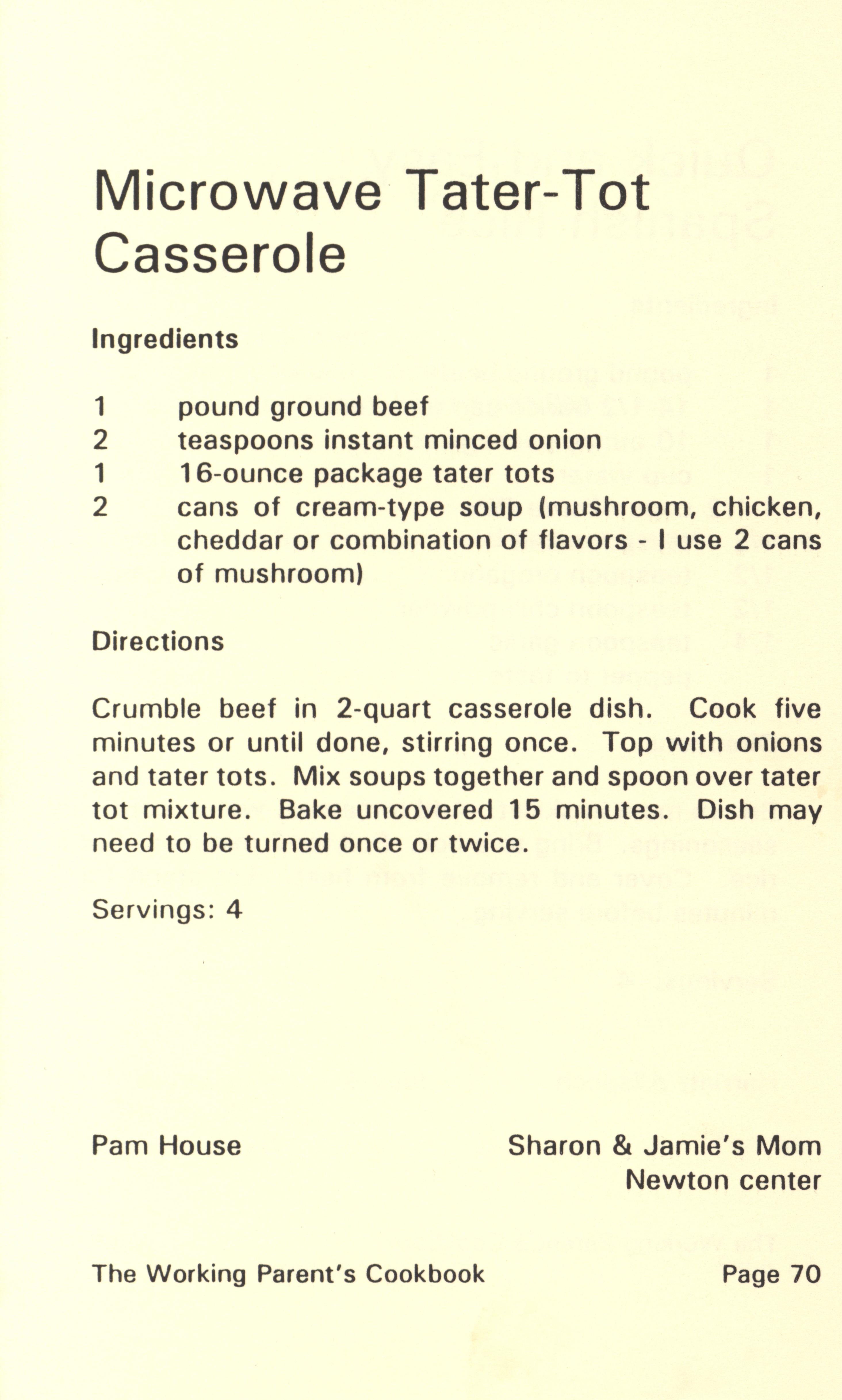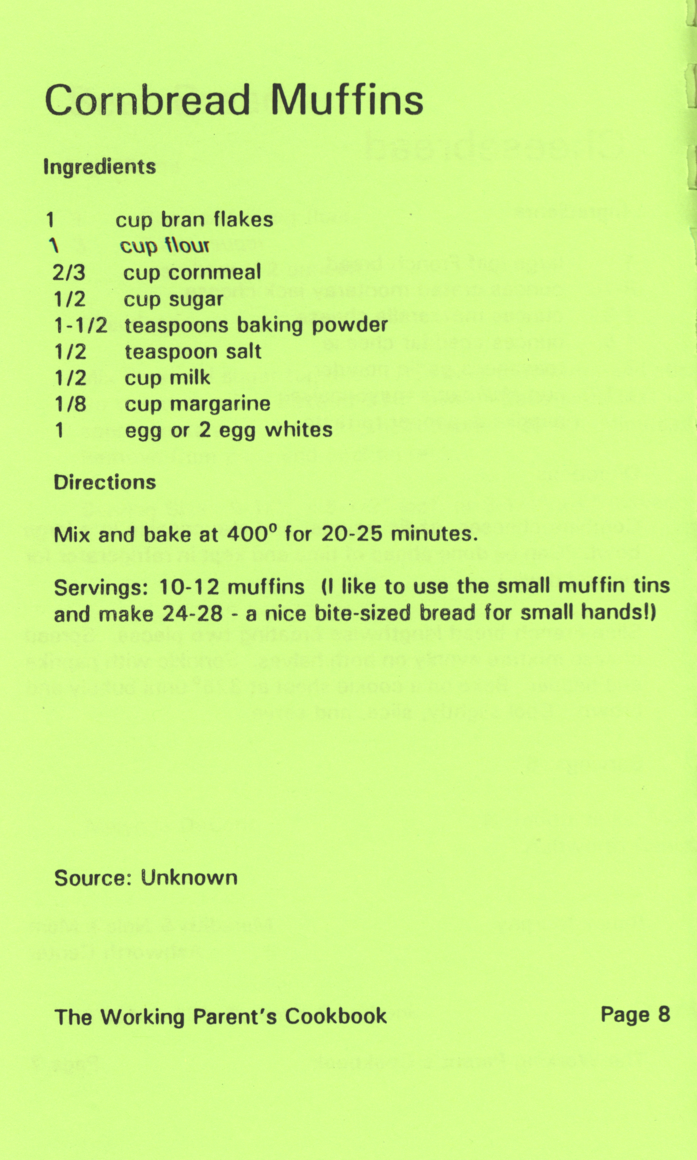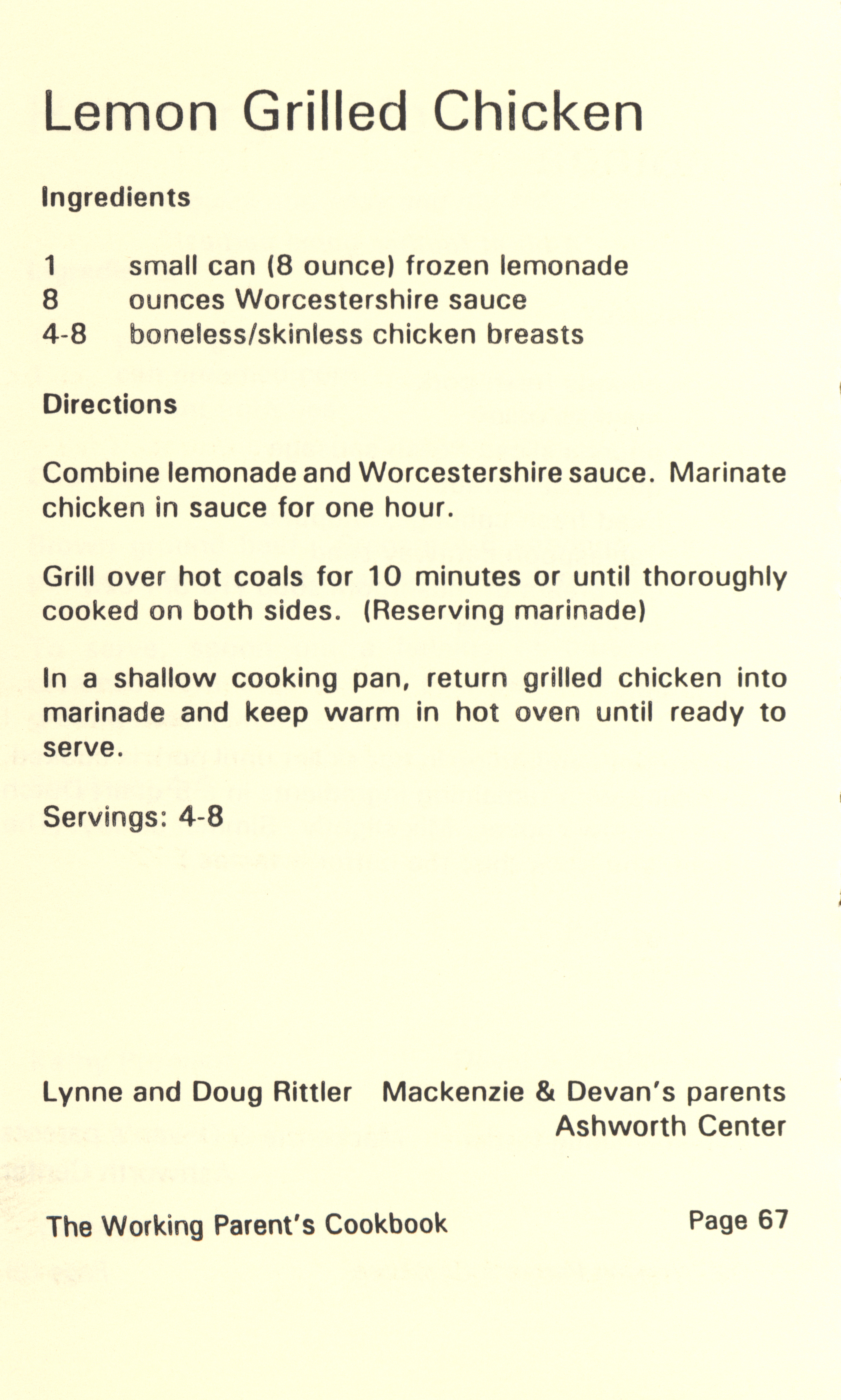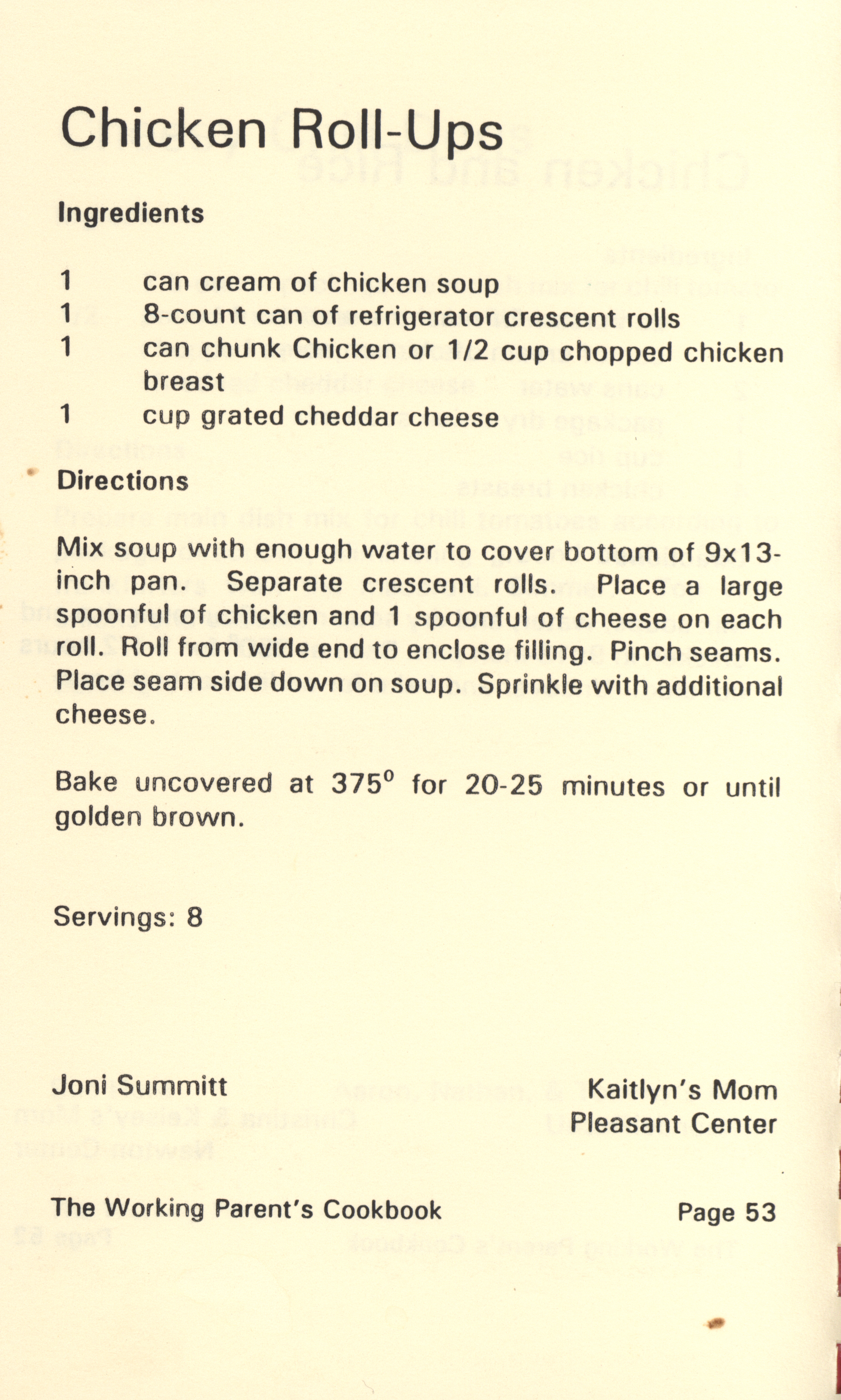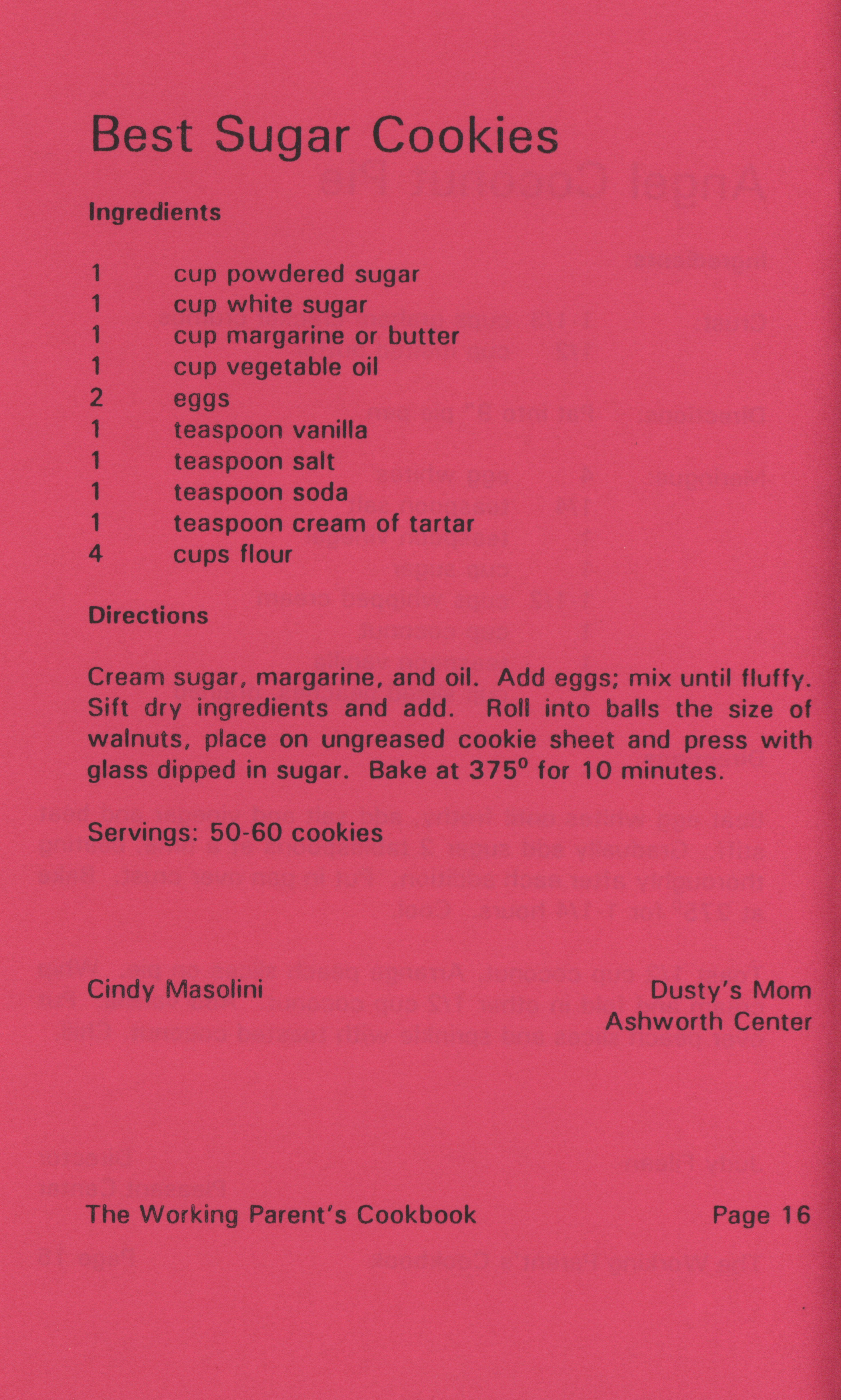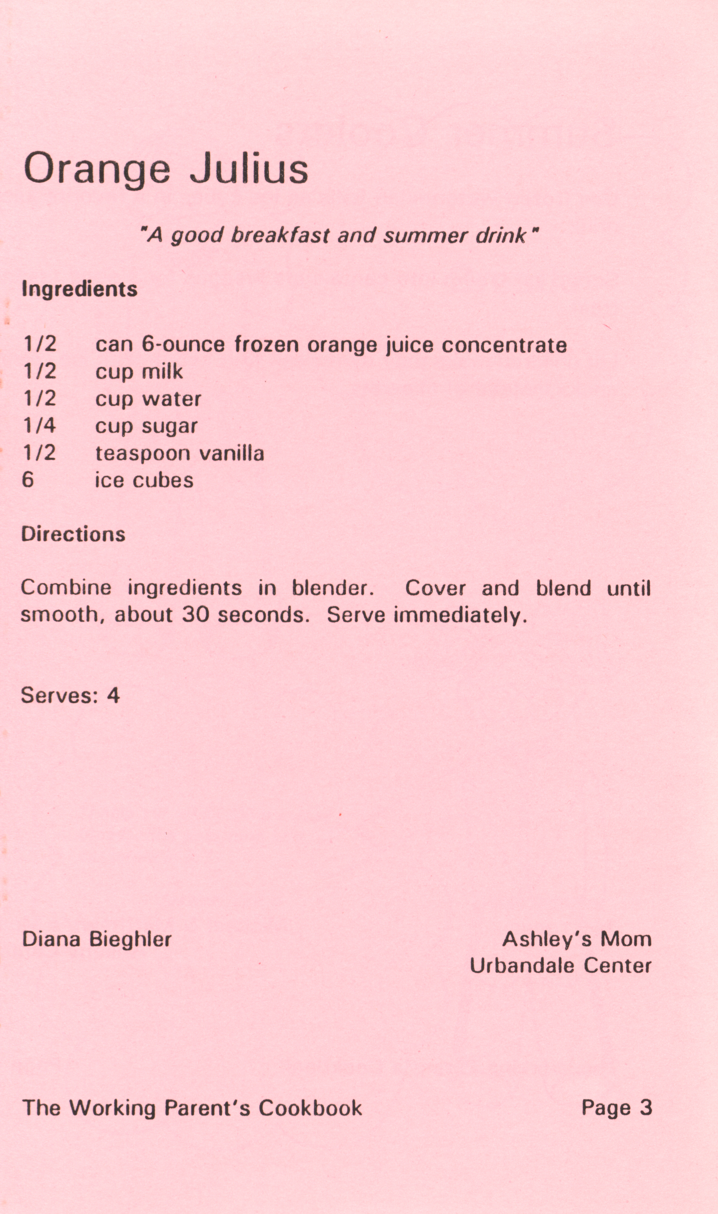 - "Working parent's cookbook: over 100 quick & easy family tested recipes", Cookbook Collection, Iowa State University Library Digital Collections