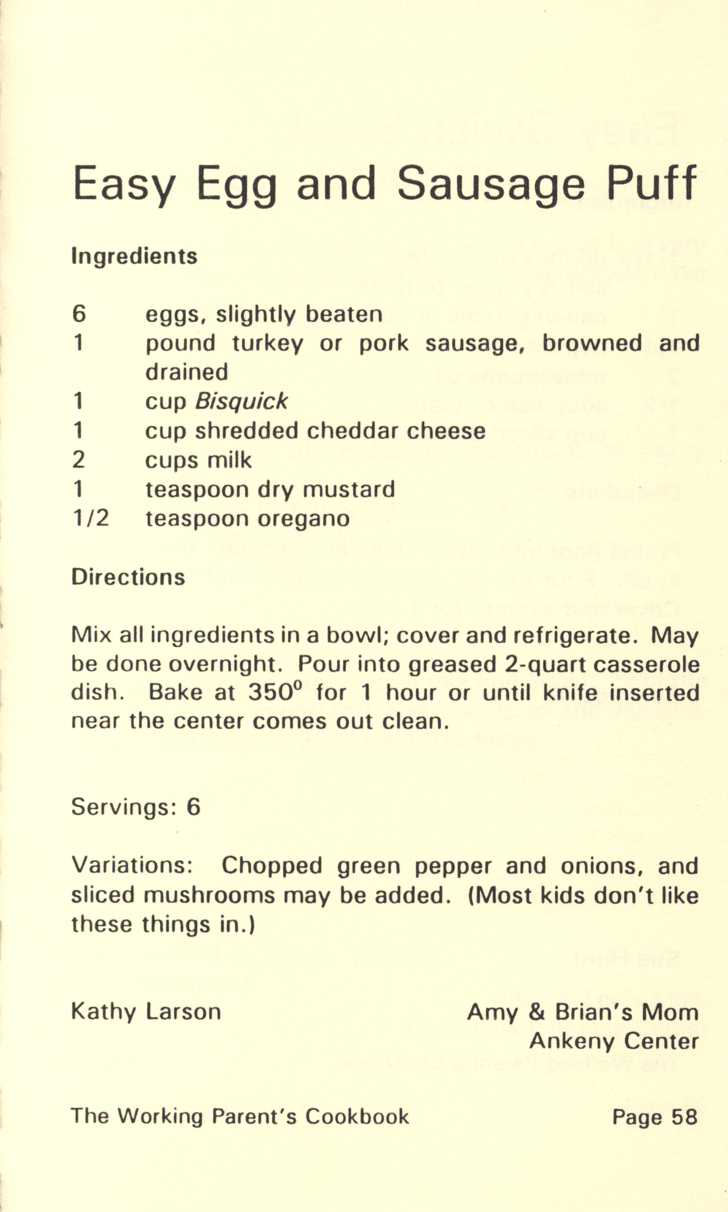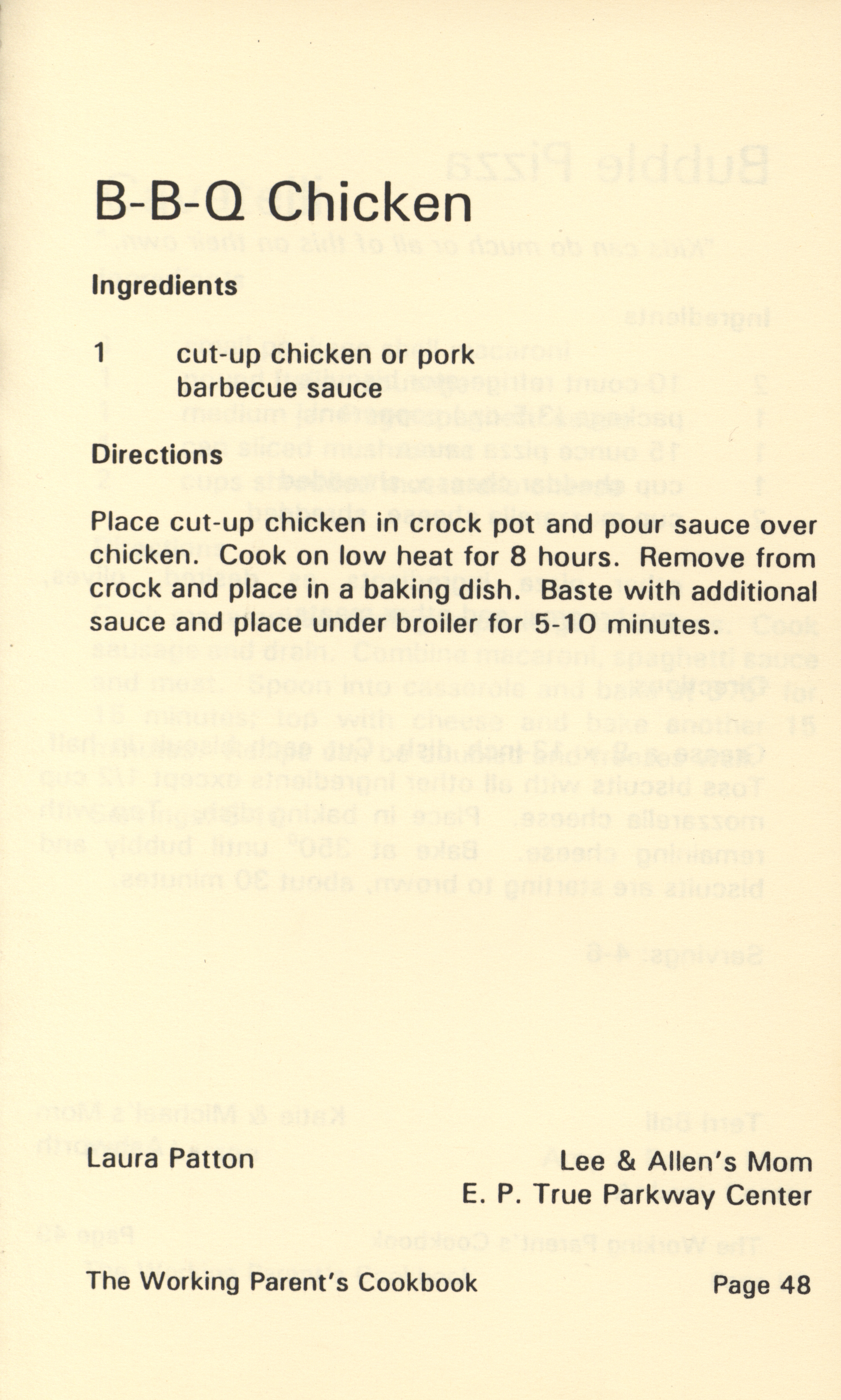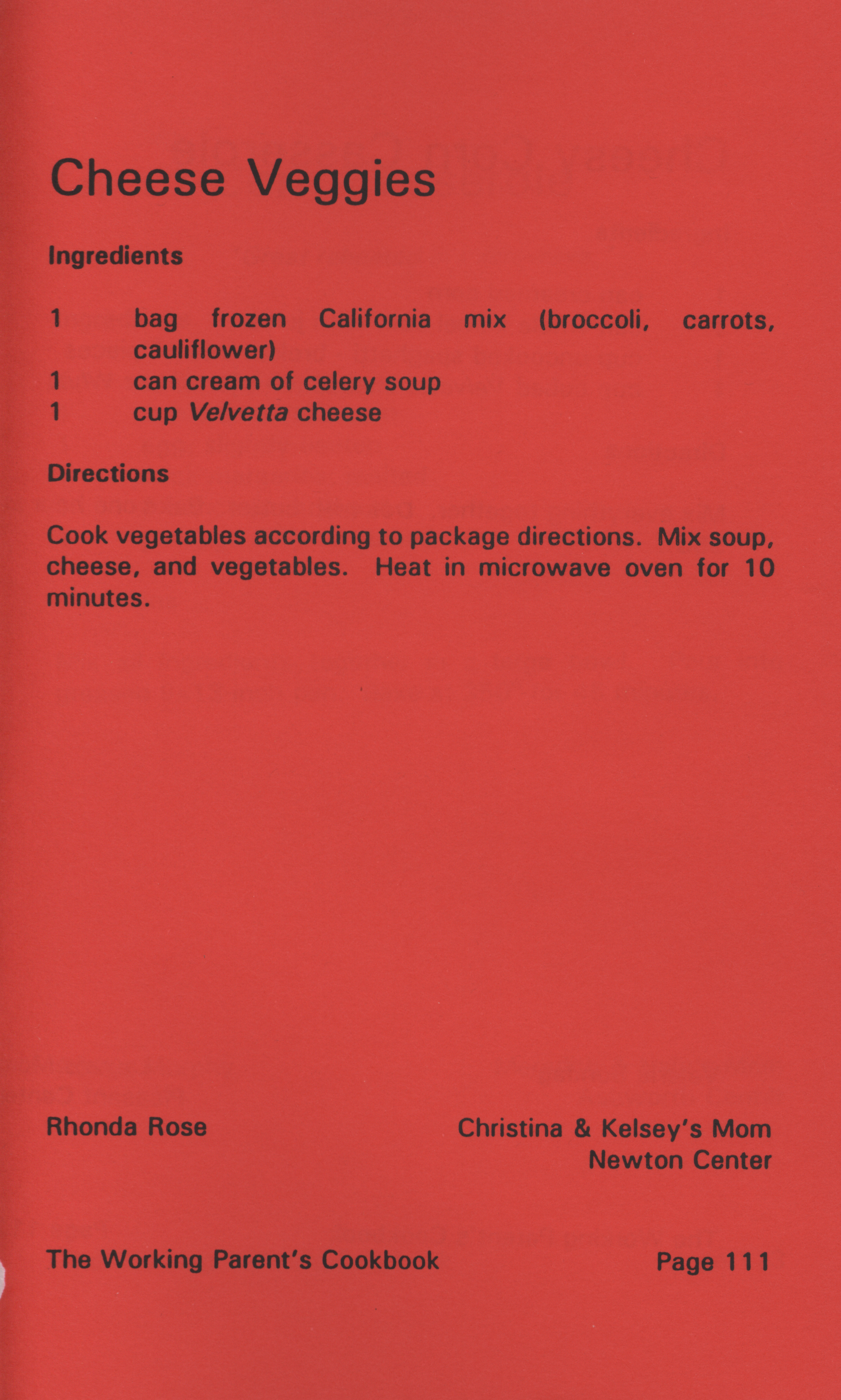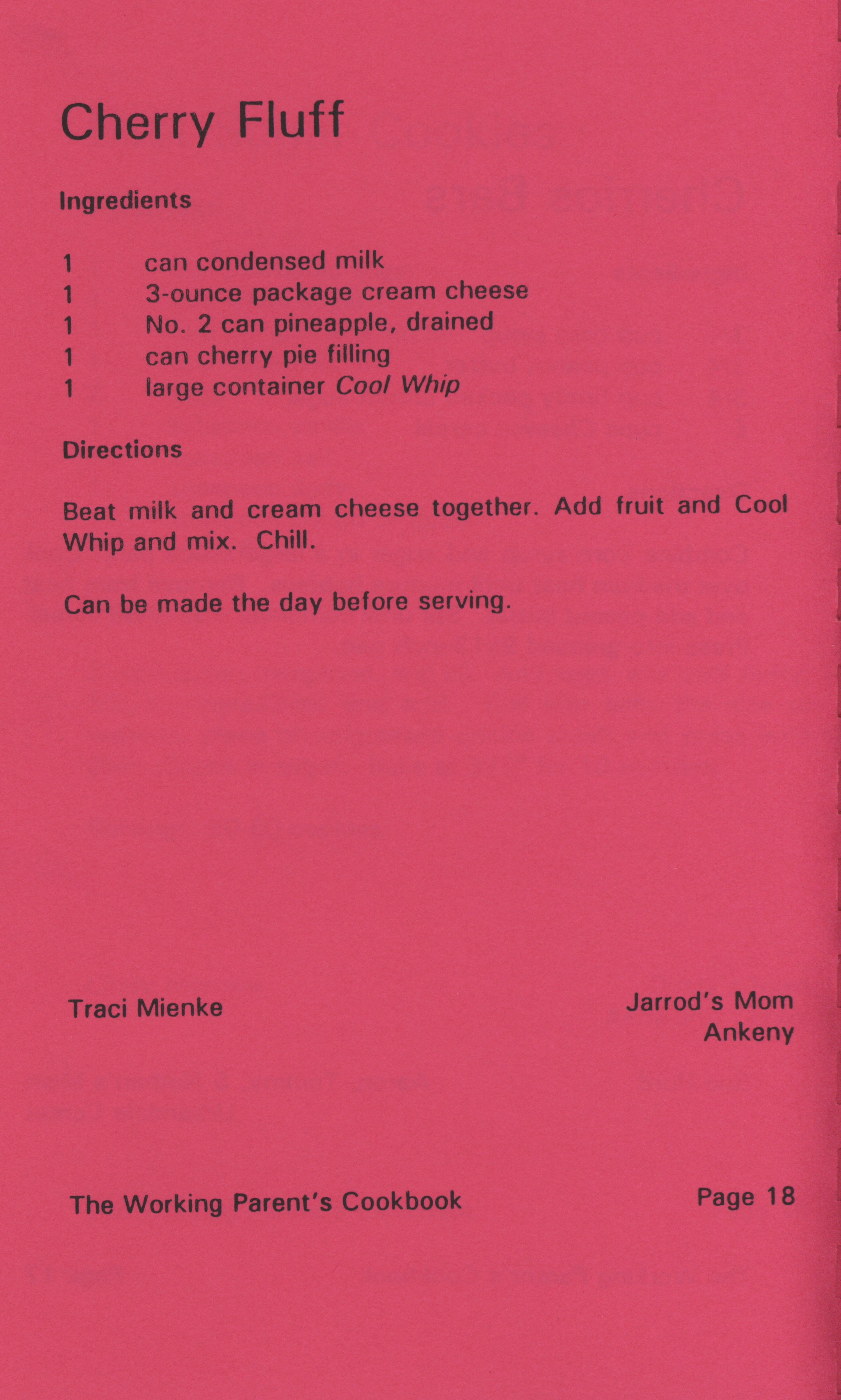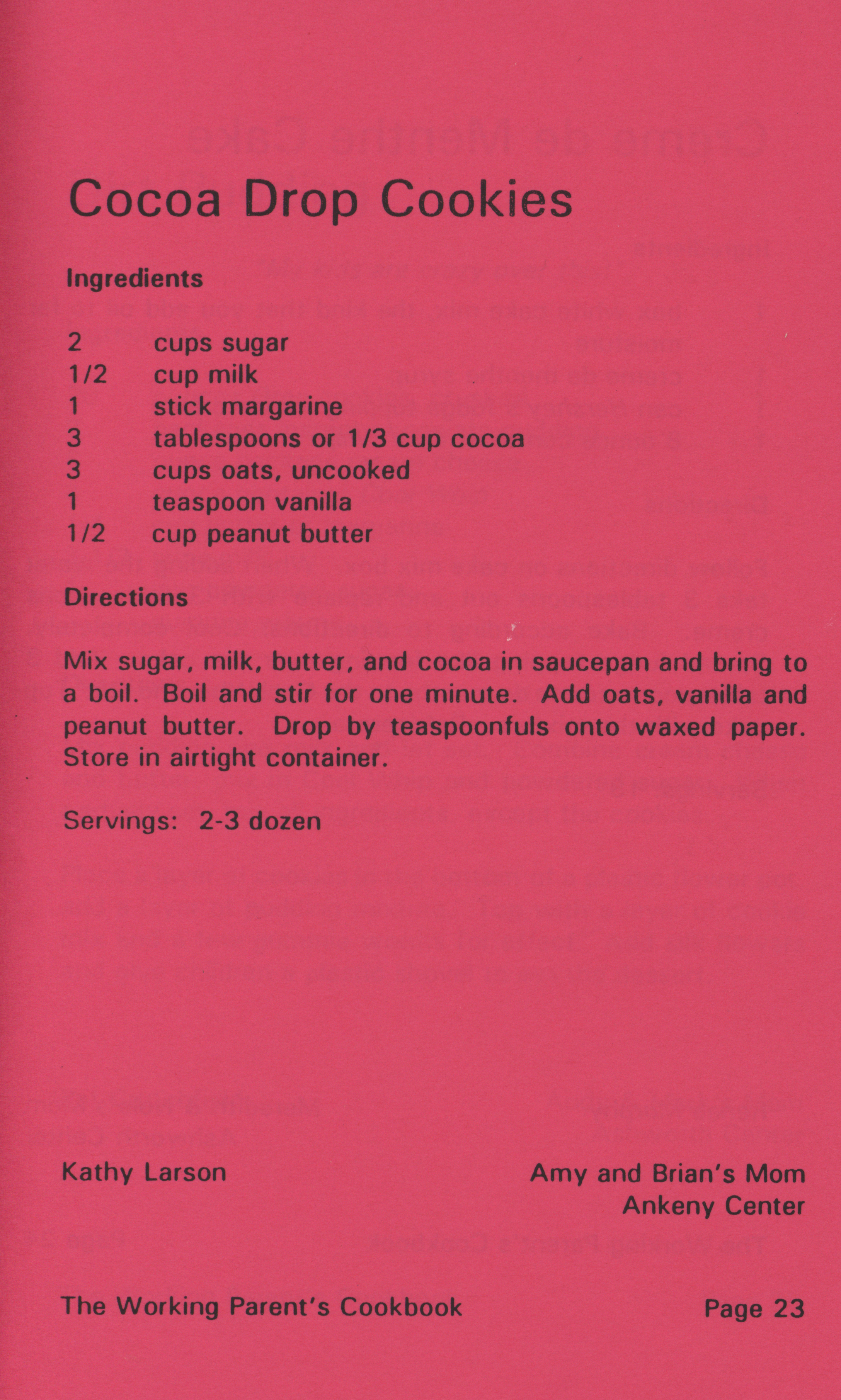 - "Working parent's cookbook: over 100 quick & easy family tested recipes", Cookbook Collection, Iowa State University Library Digital Collections