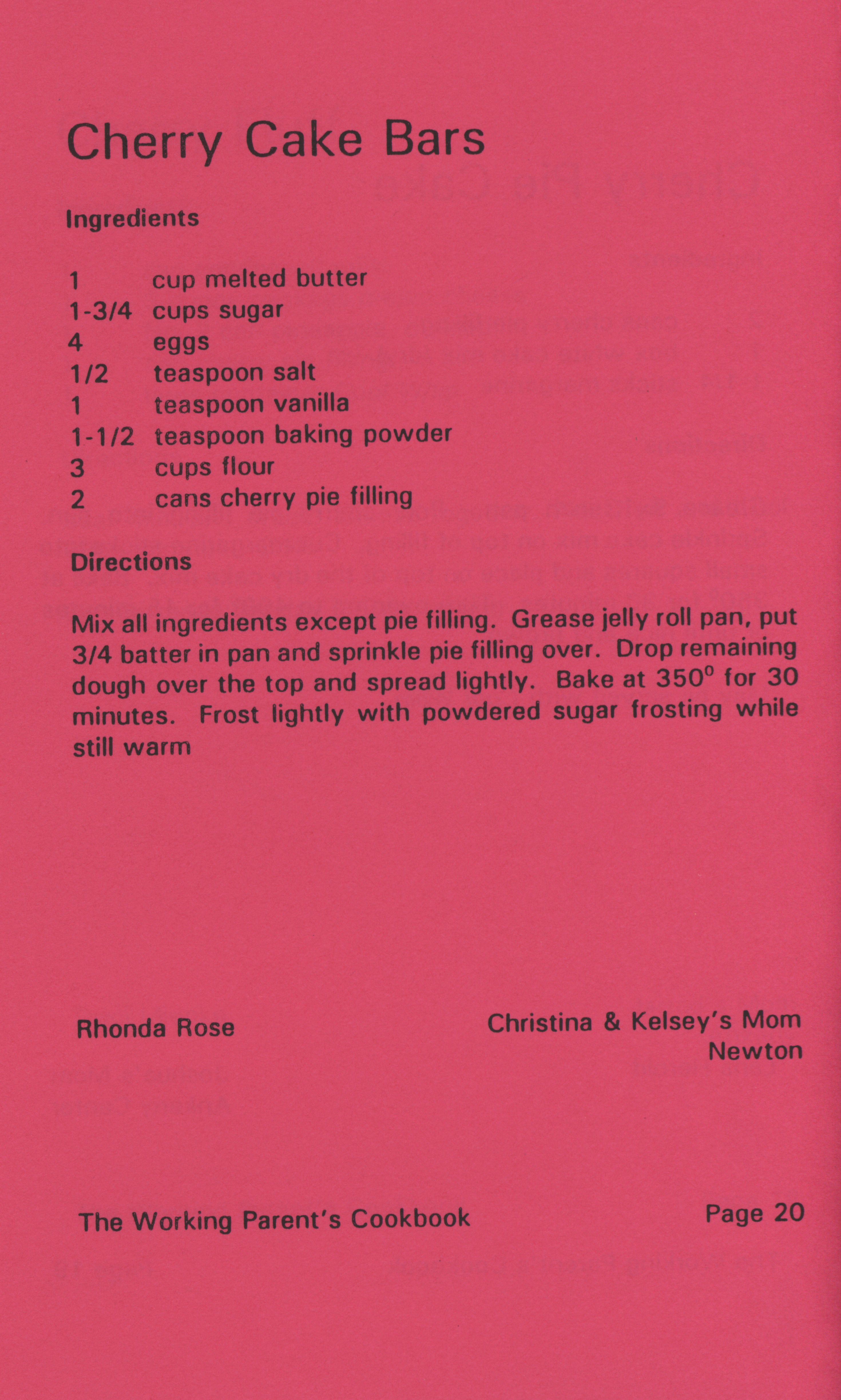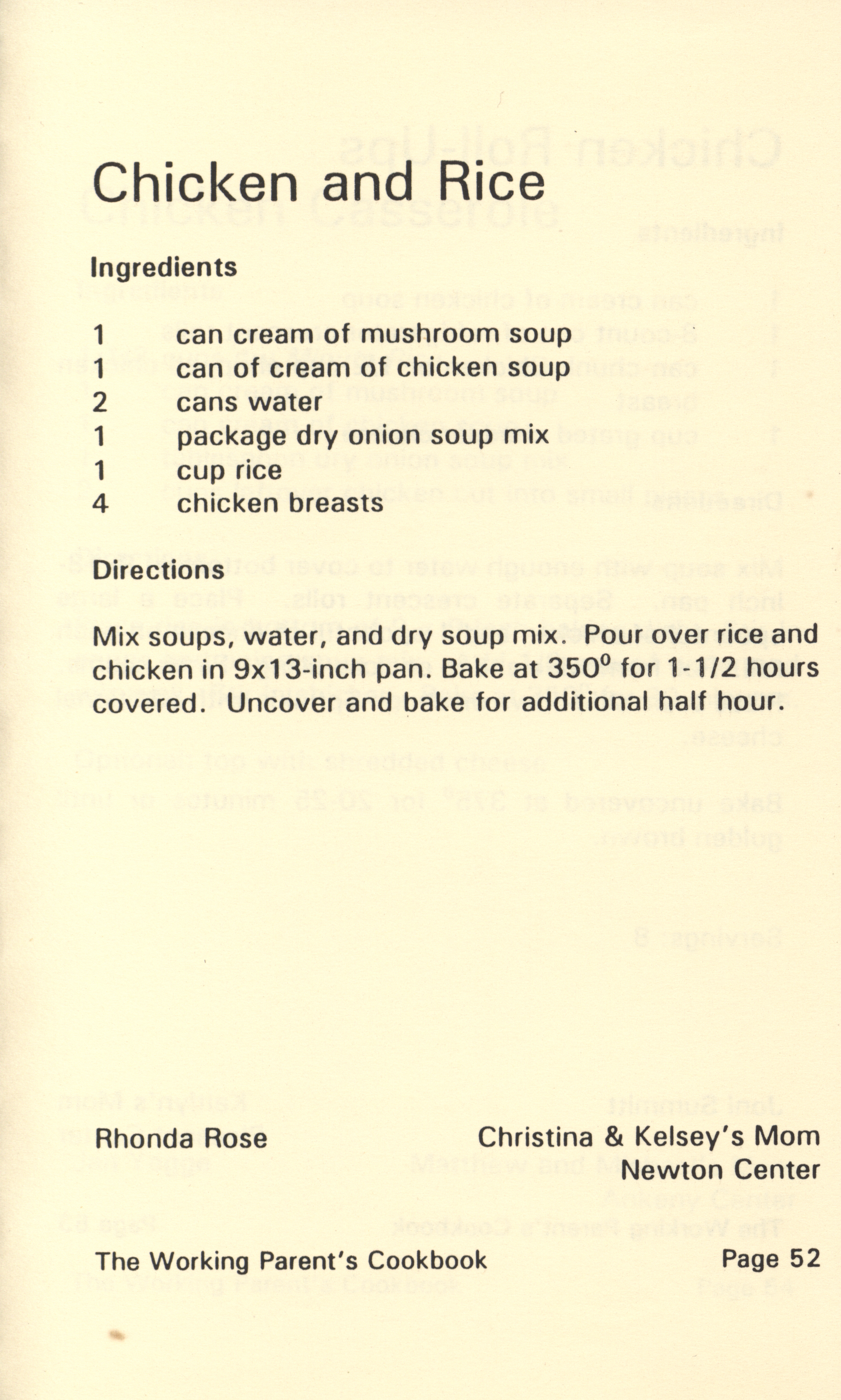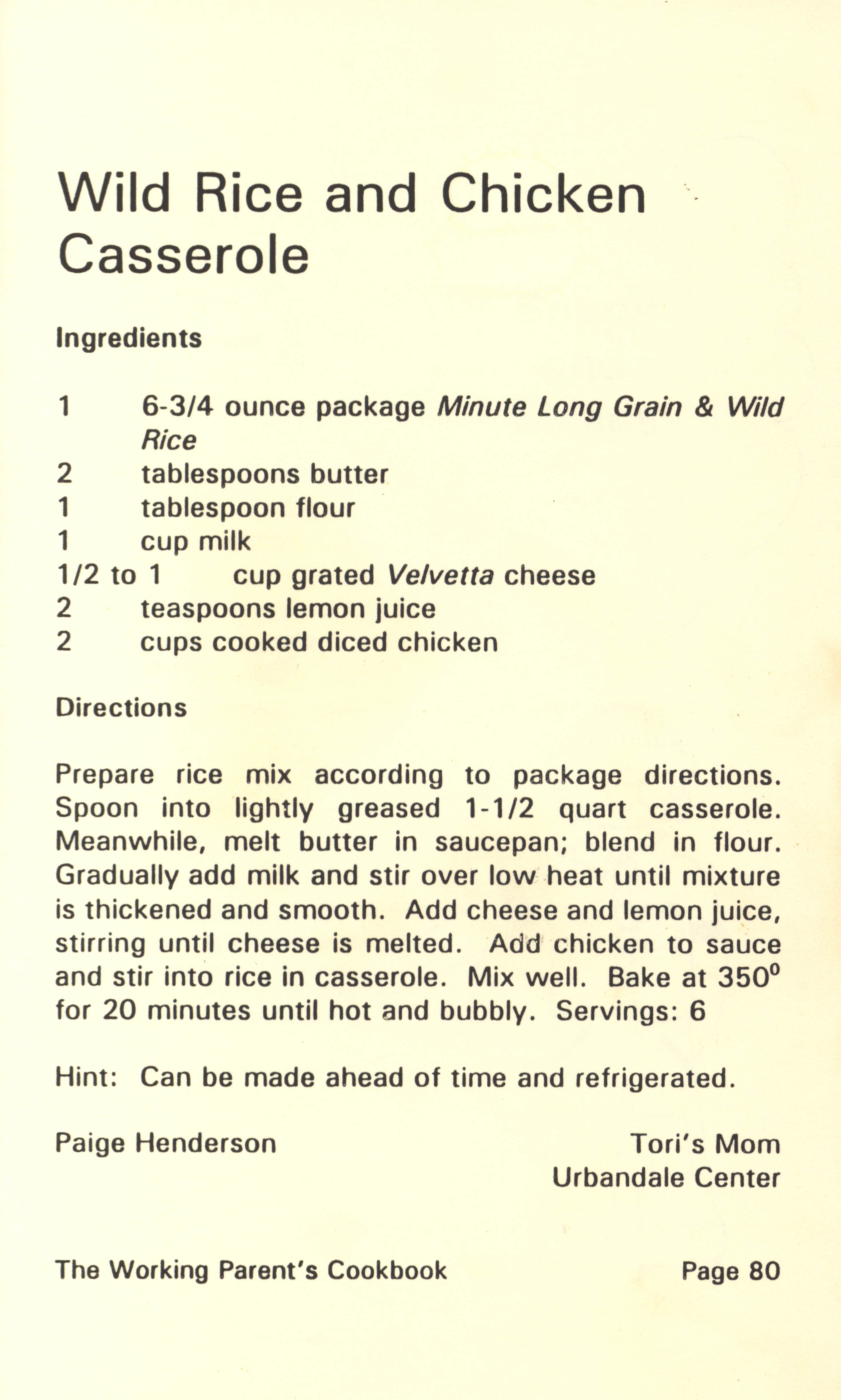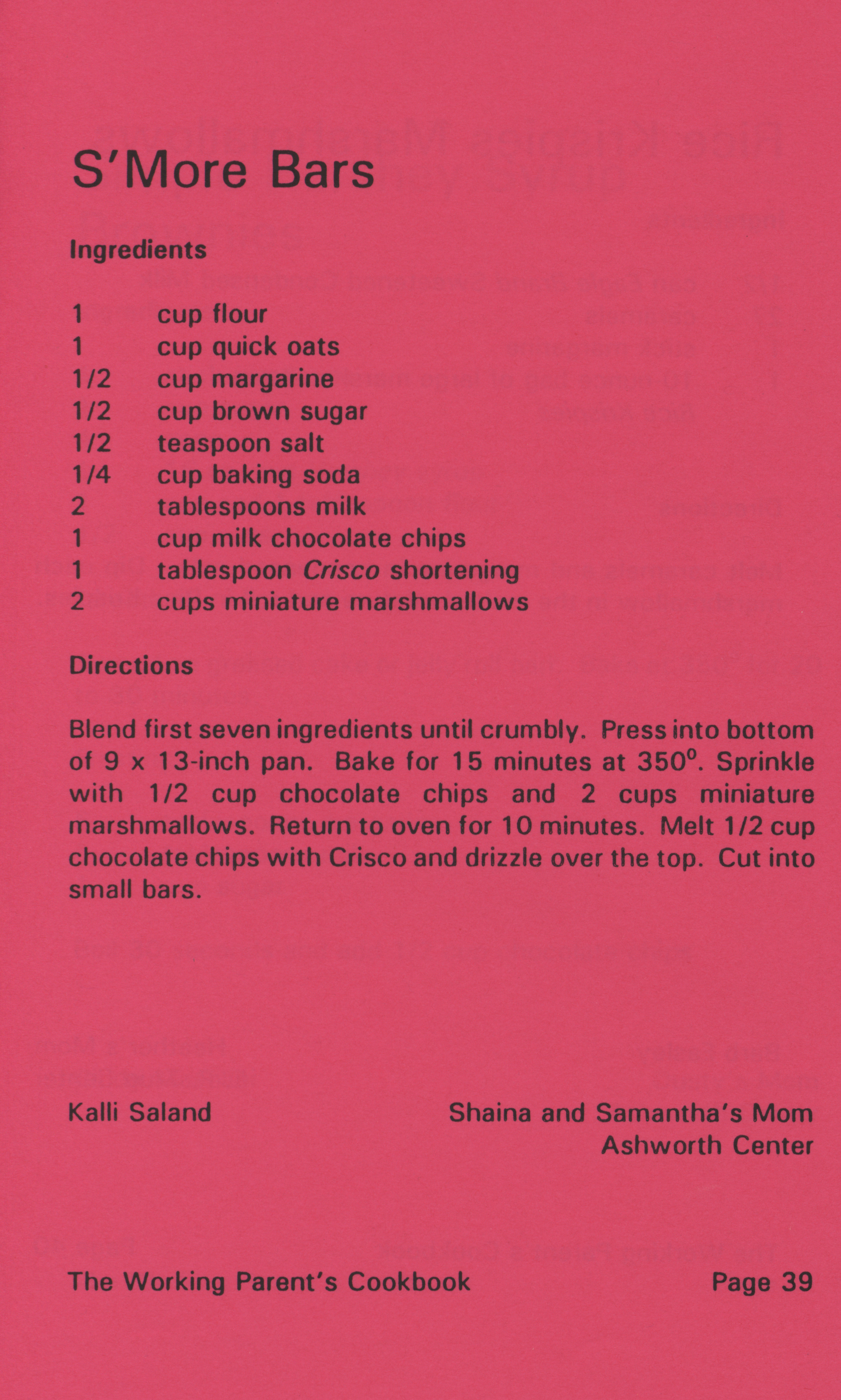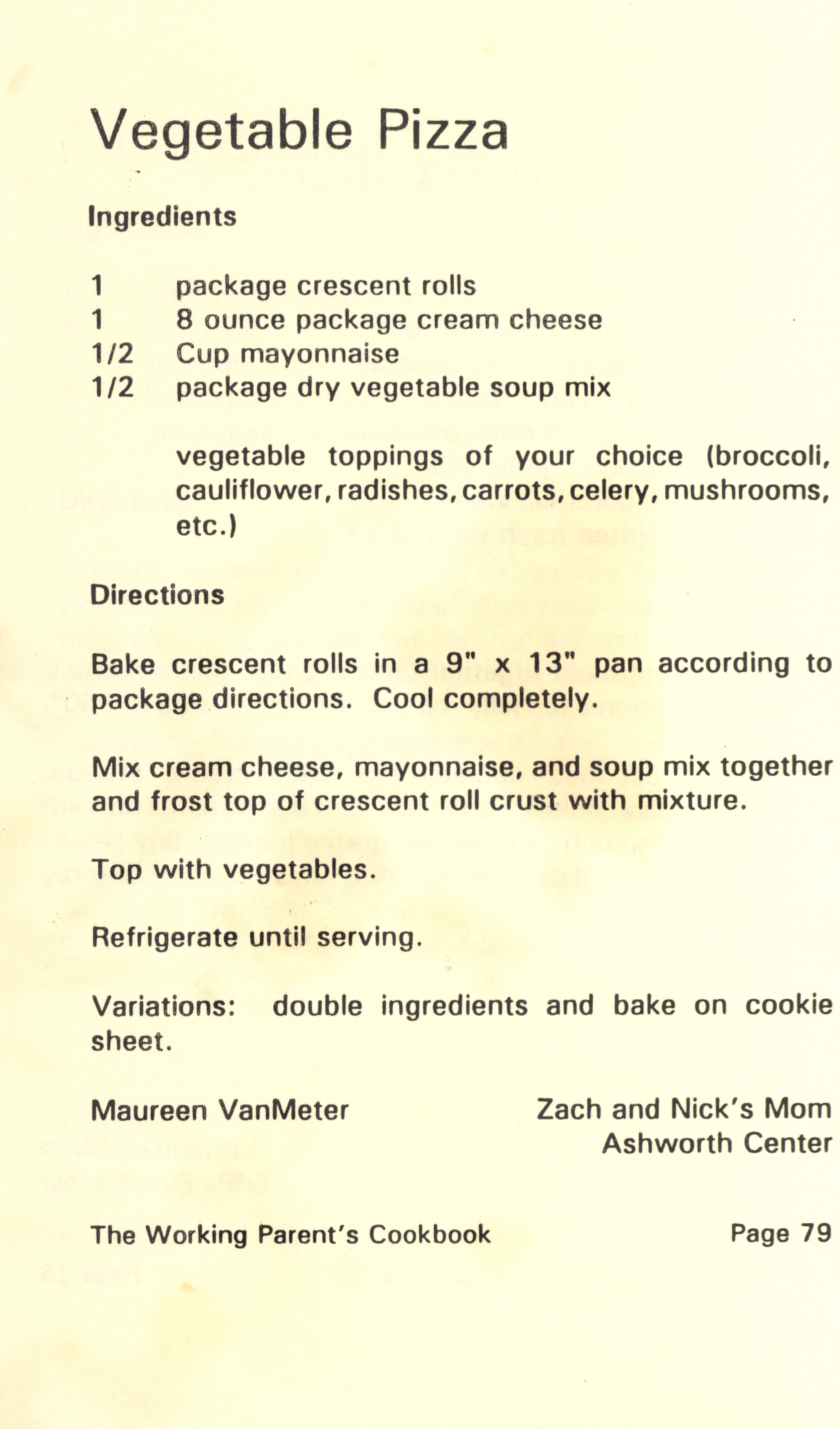 - "Working parent's cookbook: over 100 quick & easy family tested recipes", Cookbook Collection, Iowa State University Library Digital Collections