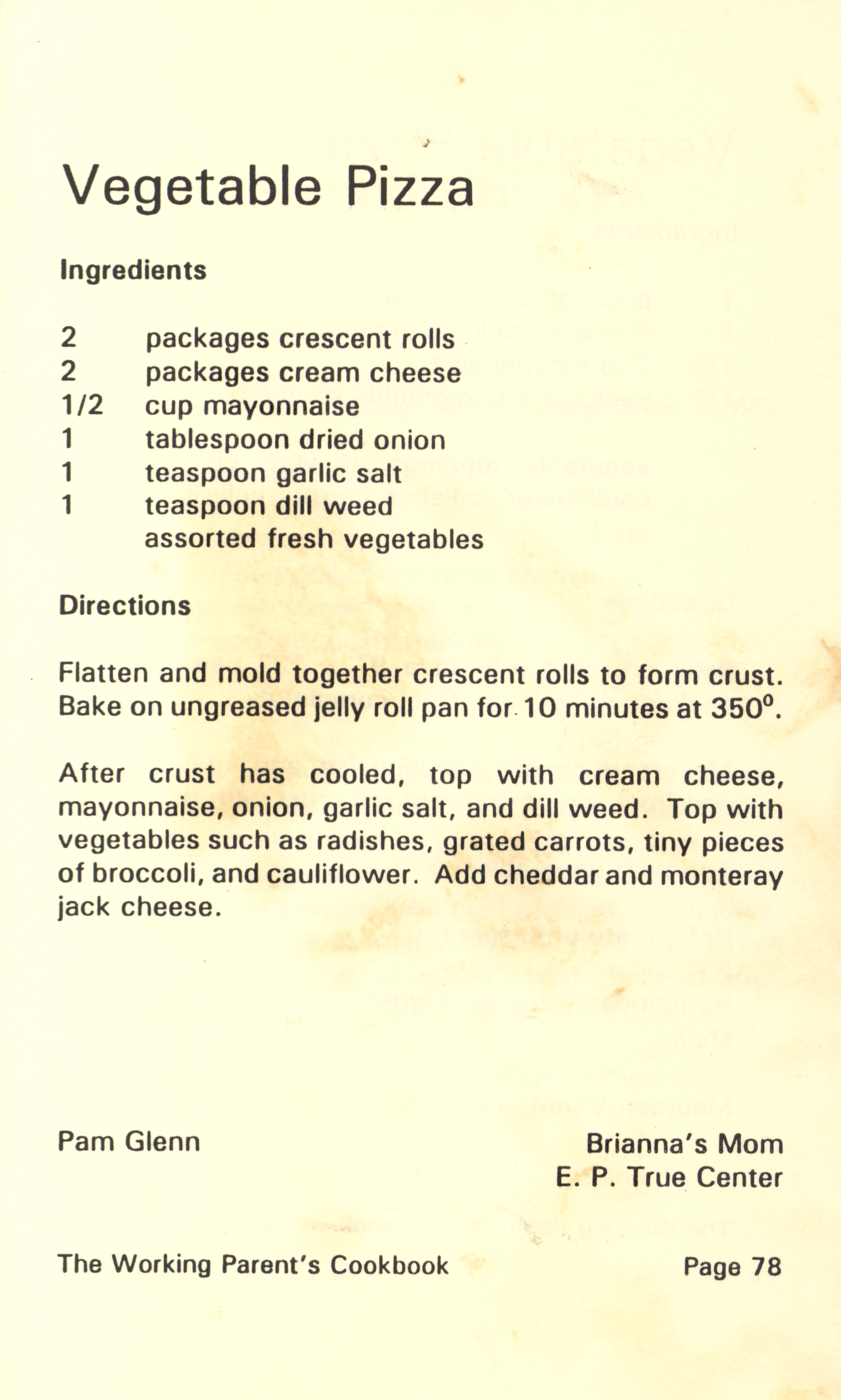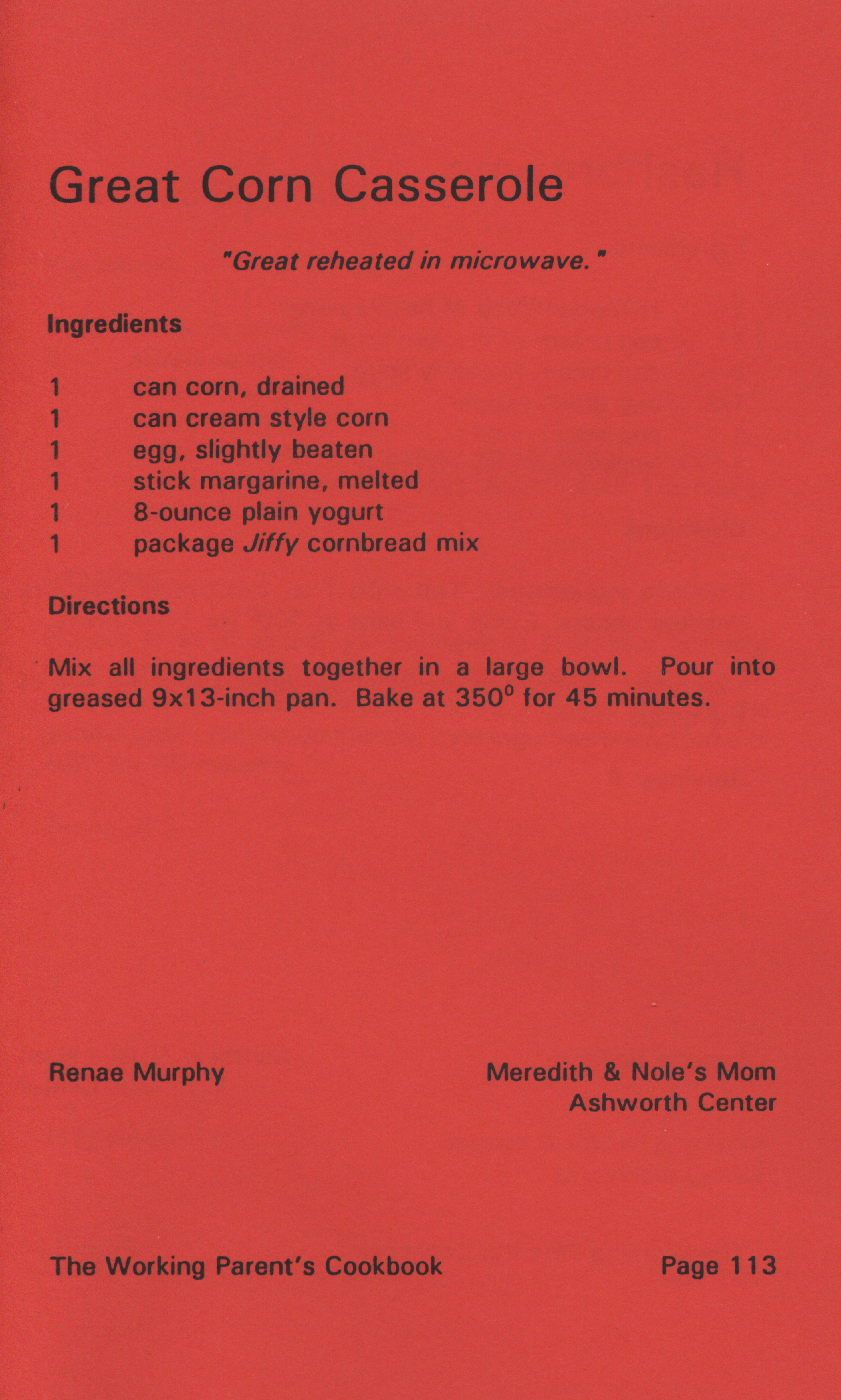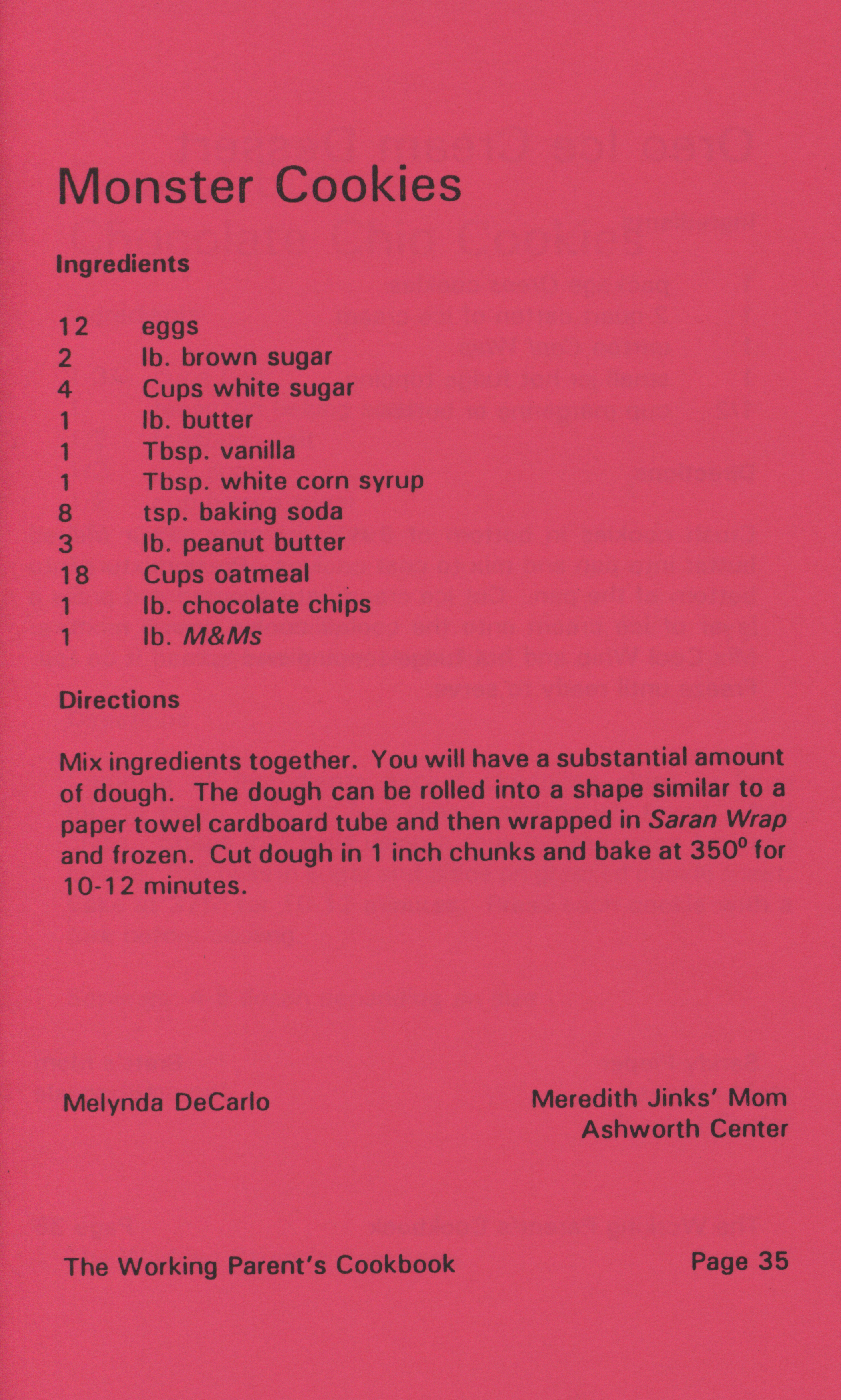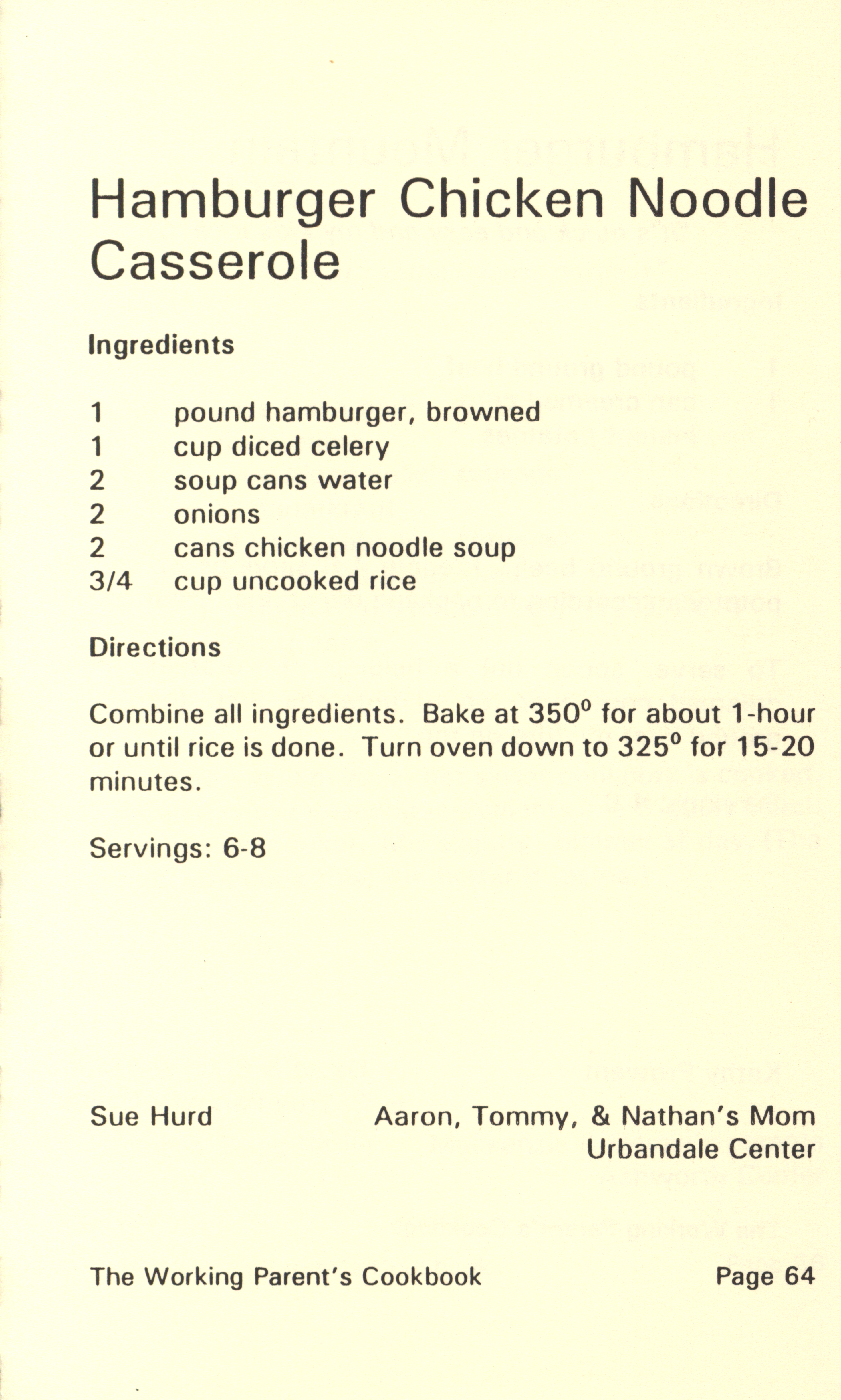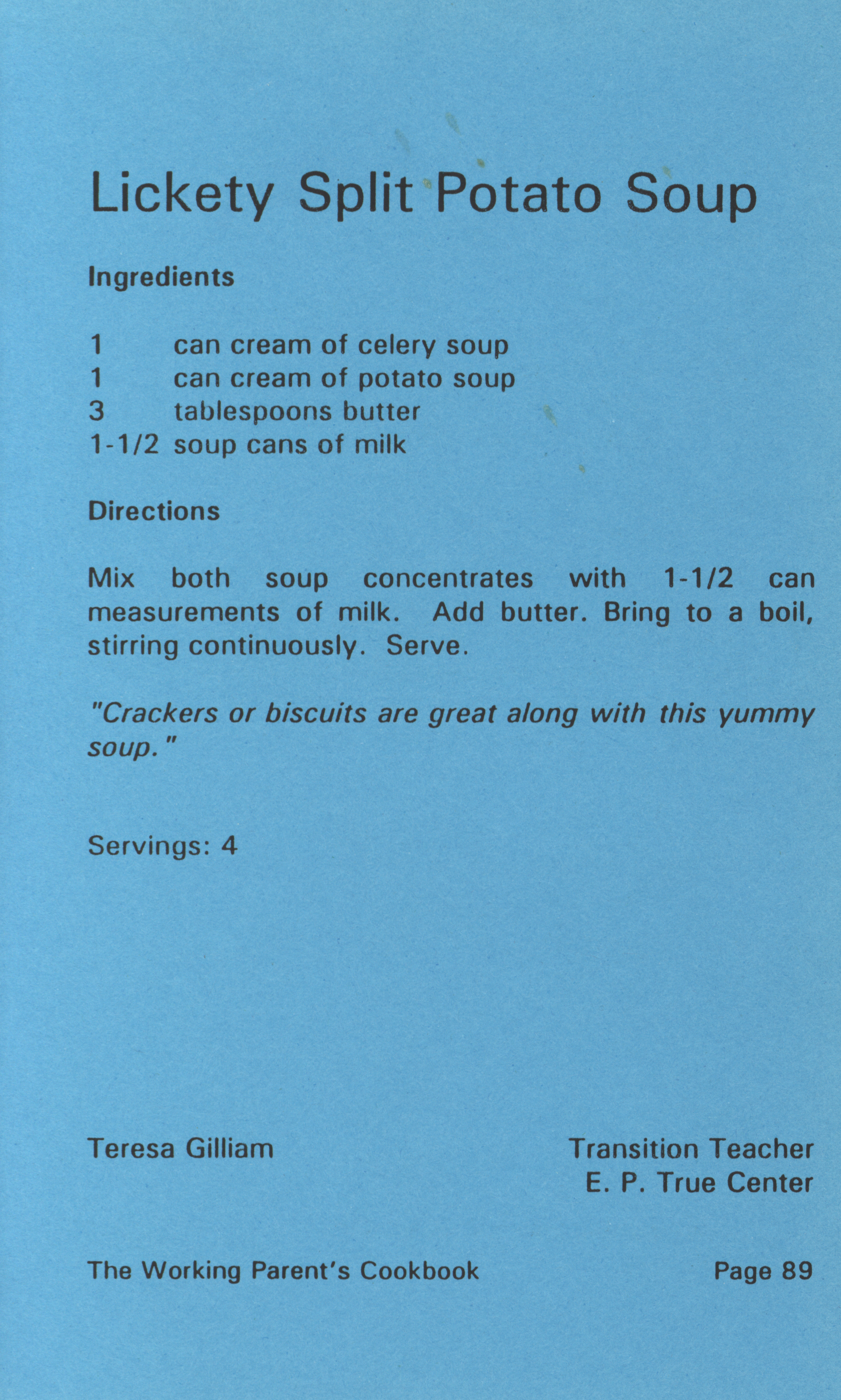 - "Working parent's cookbook: over 100 quick & easy family tested recipes", Cookbook Collection, Iowa State University Library Digital Collections
