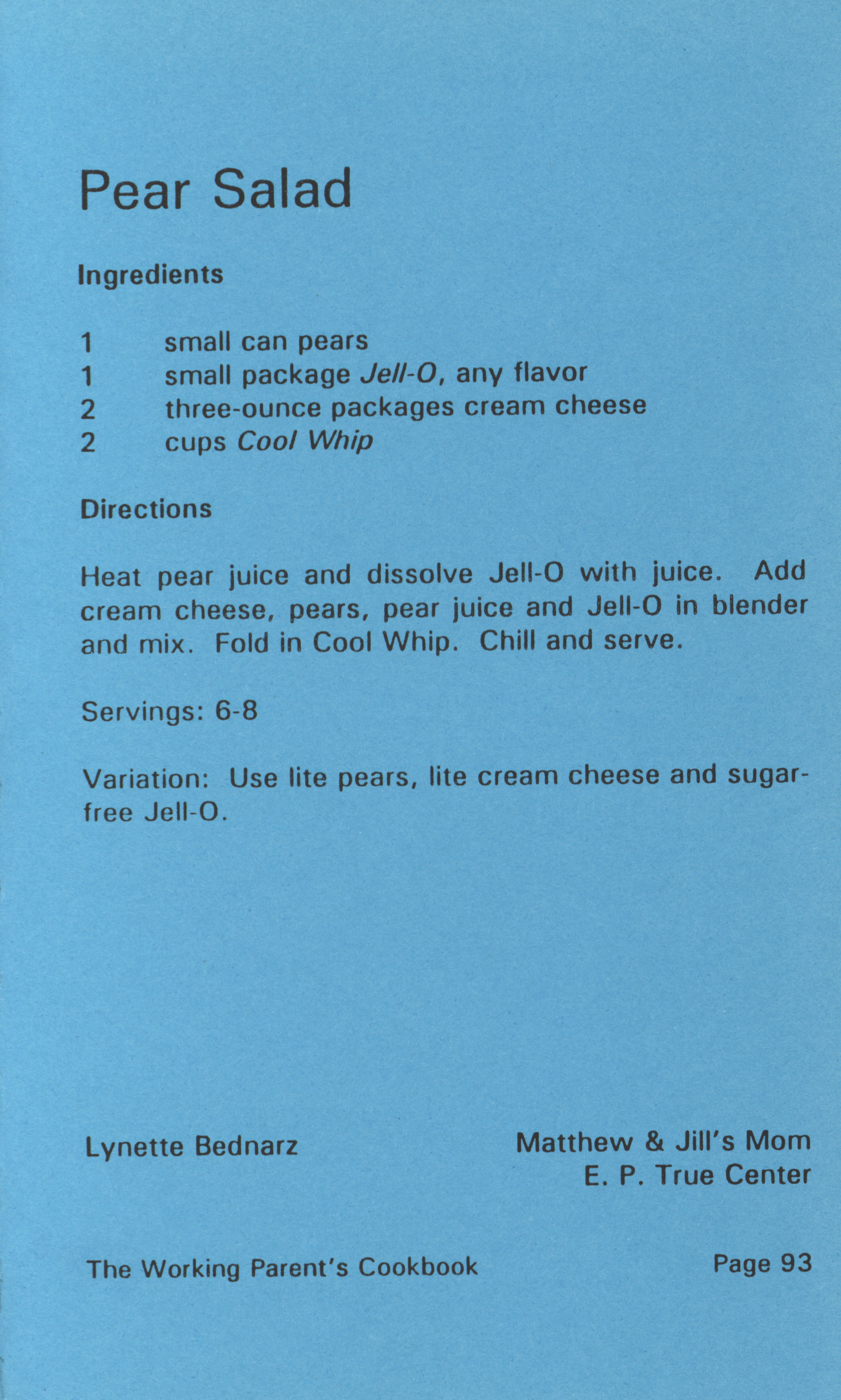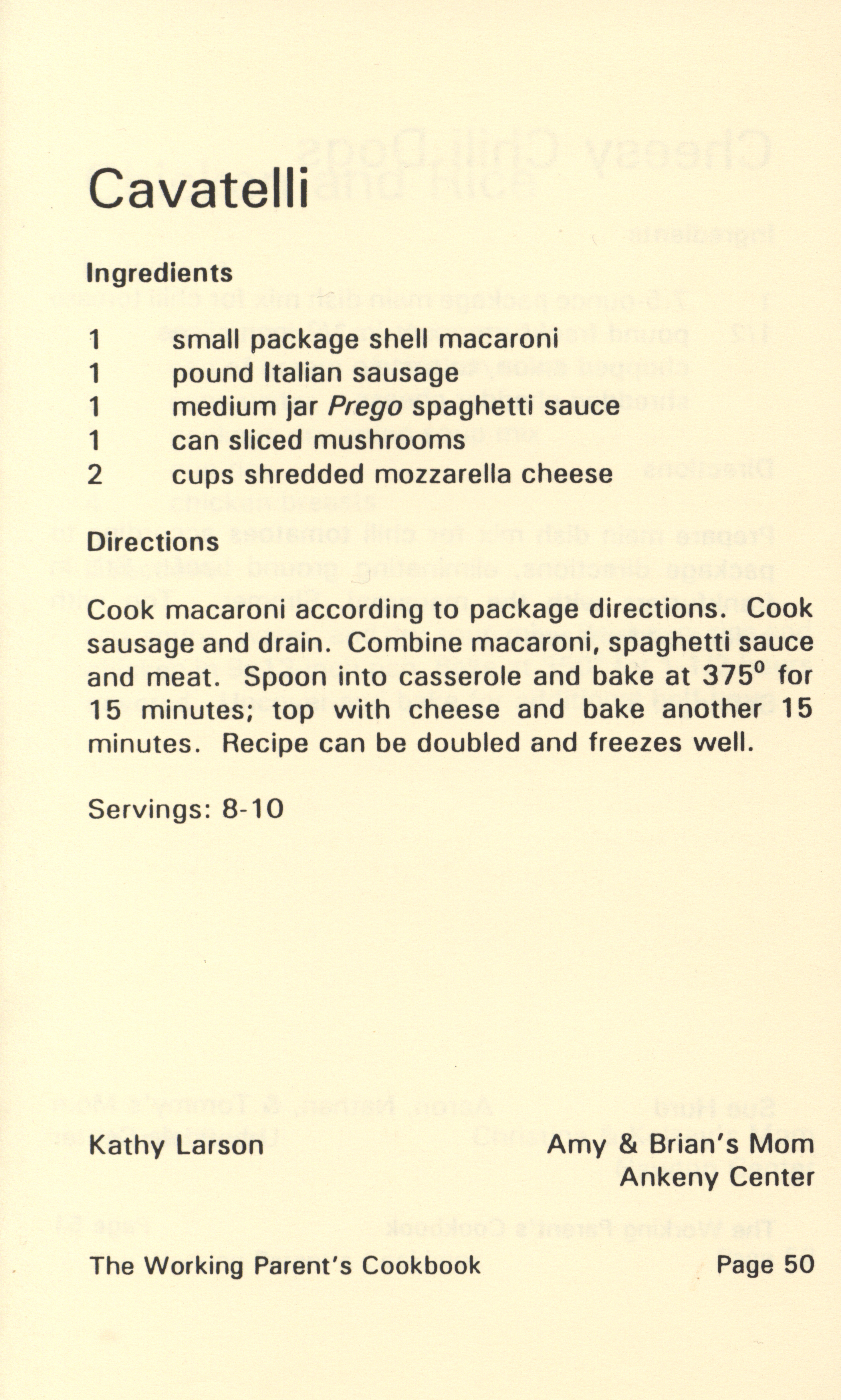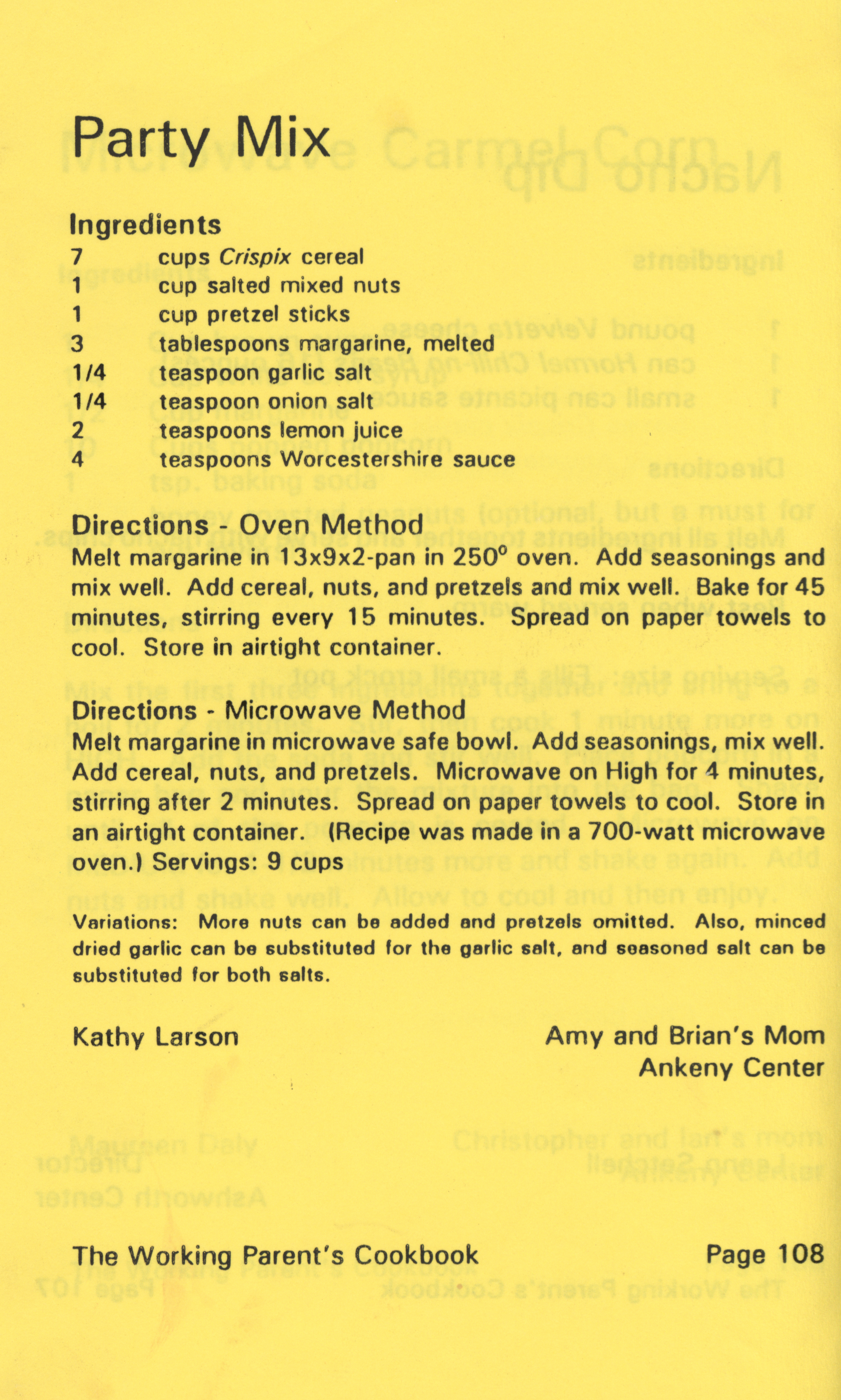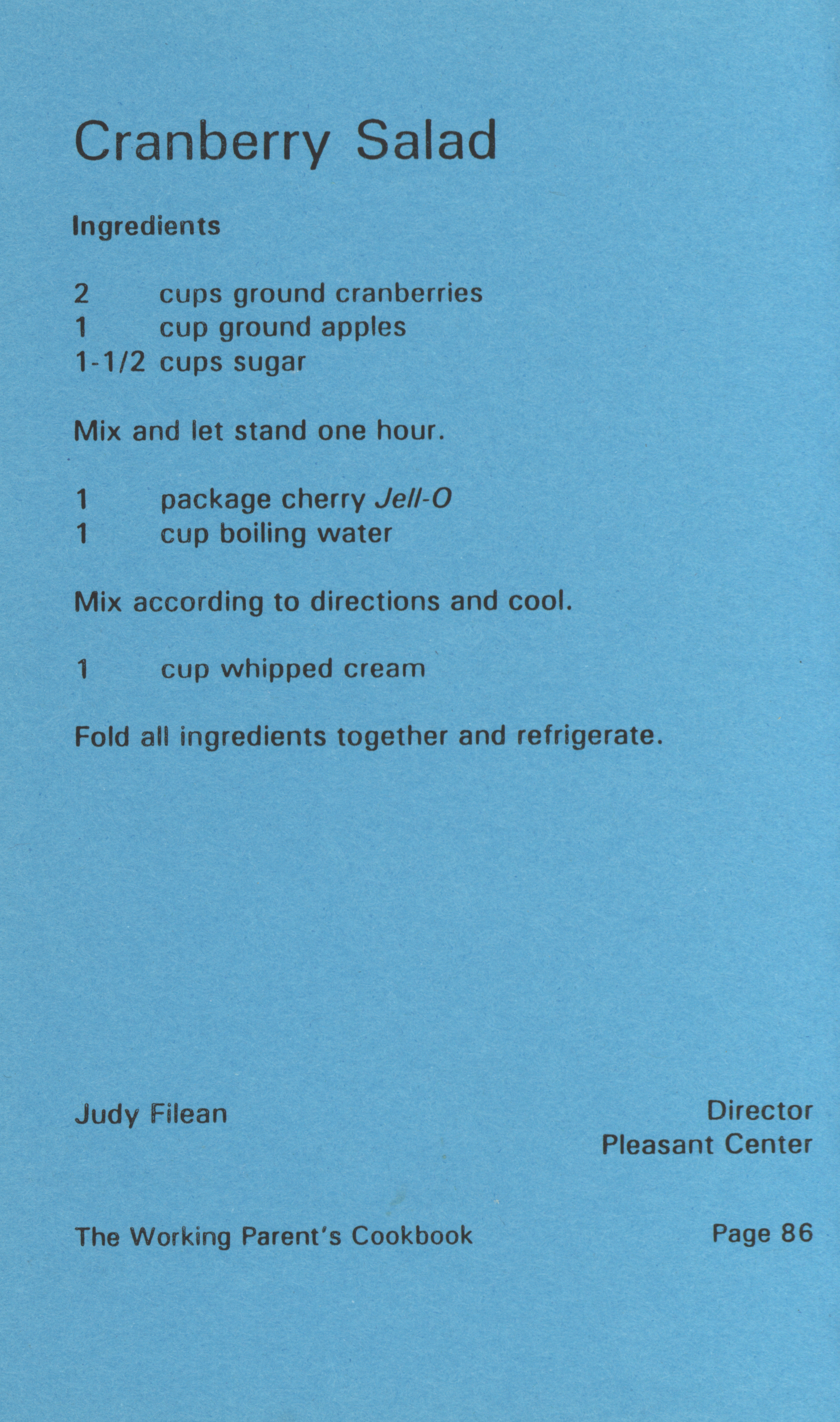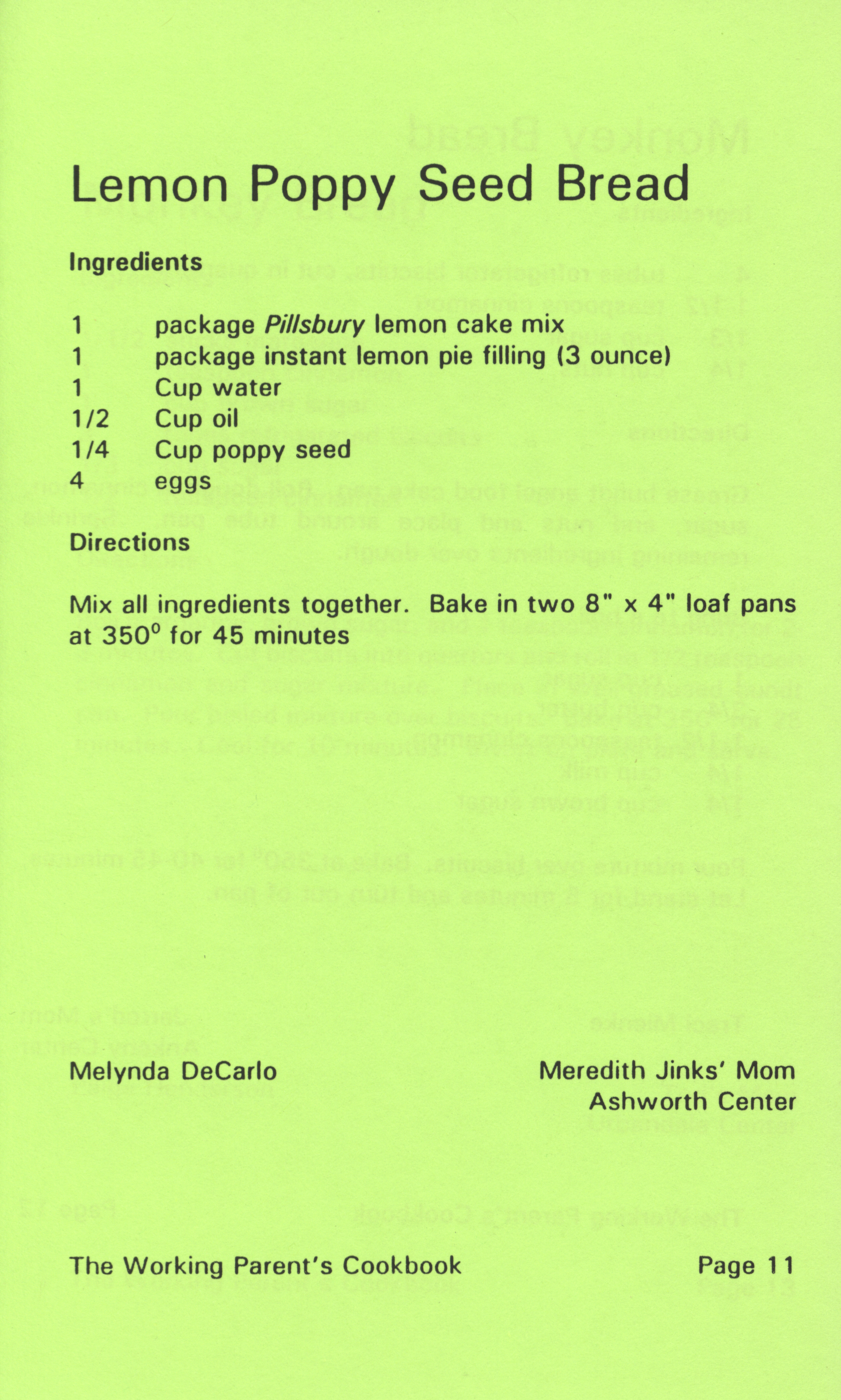 - "Working parent's cookbook: over 100 quick & easy family tested recipes", Cookbook Collection, Iowa State University Library Digital Collections