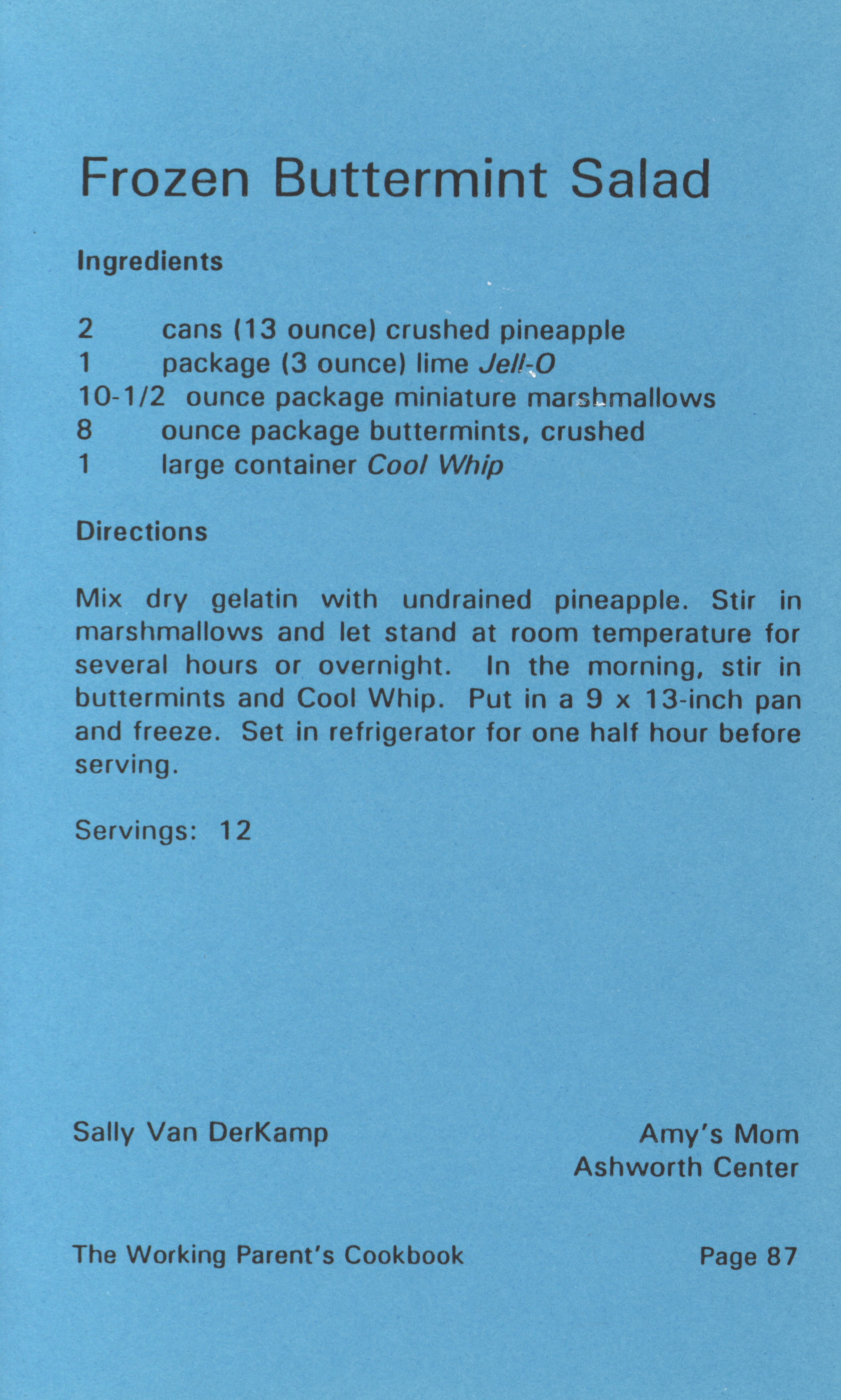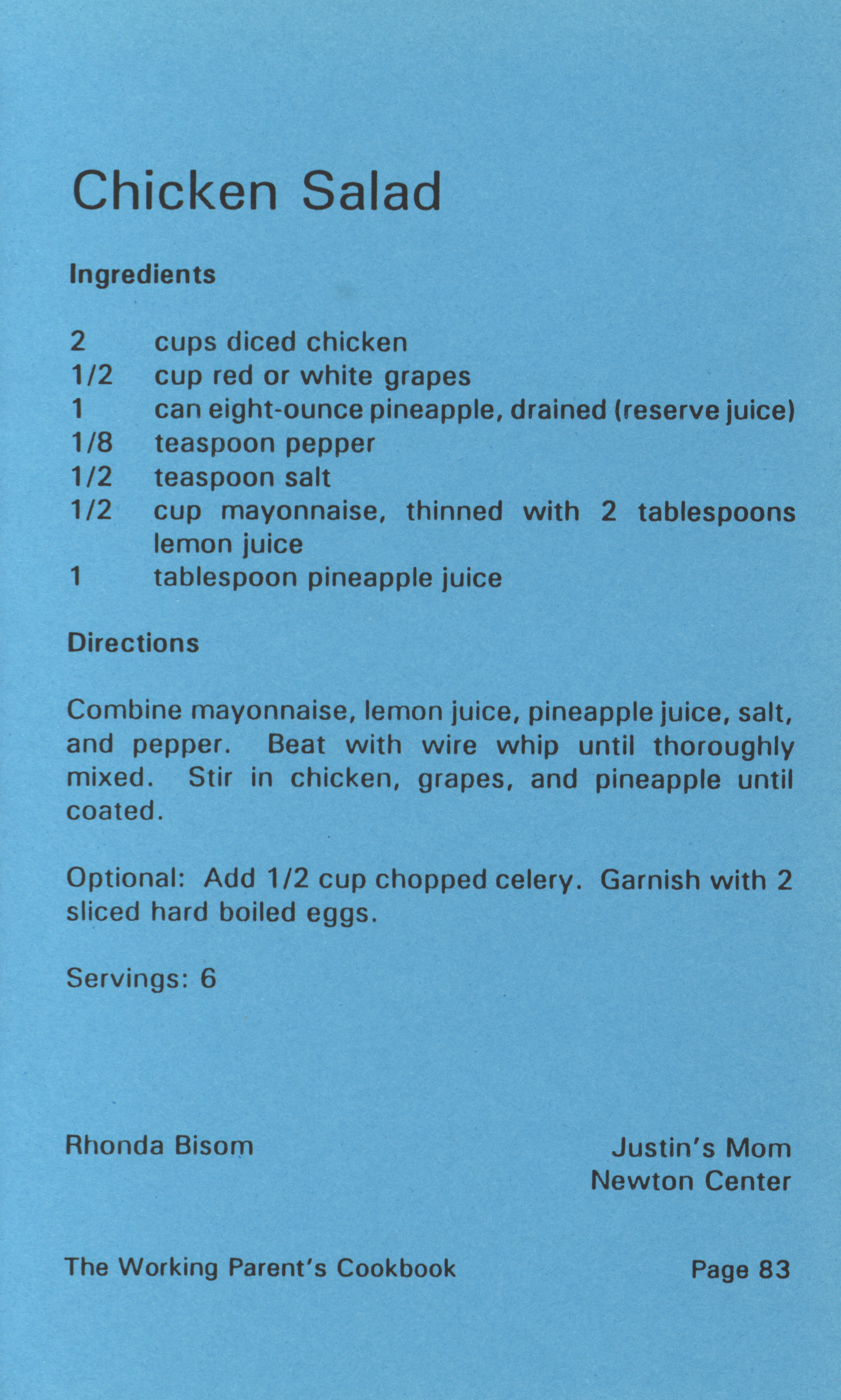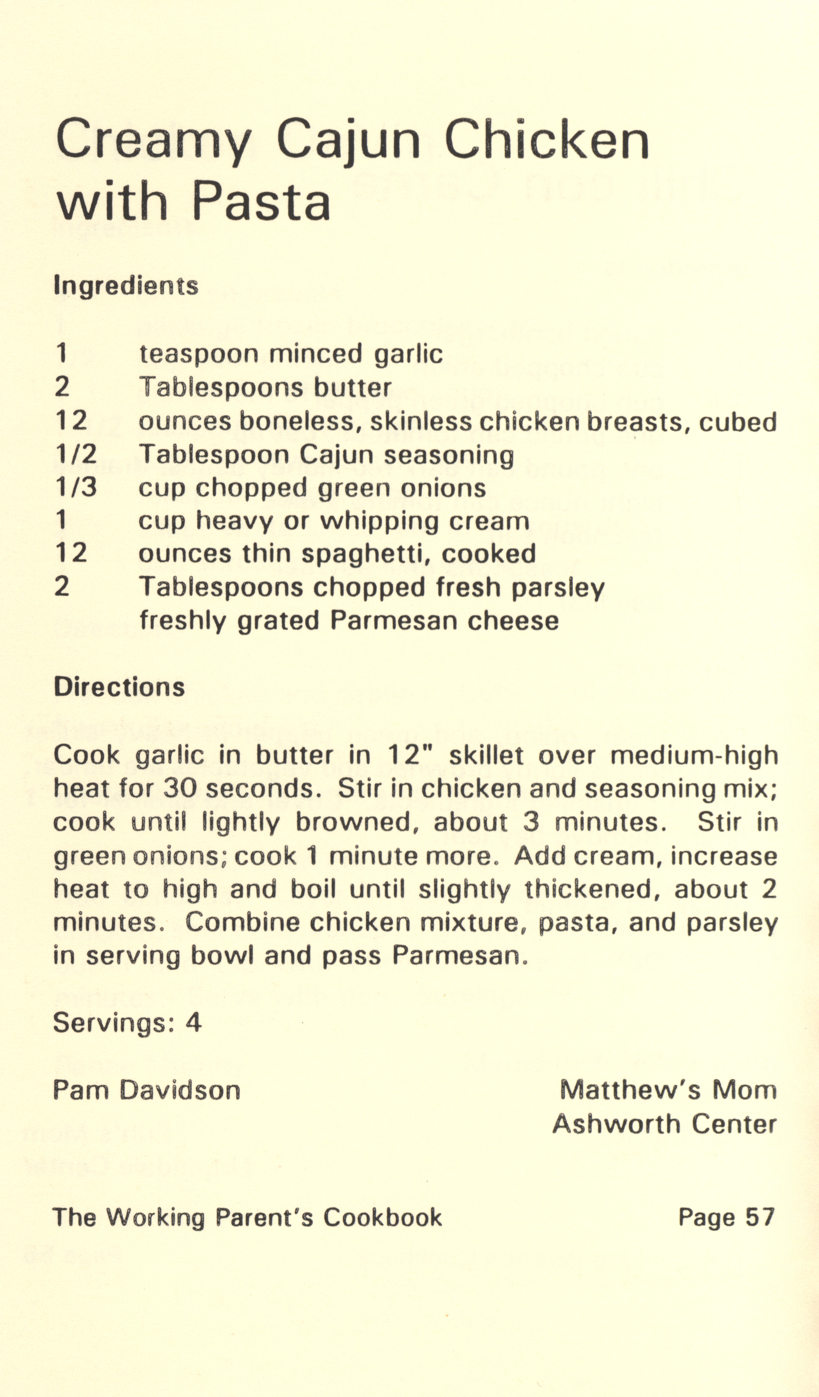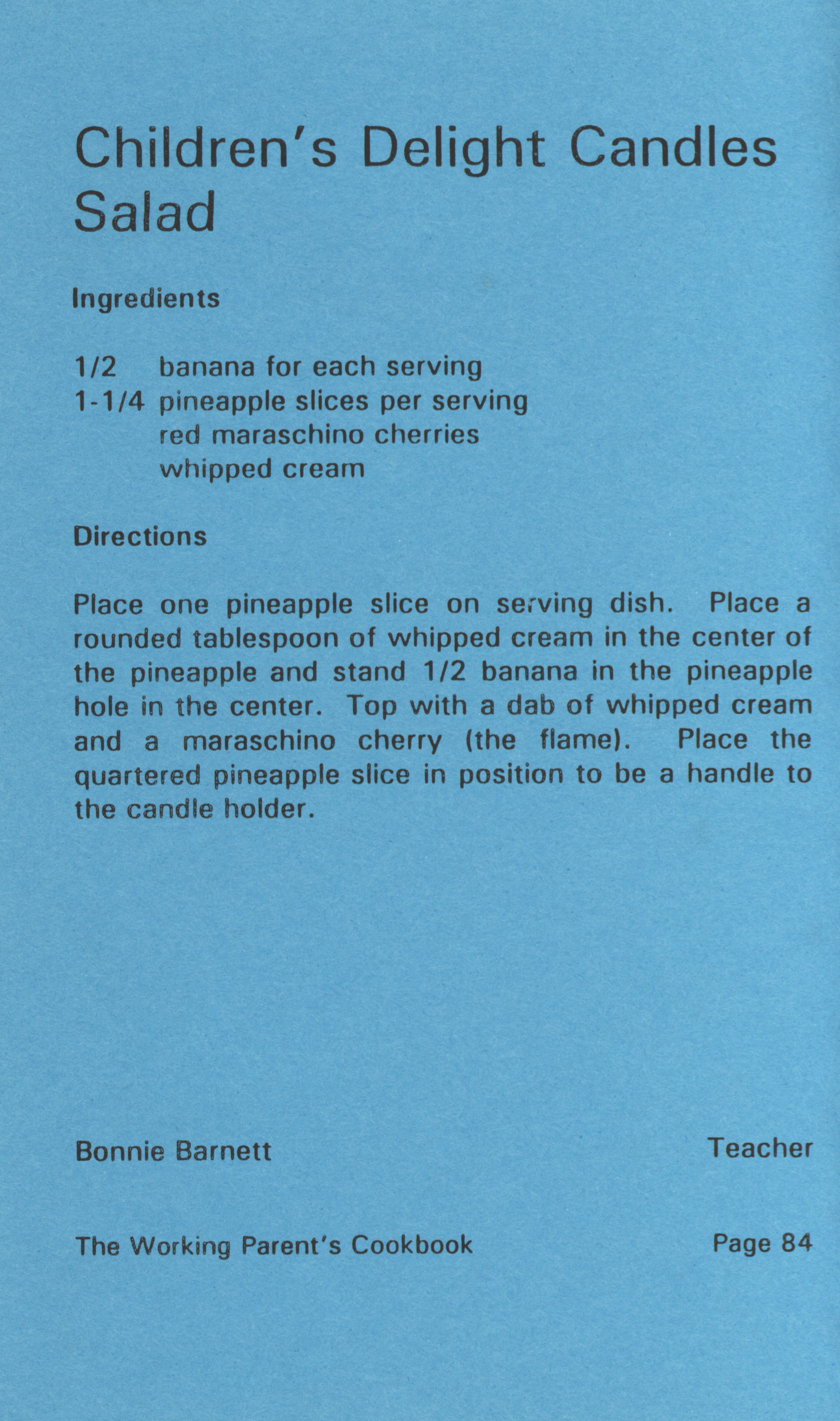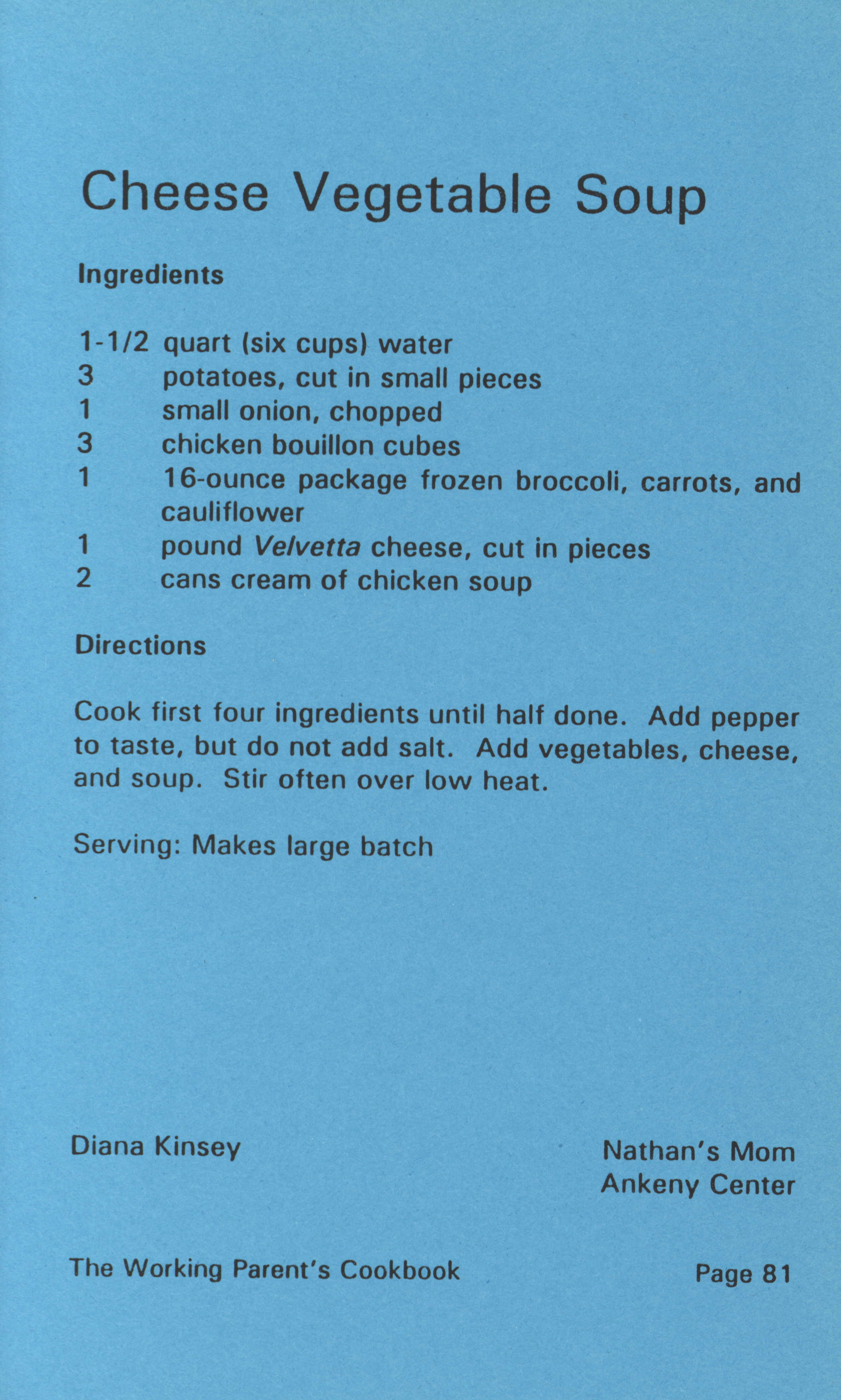 - "Working parent's cookbook: over 100 quick & easy family tested recipes", Cookbook Collection, Iowa State University Library Digital Collections