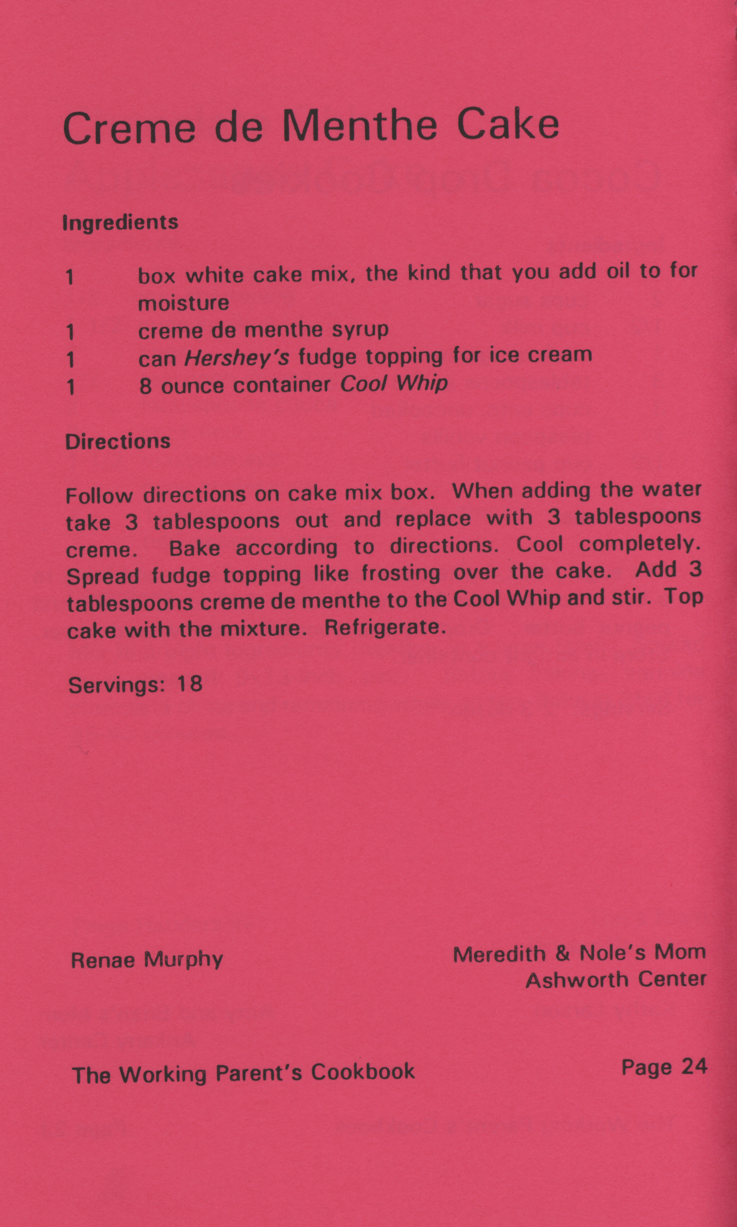 - Working parent's cookbook: over 100 quick & easy family tested recipes