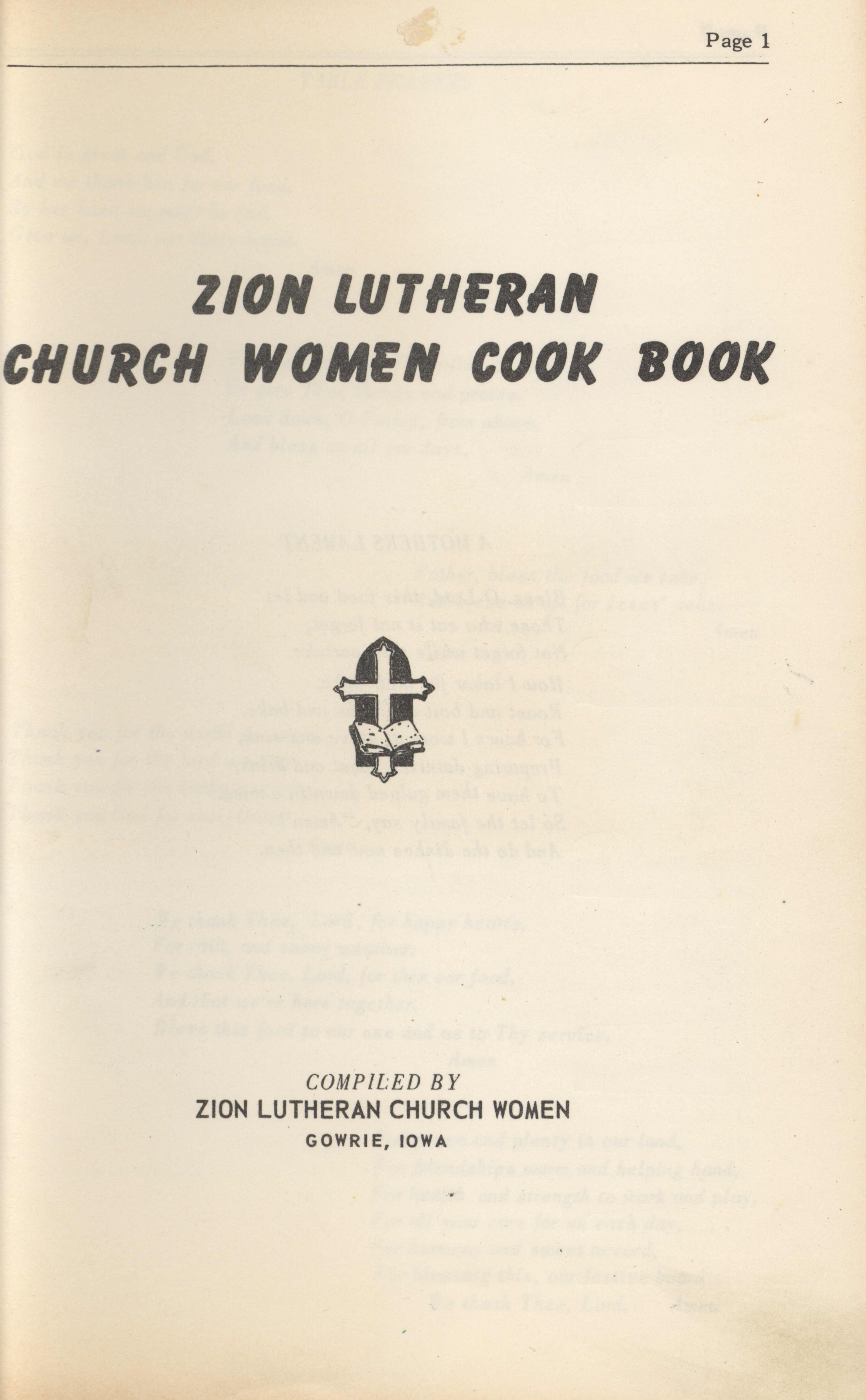 - "Zion Lutheran Church Women cook book", Cookbook Collection, Iowa State University Library Digital Collections