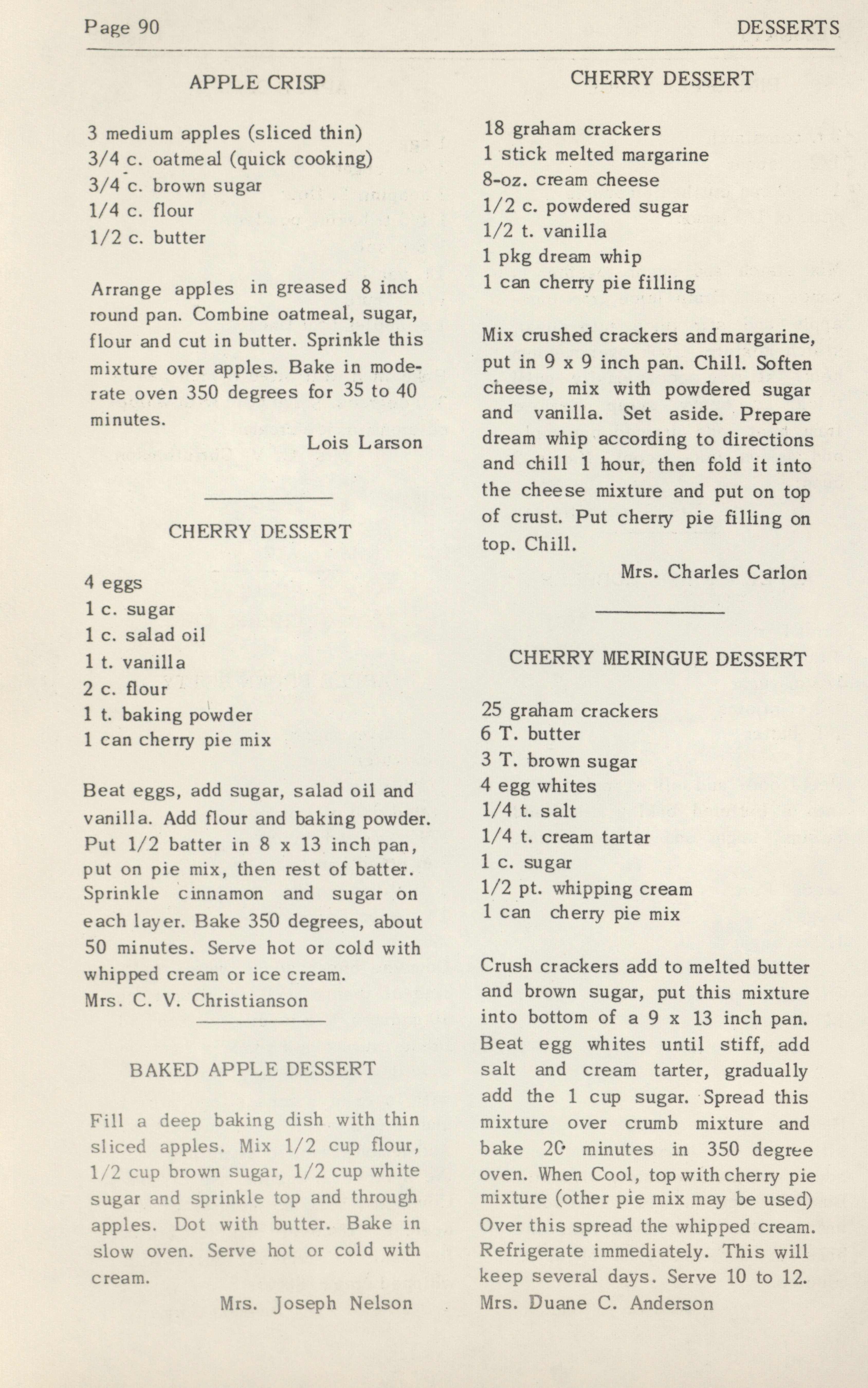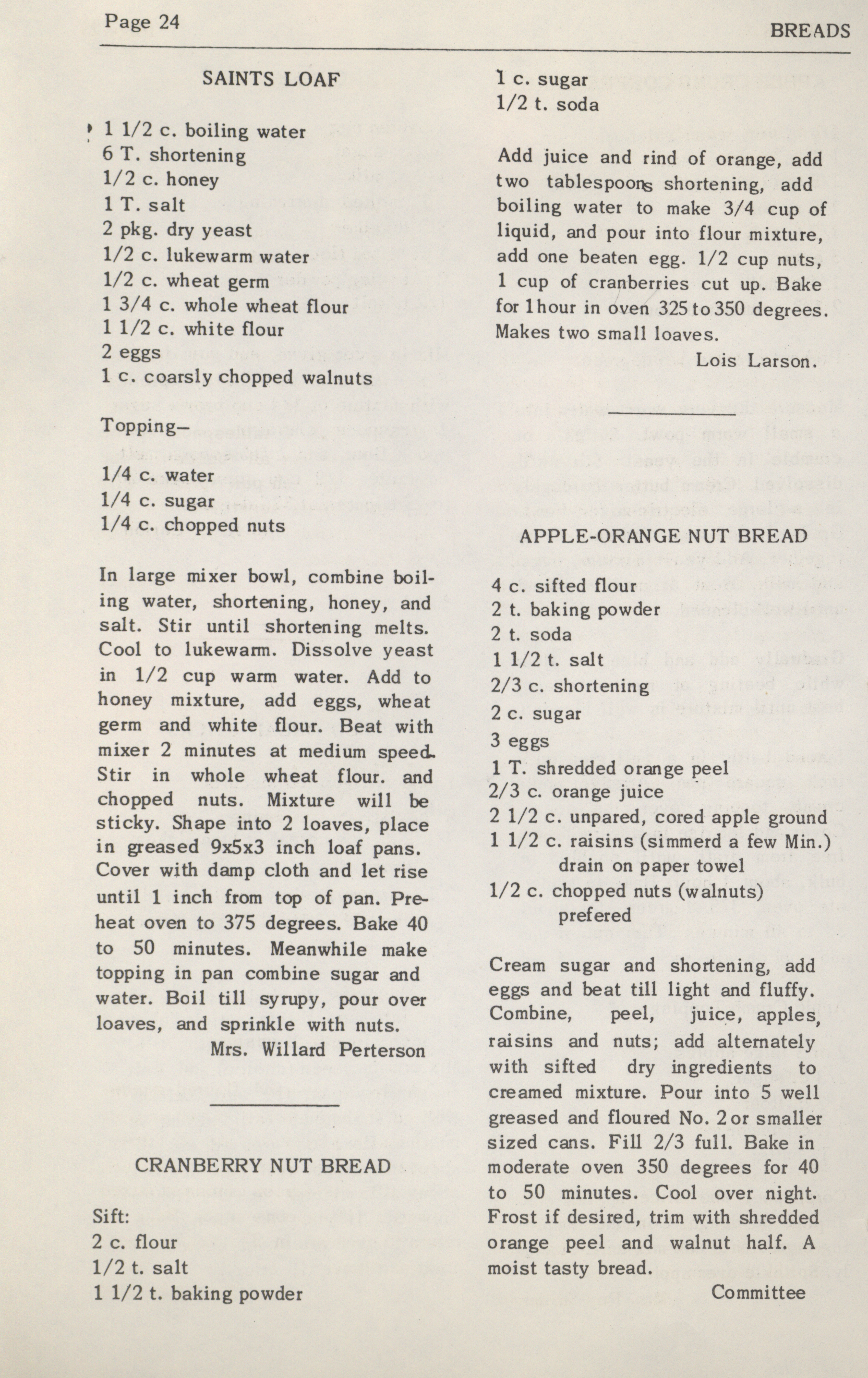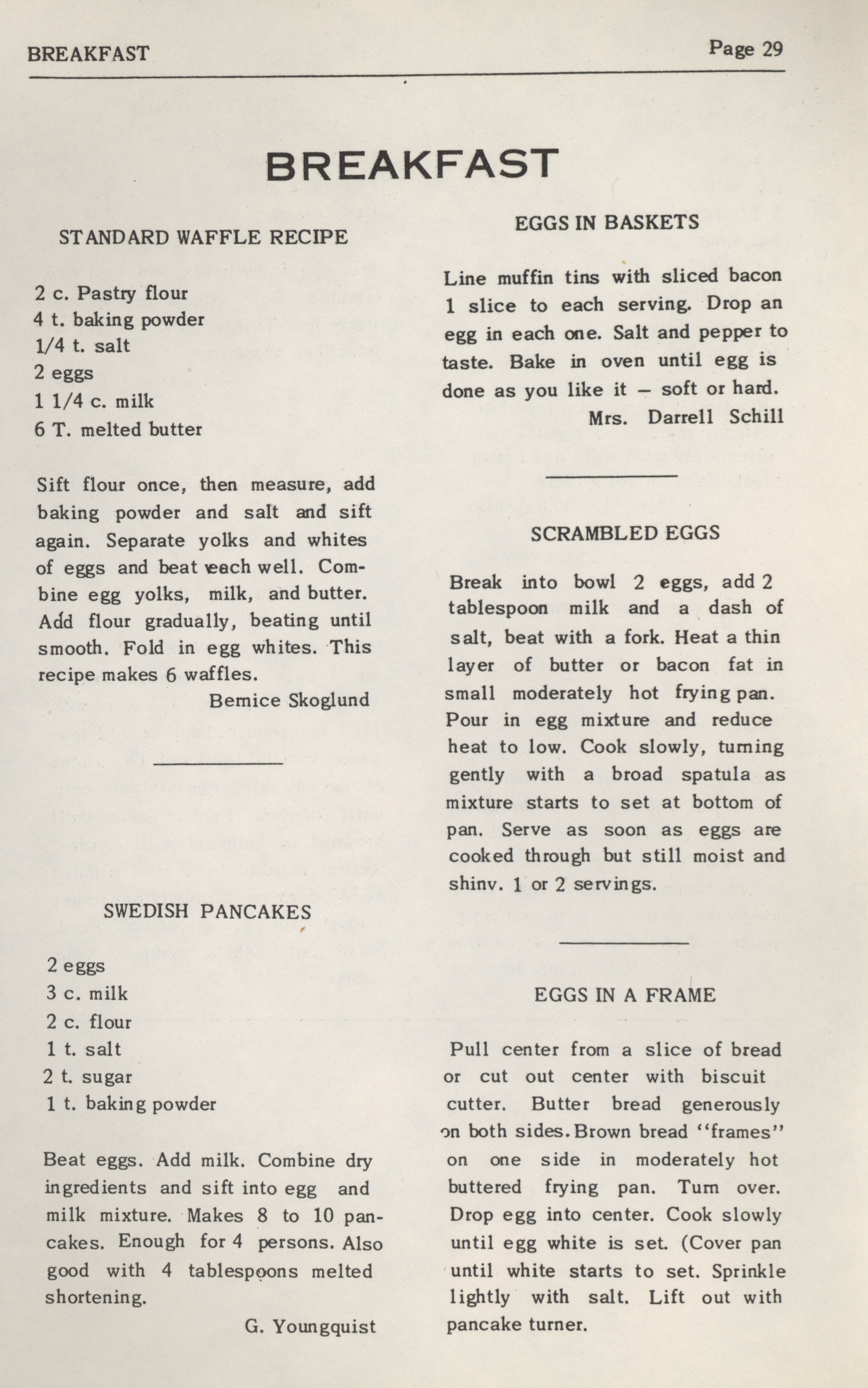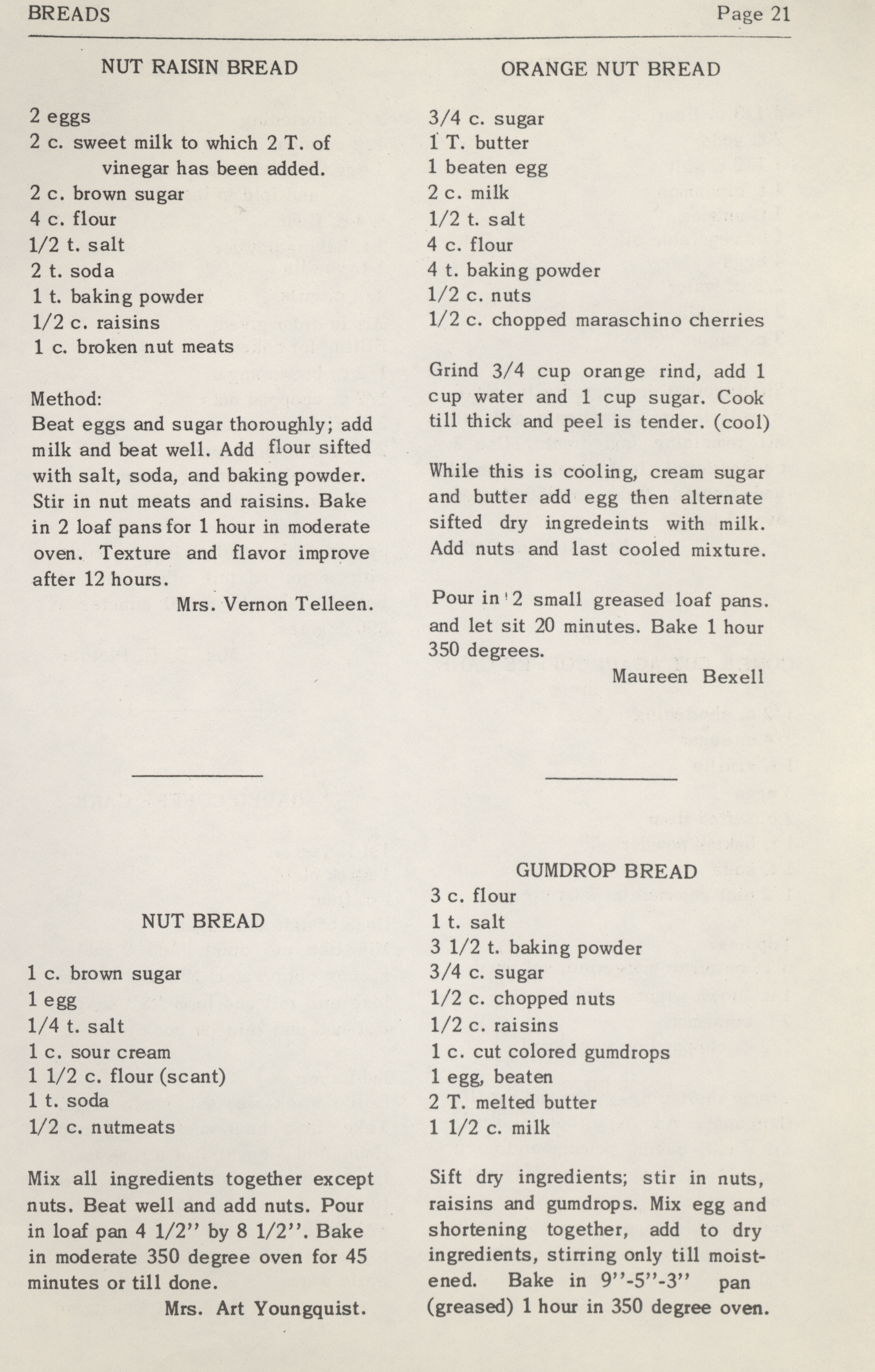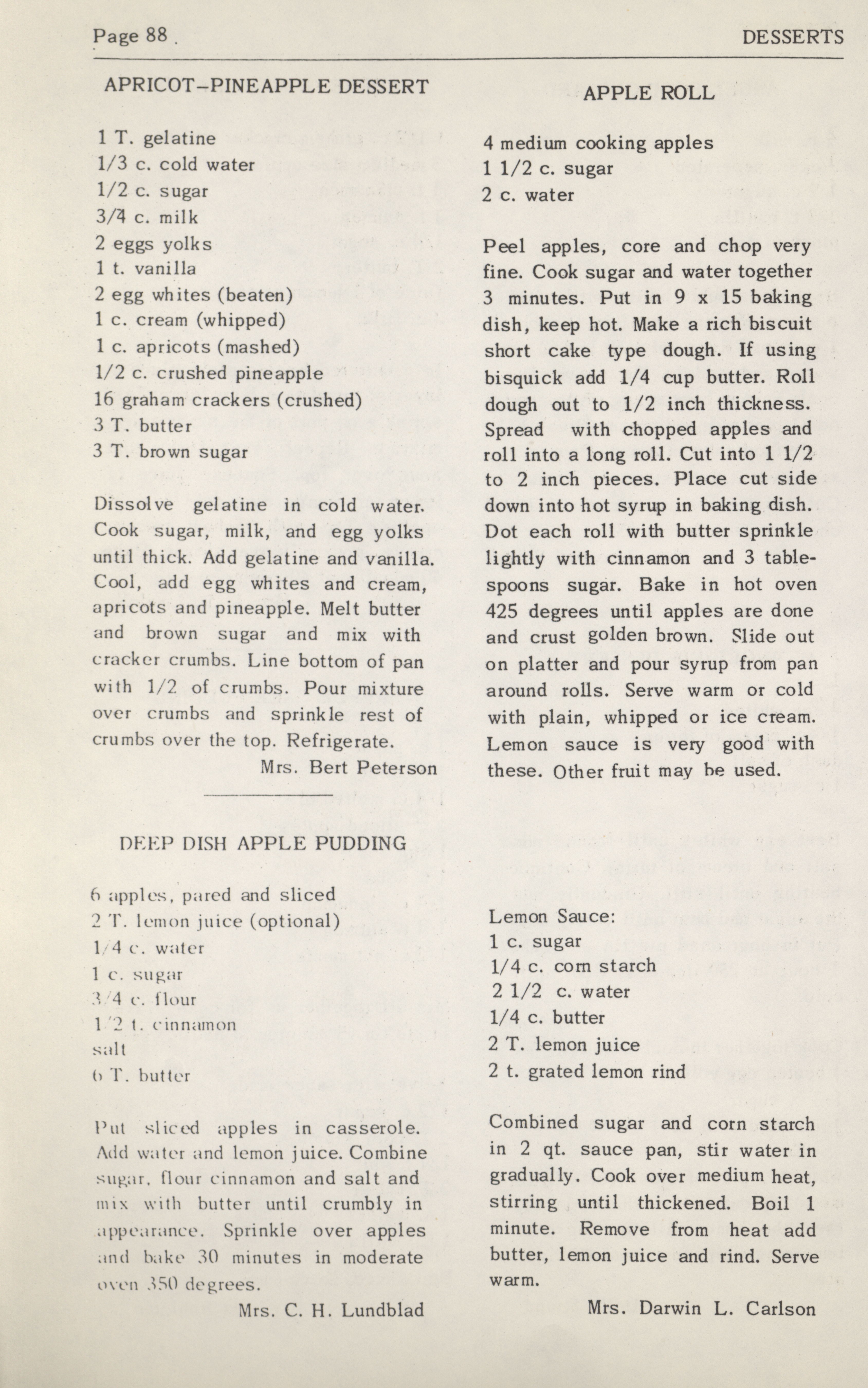 - This cookbook was compiled by the women of Zion Lutheran Church. It includes recipes for beverages, breakfast, breads, desserts, casseroles, pickles, sandwiches, vegetables, and preserves. It also has information on nutrition and cooking for large numbers of people.