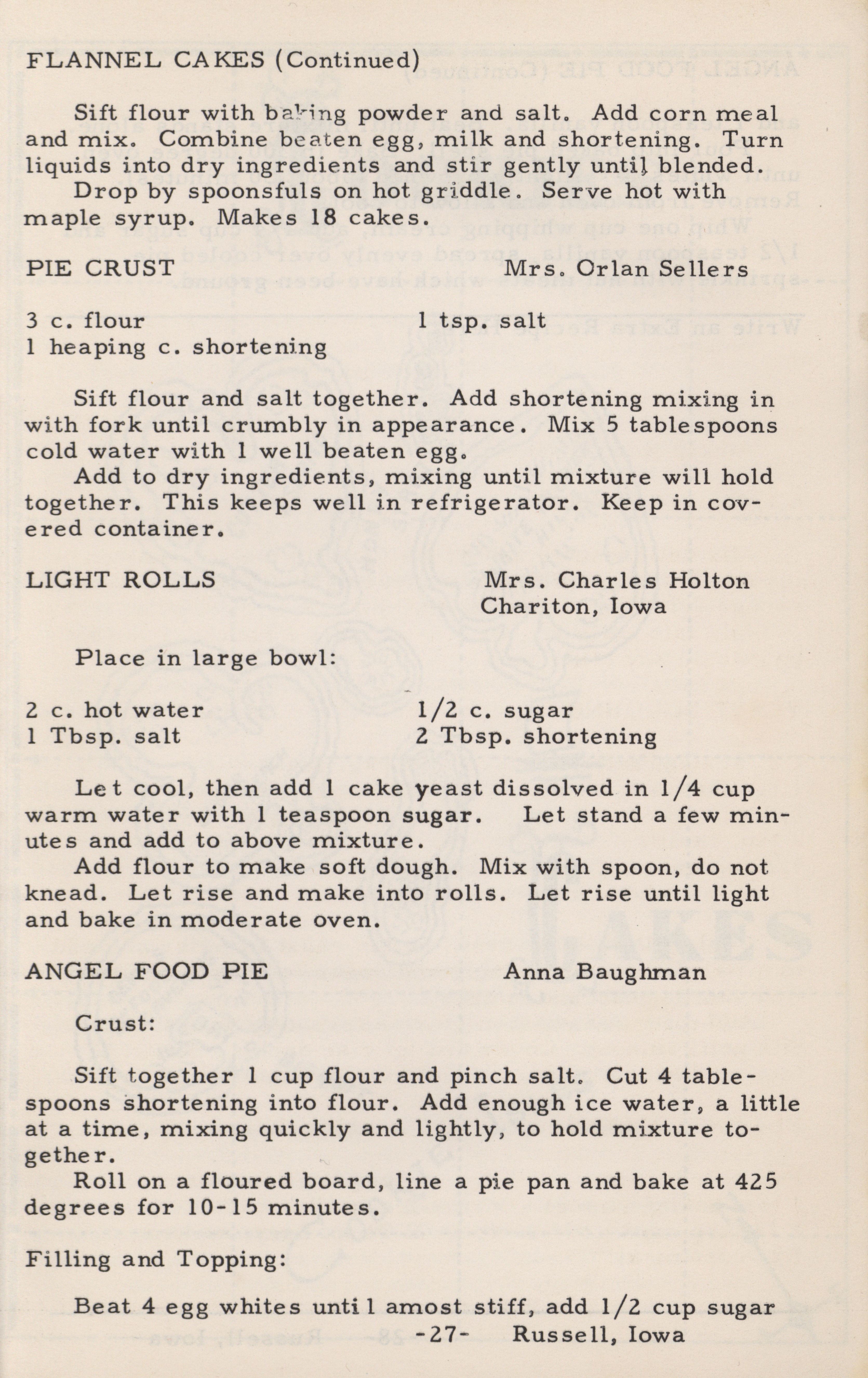 - "Bethel's treasure of personal recipes", Cookbook Collection, Iowa State University Library Digital Collections