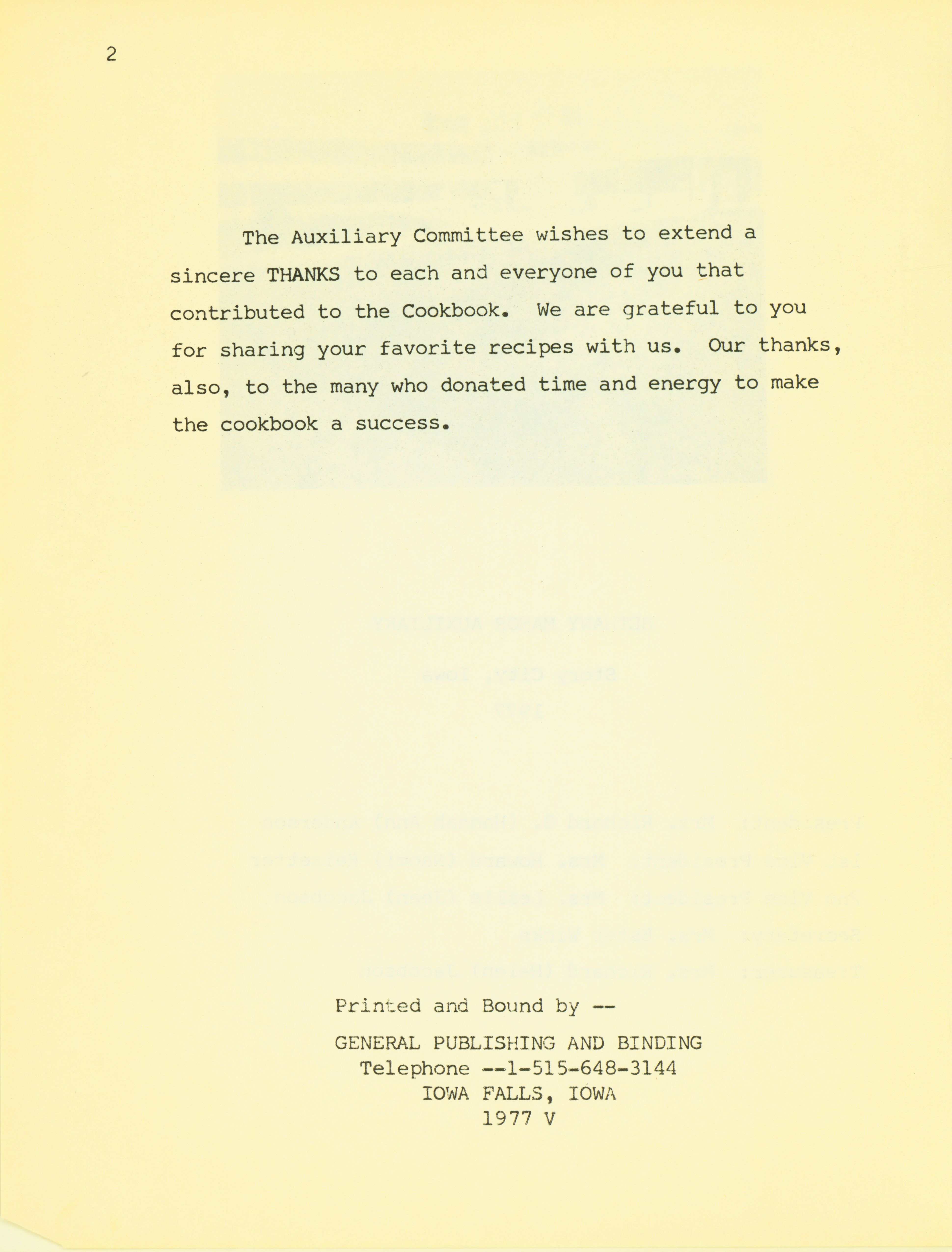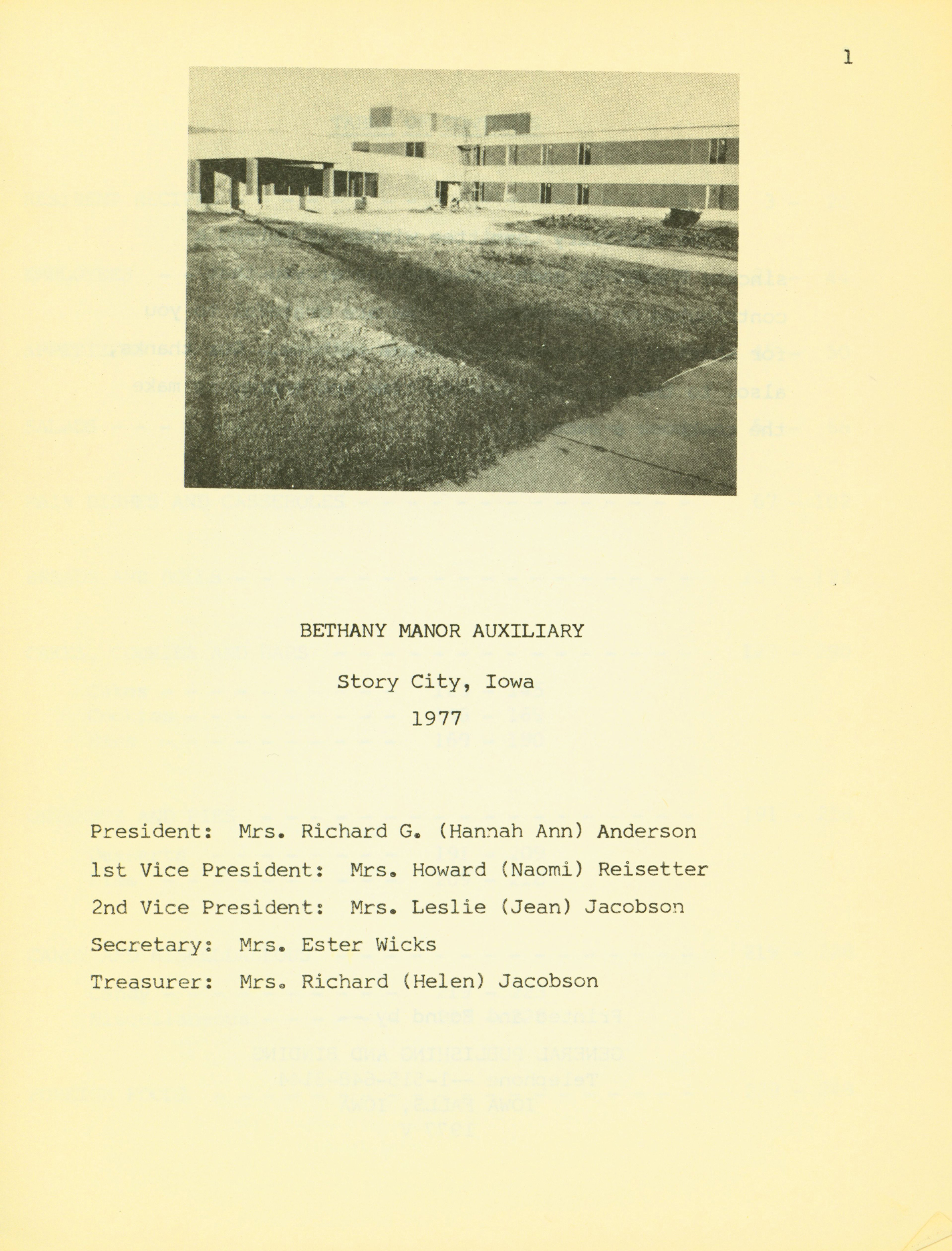 - Bethany Manor Auxiliary Committee (Story City, Iowa)