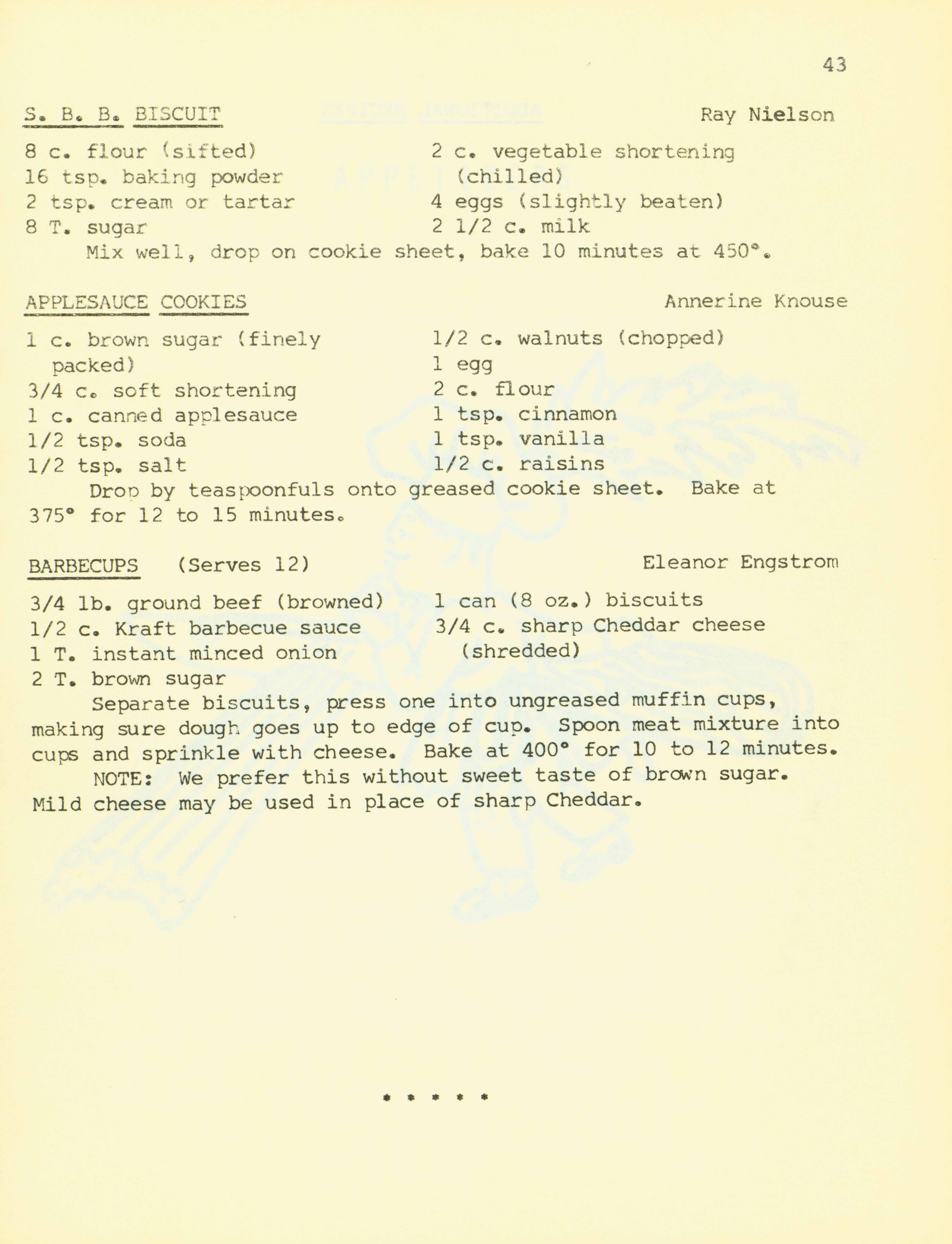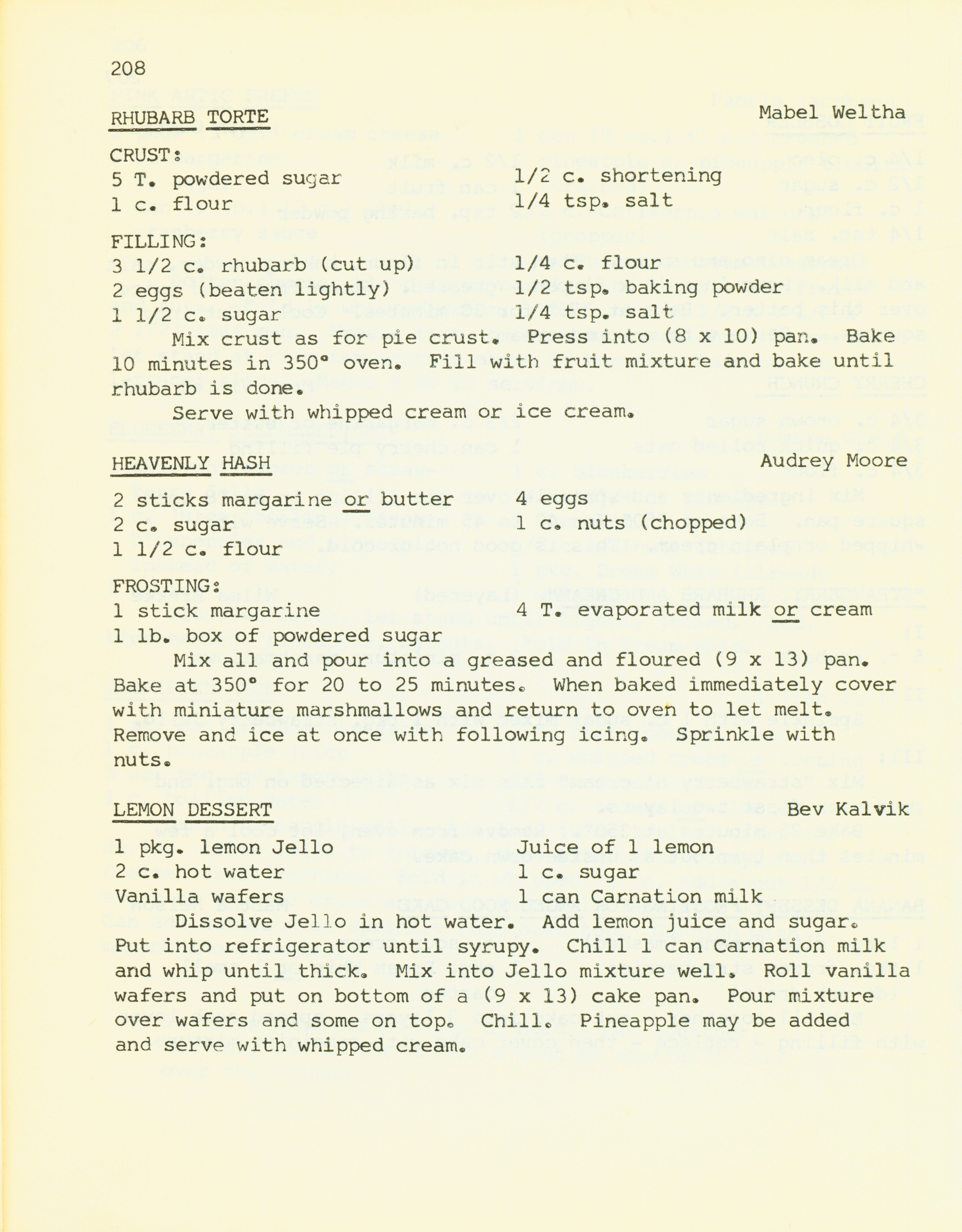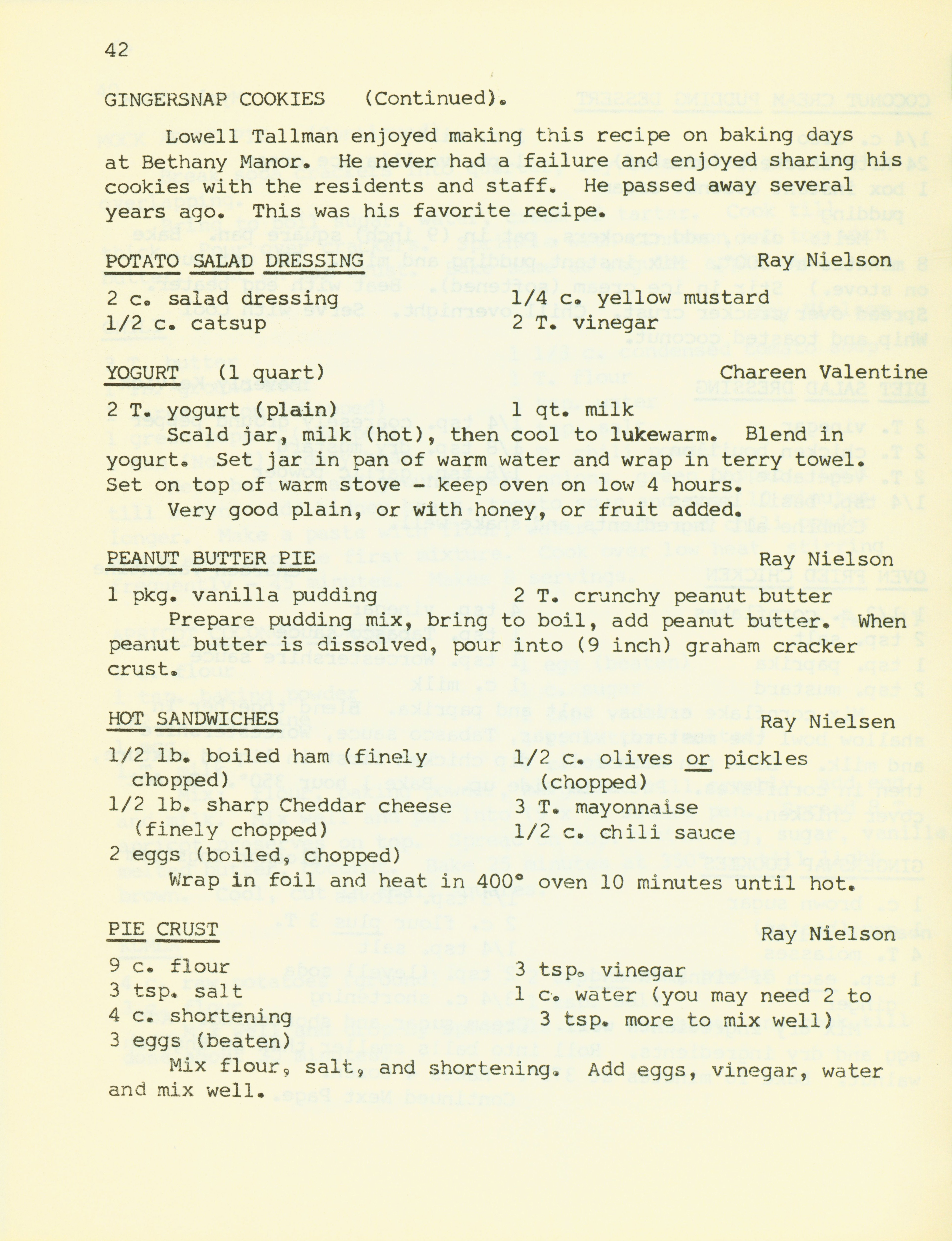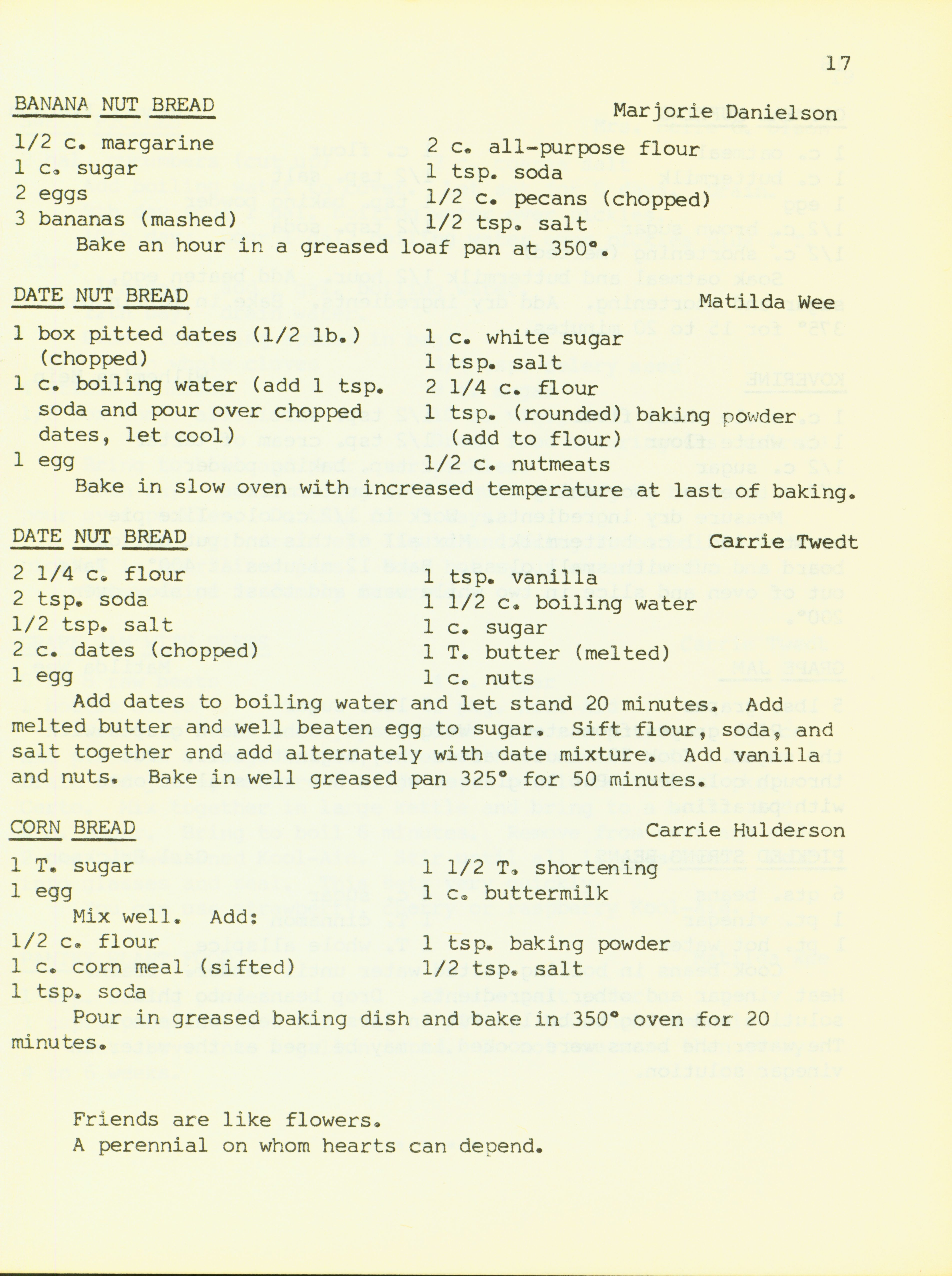 - "Bethany Manor favorites", Cookbook Collection, Iowa State University Library Digital Collections