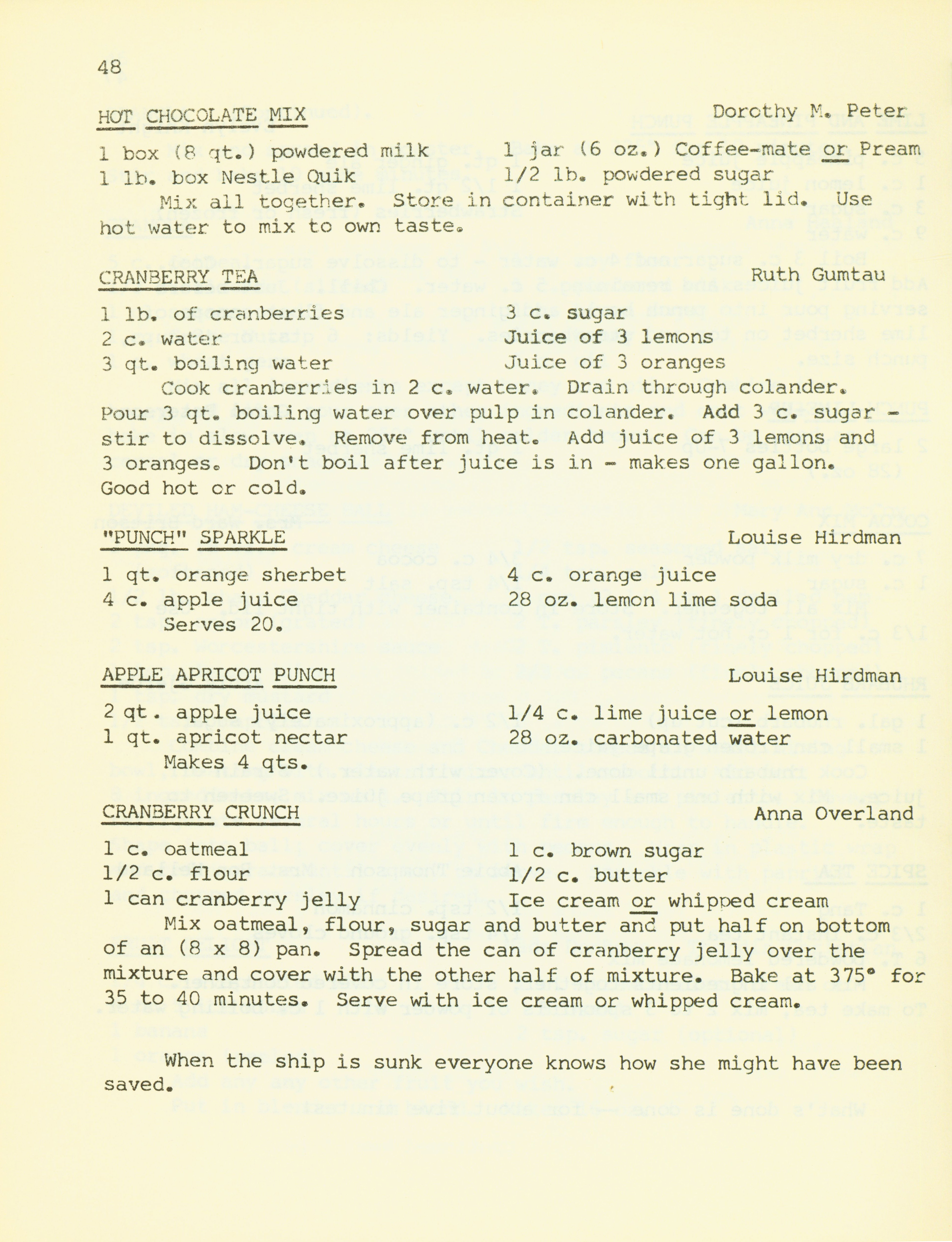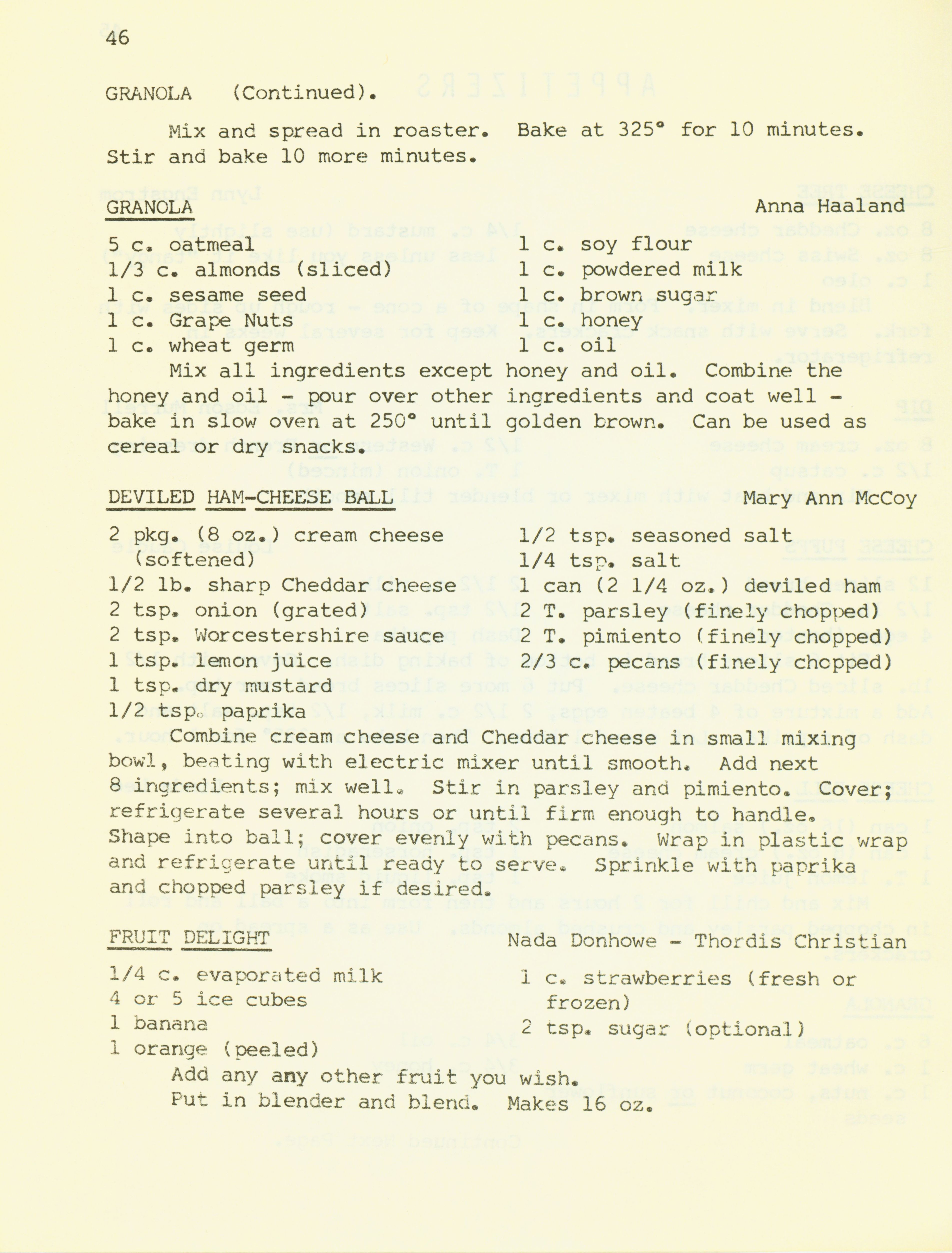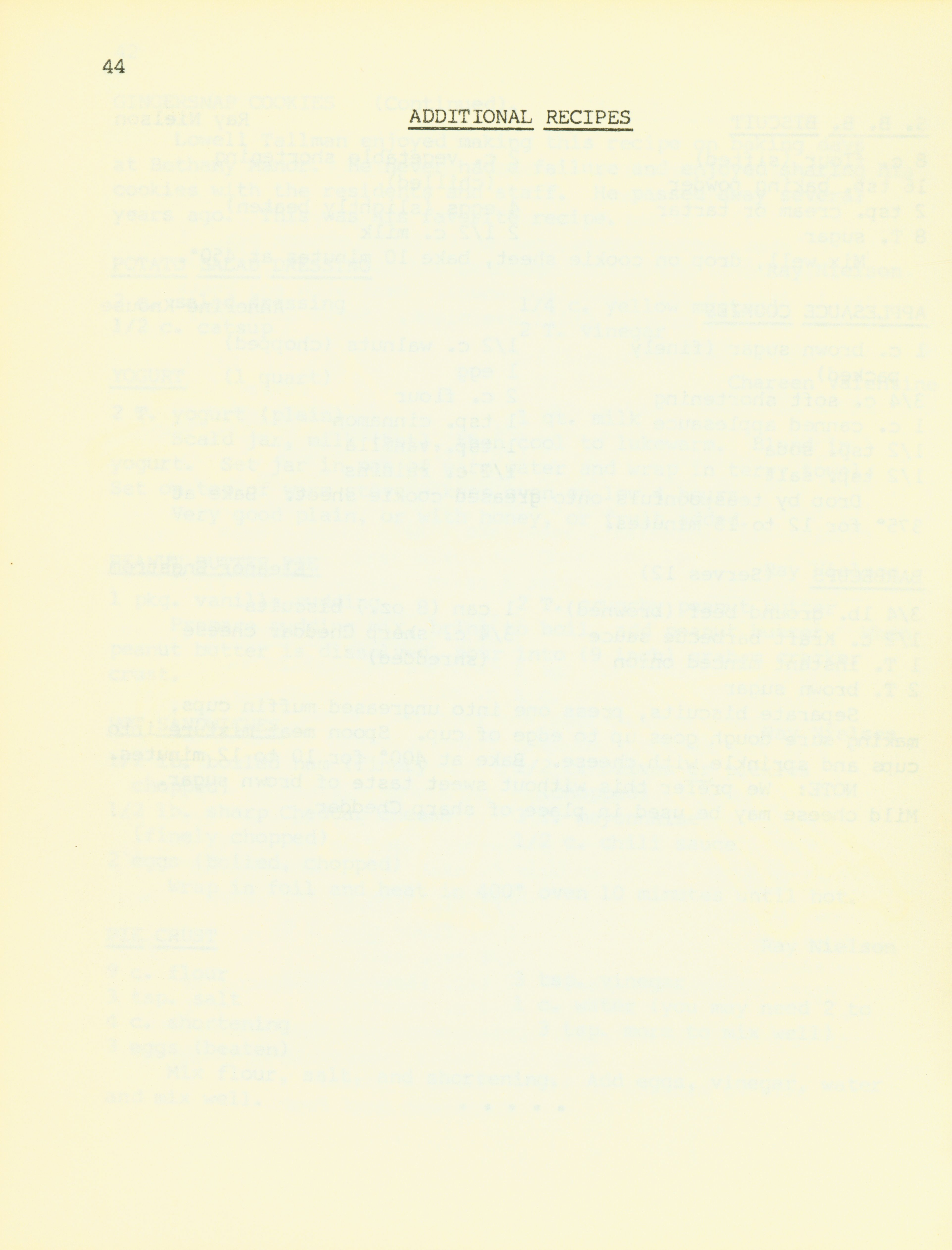 - "Bethany Manor favorites", Cookbook Collection, Iowa State University Library Digital Collections