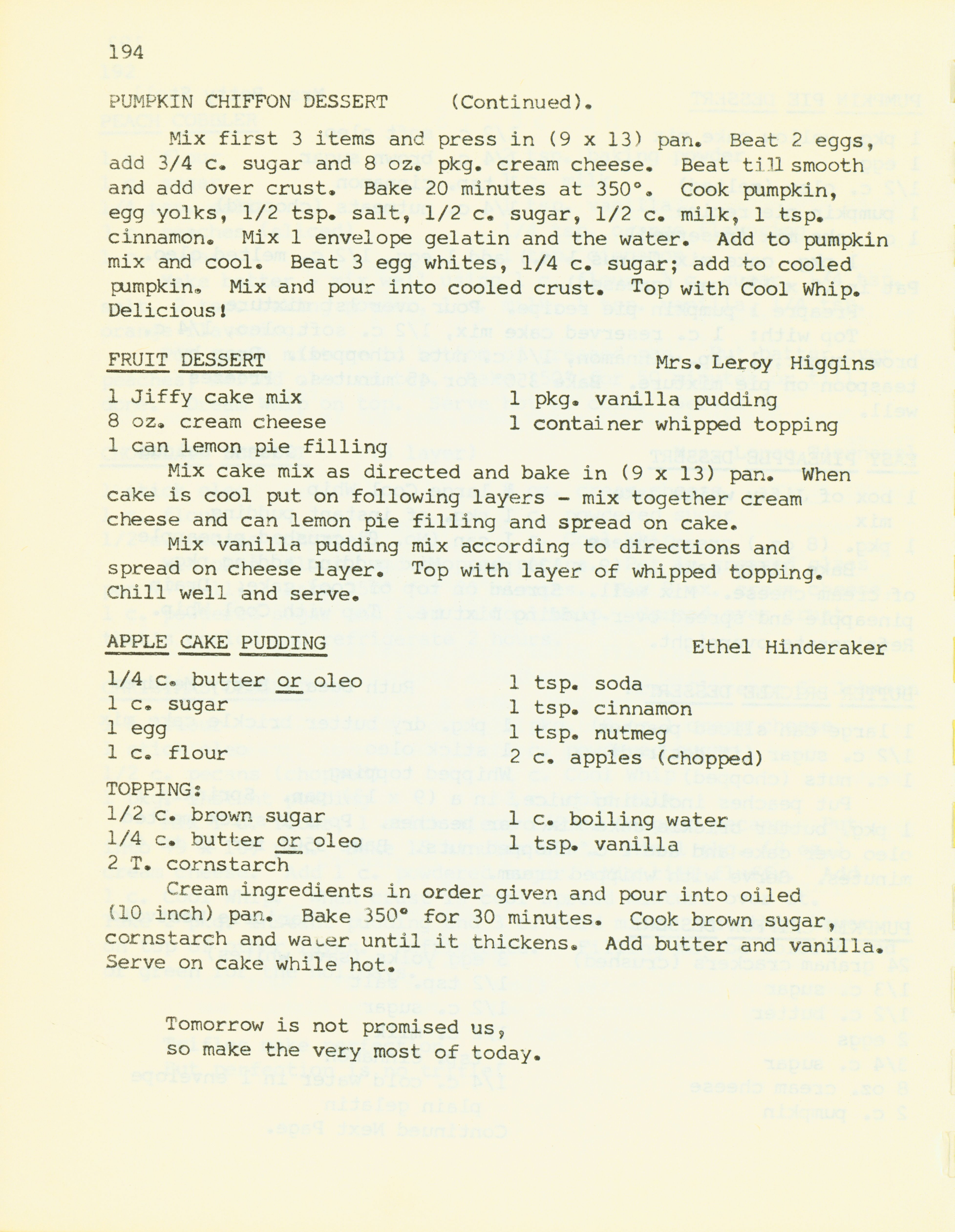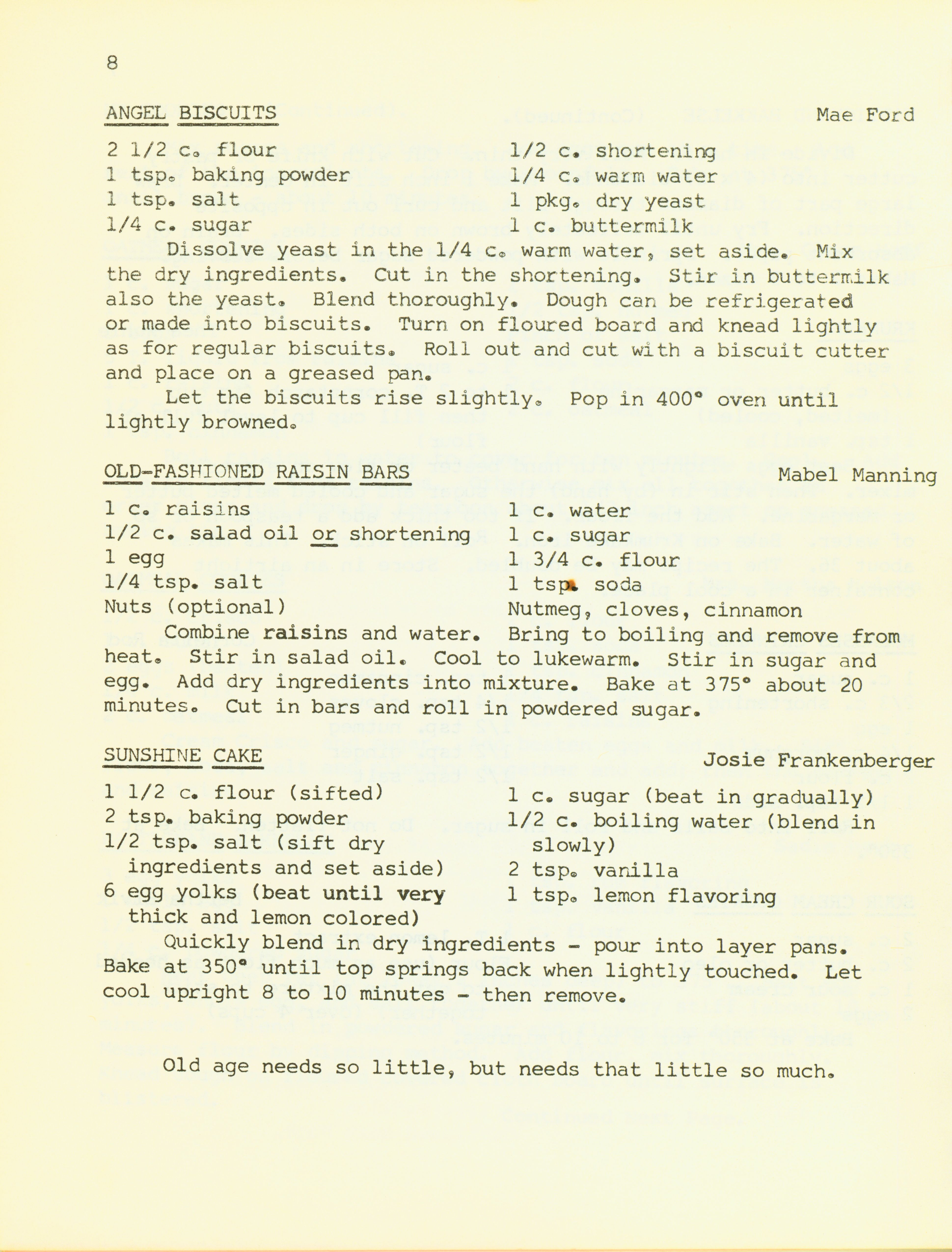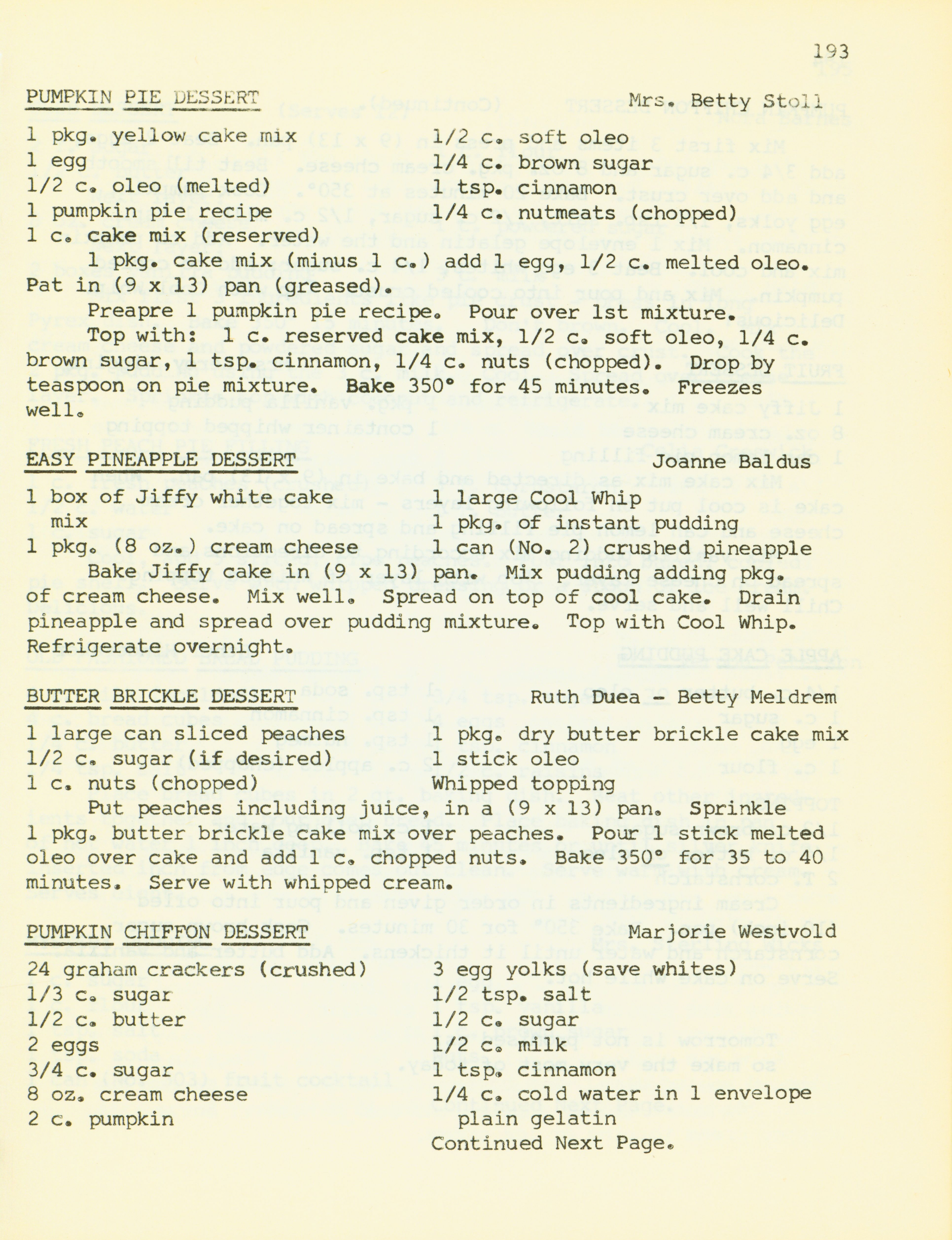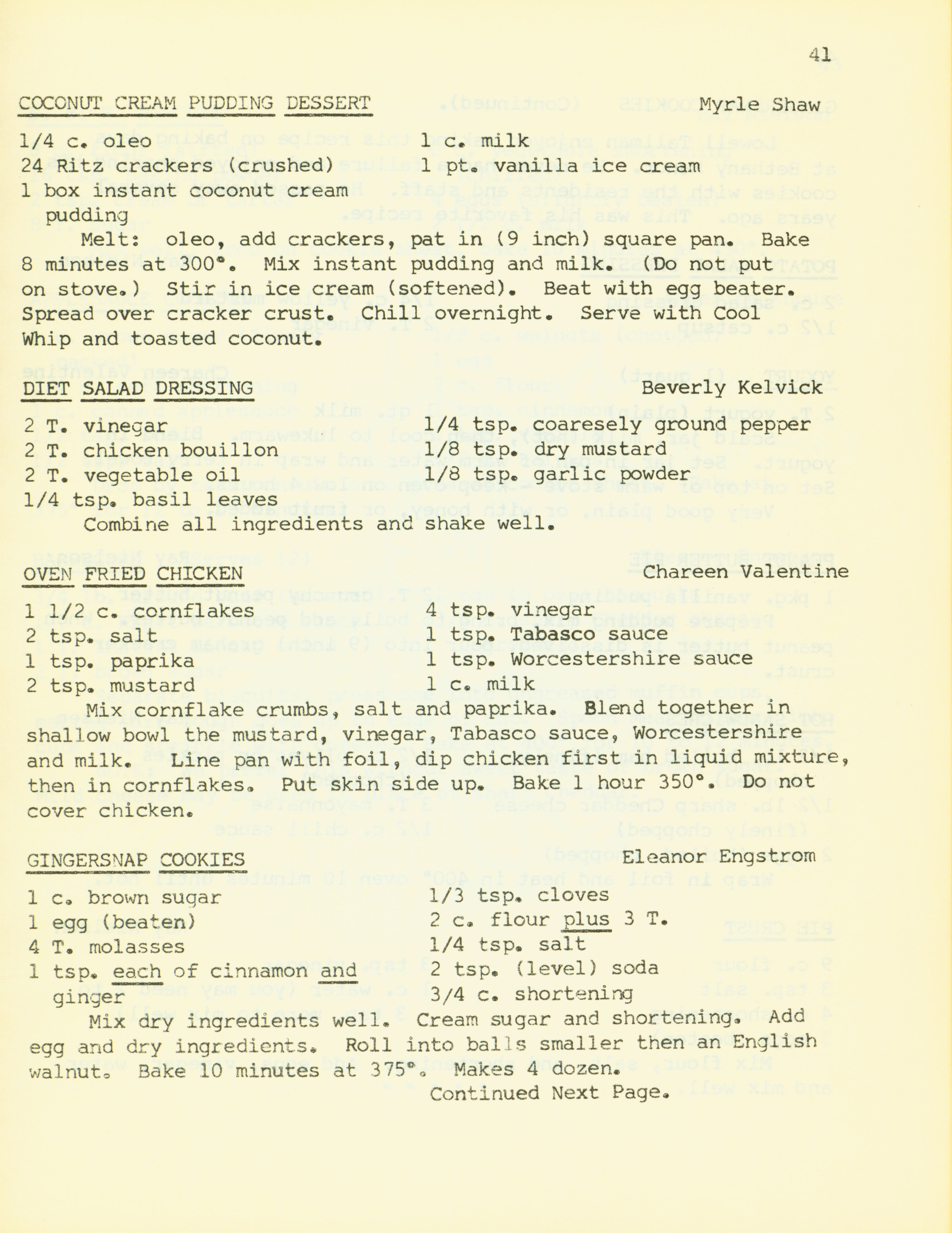 - "Bethany Manor favorites", Cookbook Collection, Iowa State University Library Digital Collections