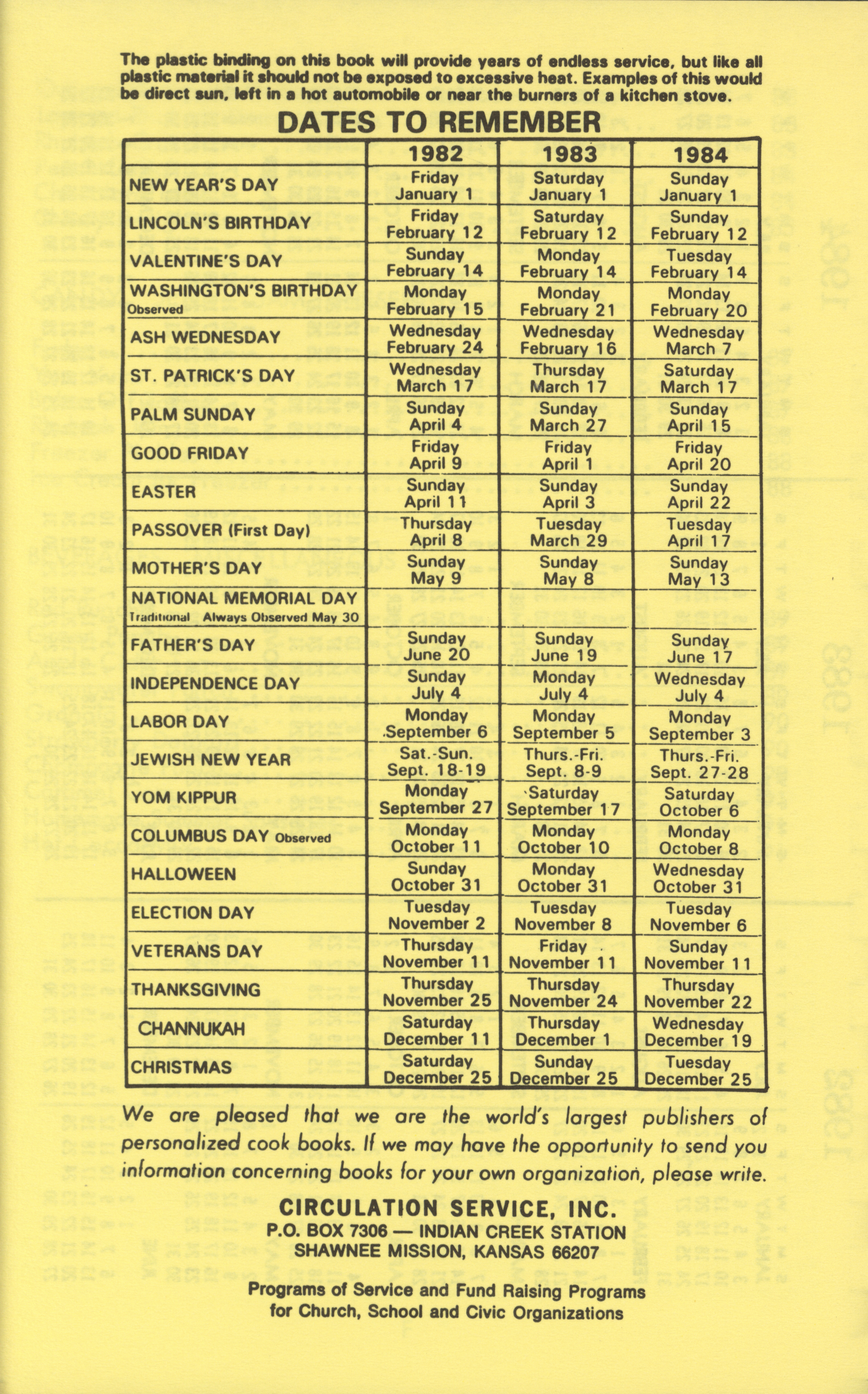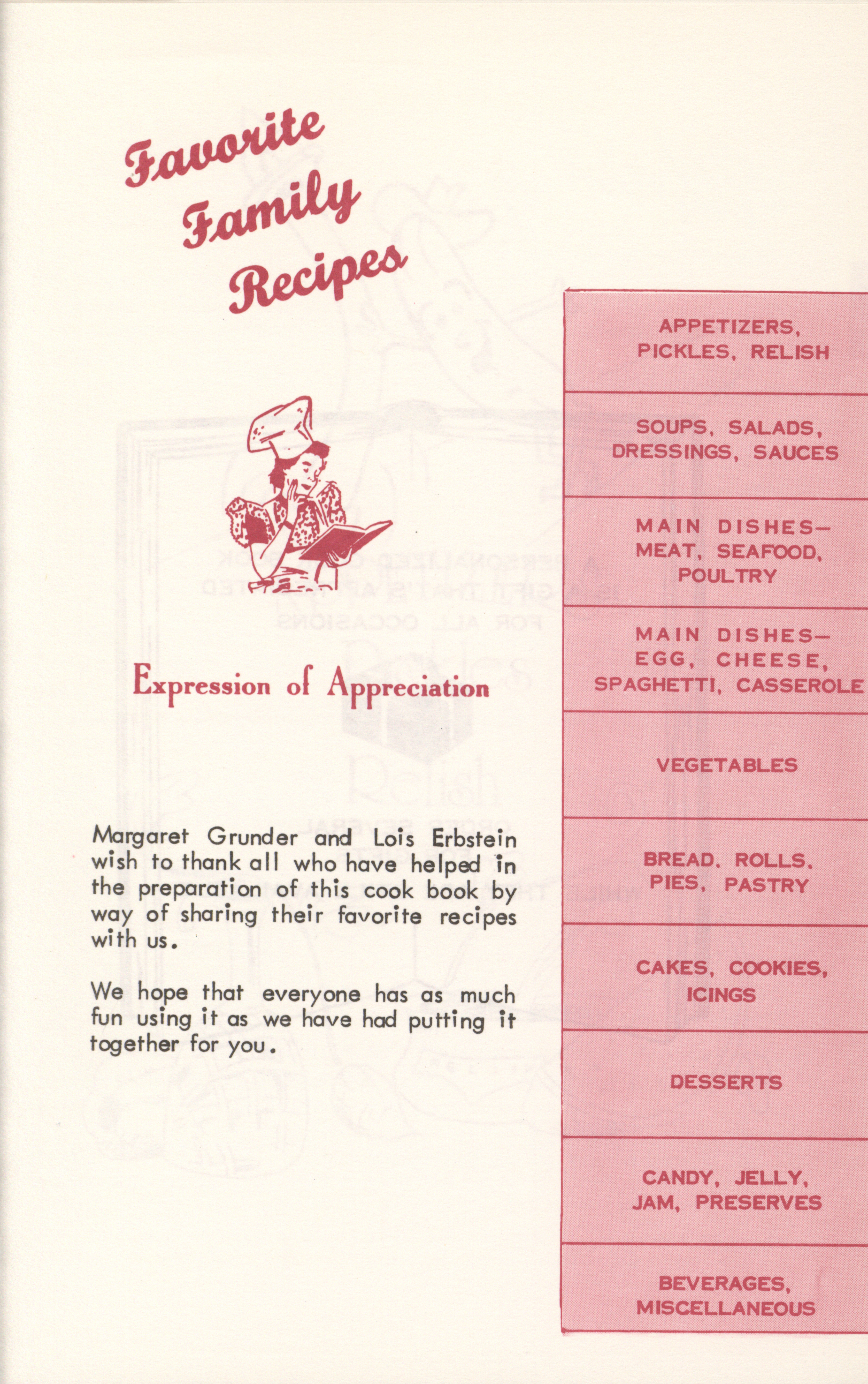 - Book of favorite recipes, 1982