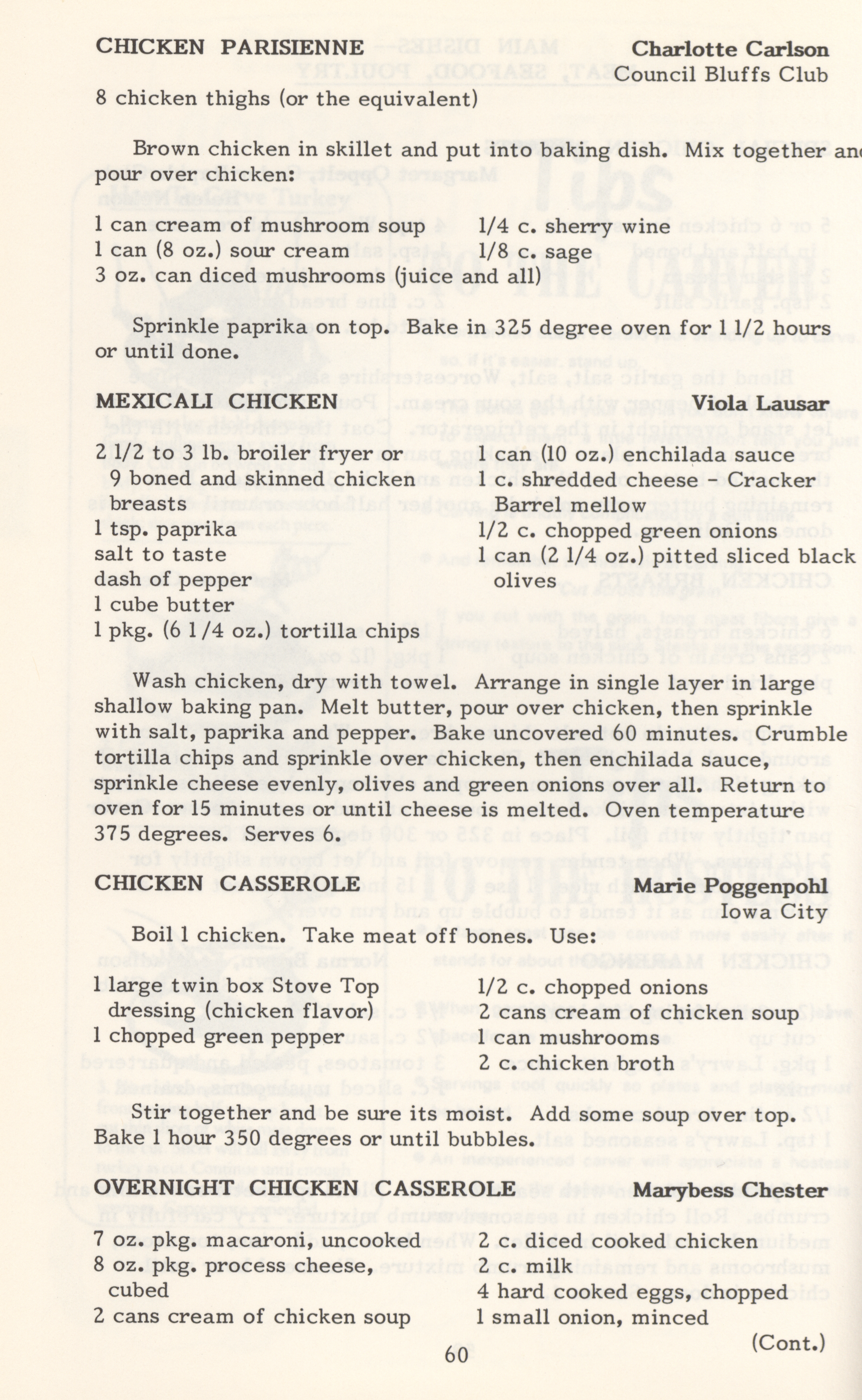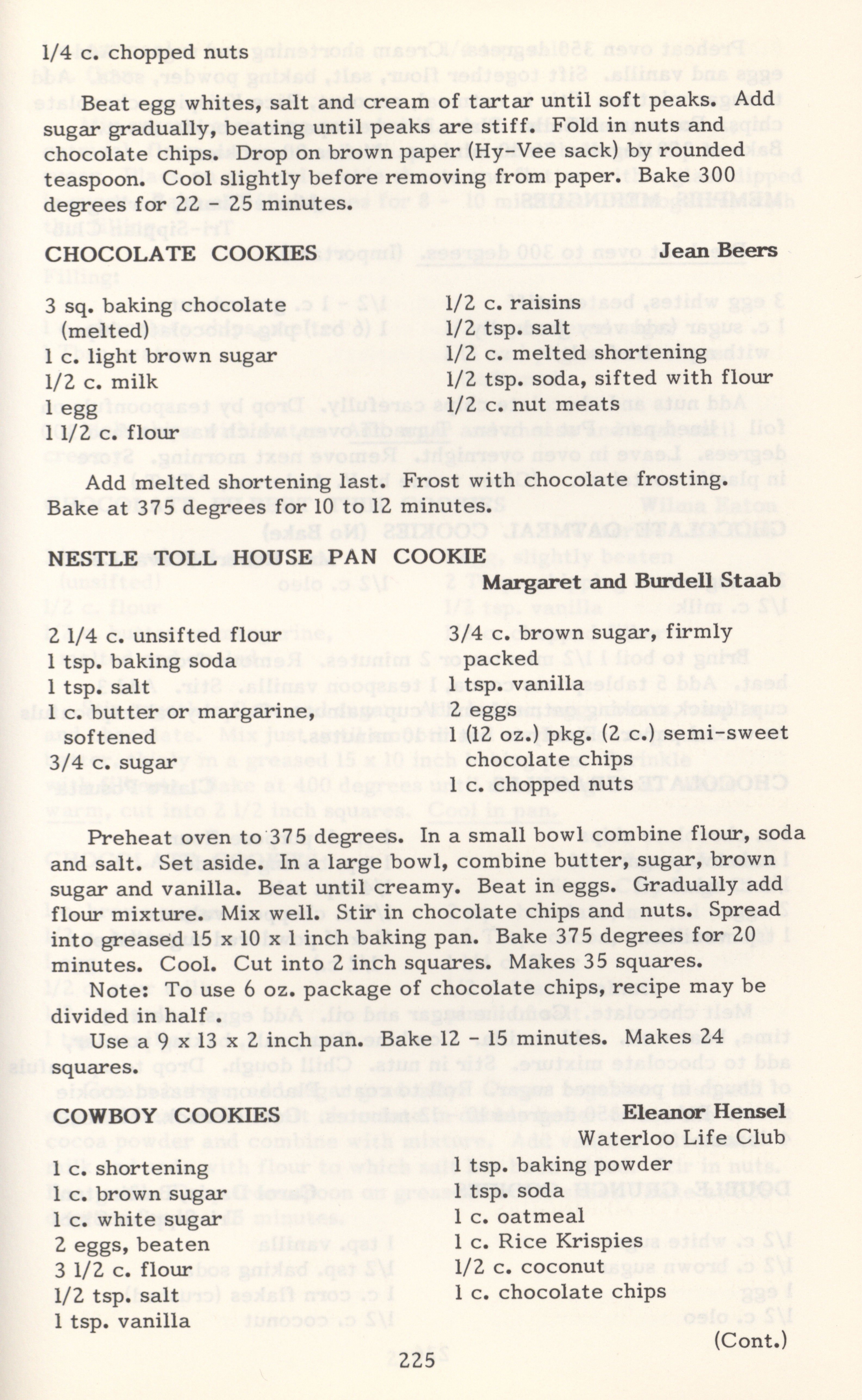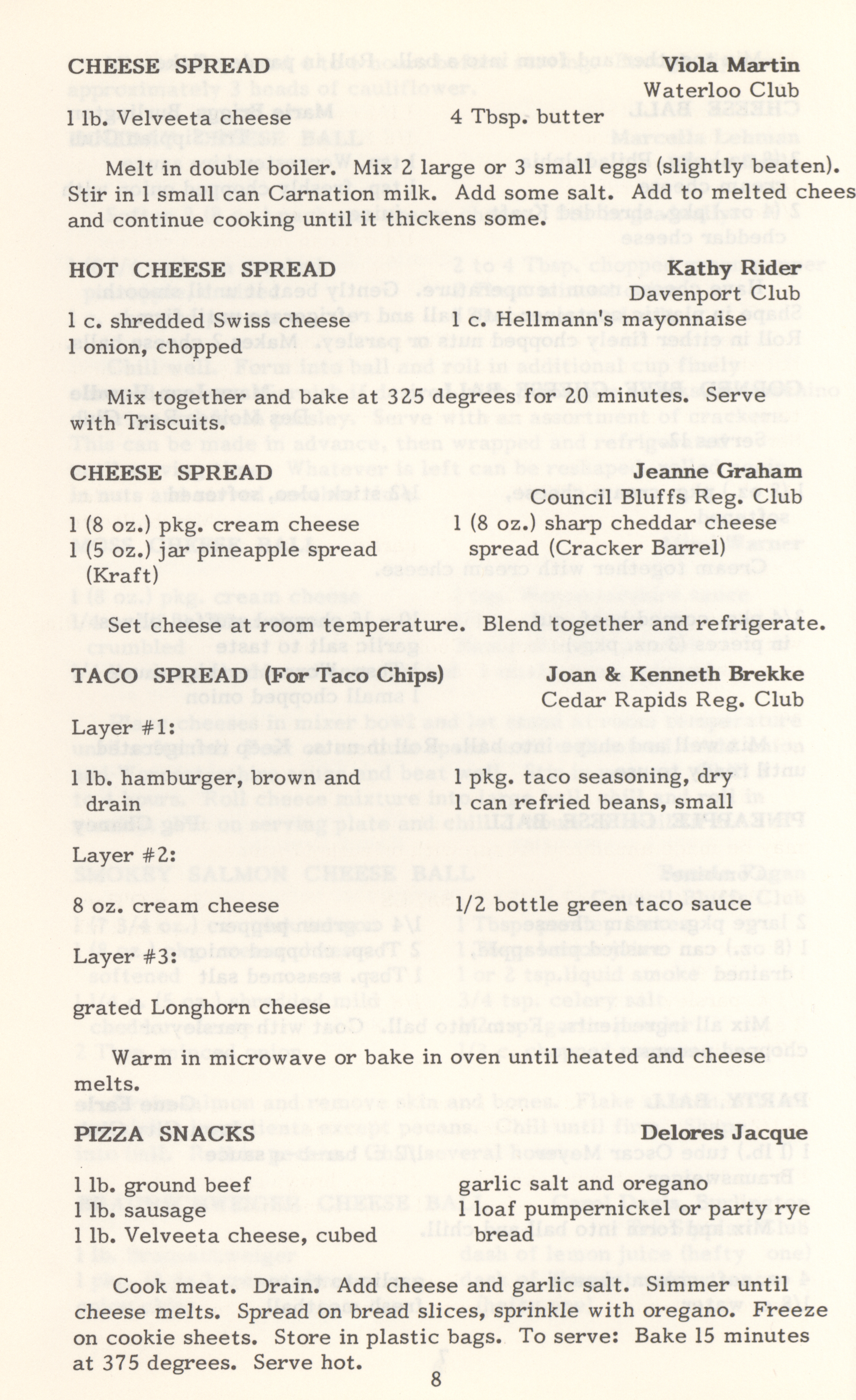 - A community cookbook compiled by the Pioneer Partners of the Hawkeye Chapter #17, Telephone Pioneers of America. It includes a variety of recipes submitted by members, categorized into appetizers, main dishes, vegetables, breads, desserts, and beverages. The book also reflects the chapter’s history and its involvement in community service.
