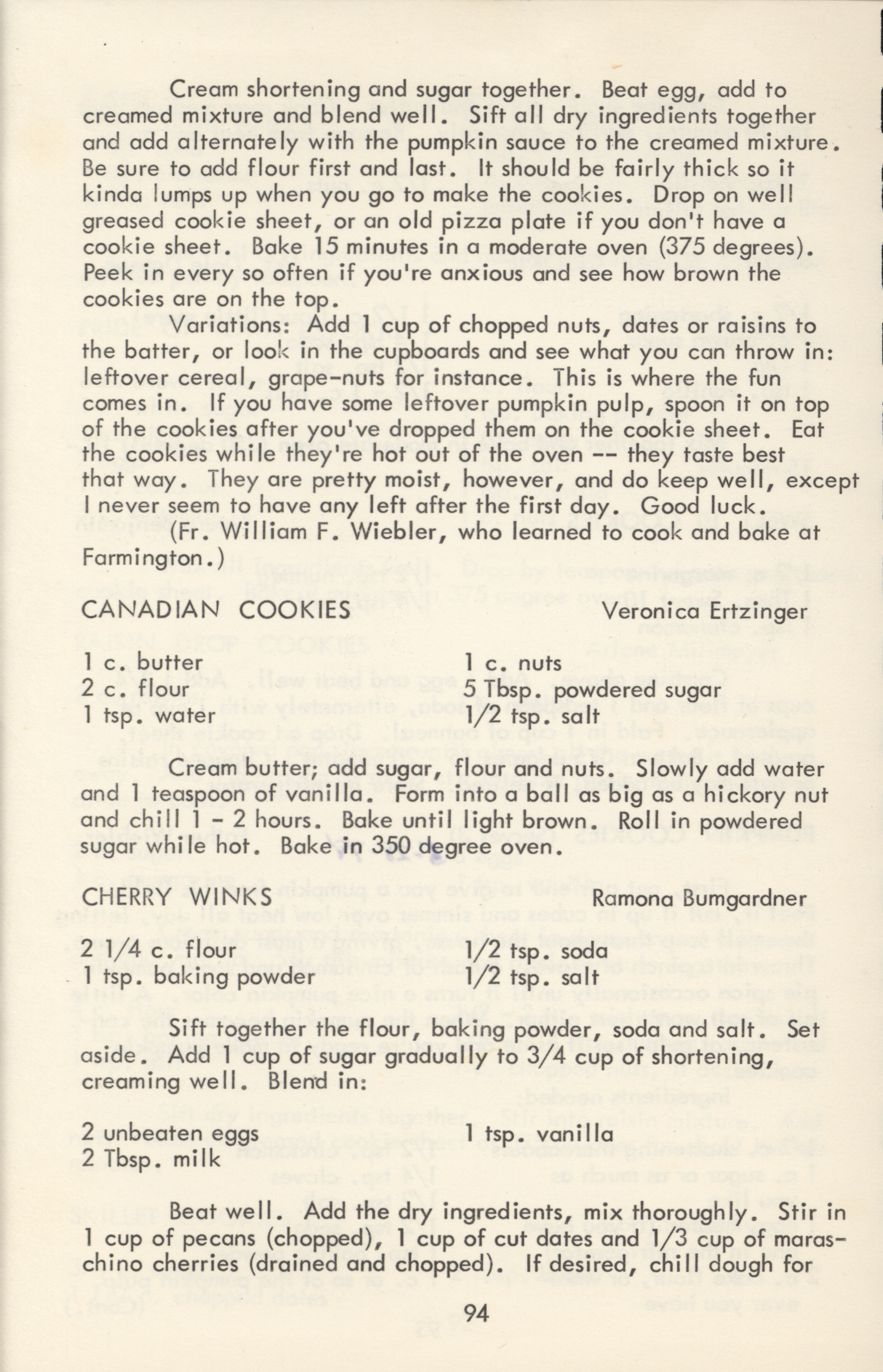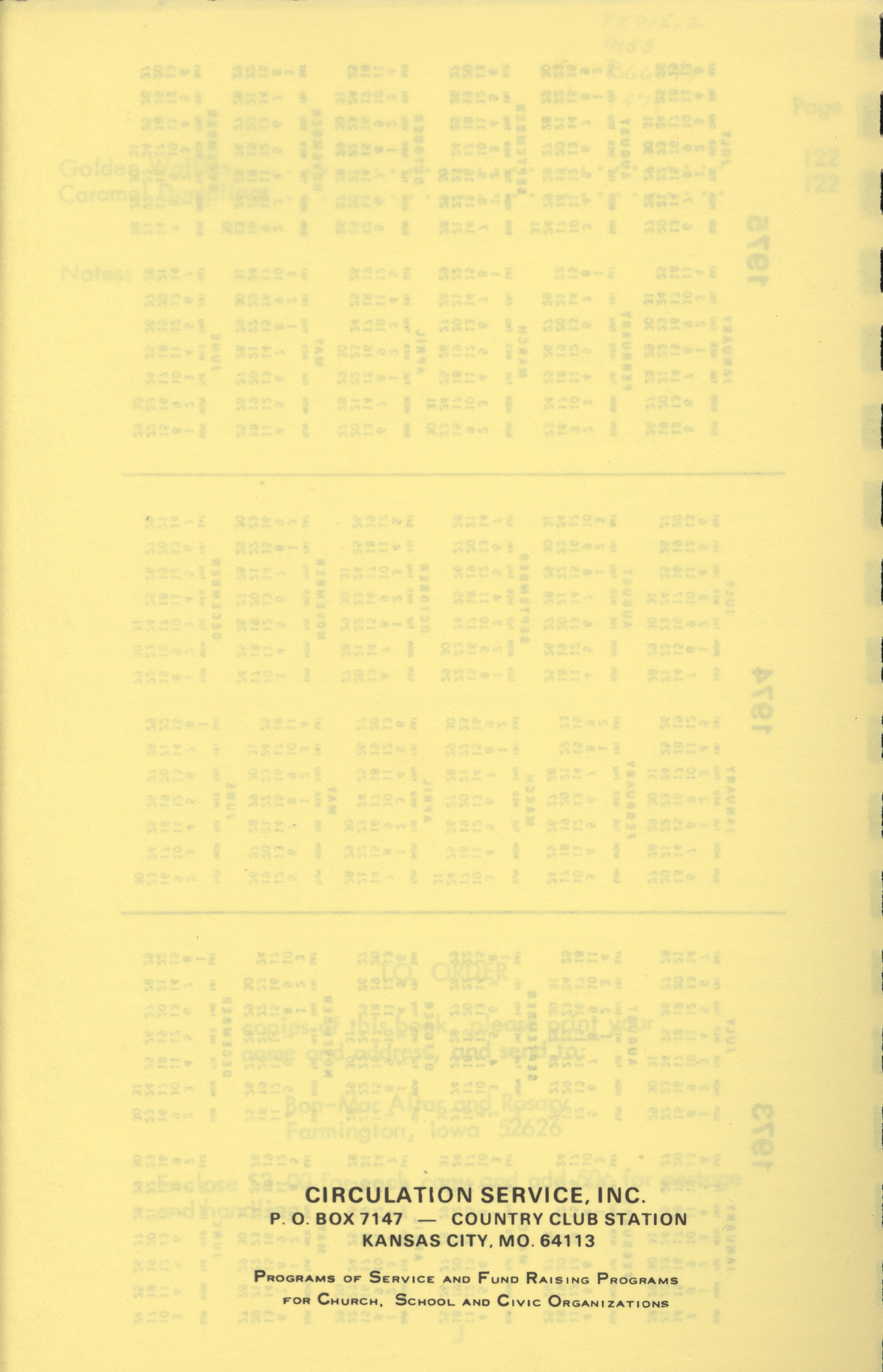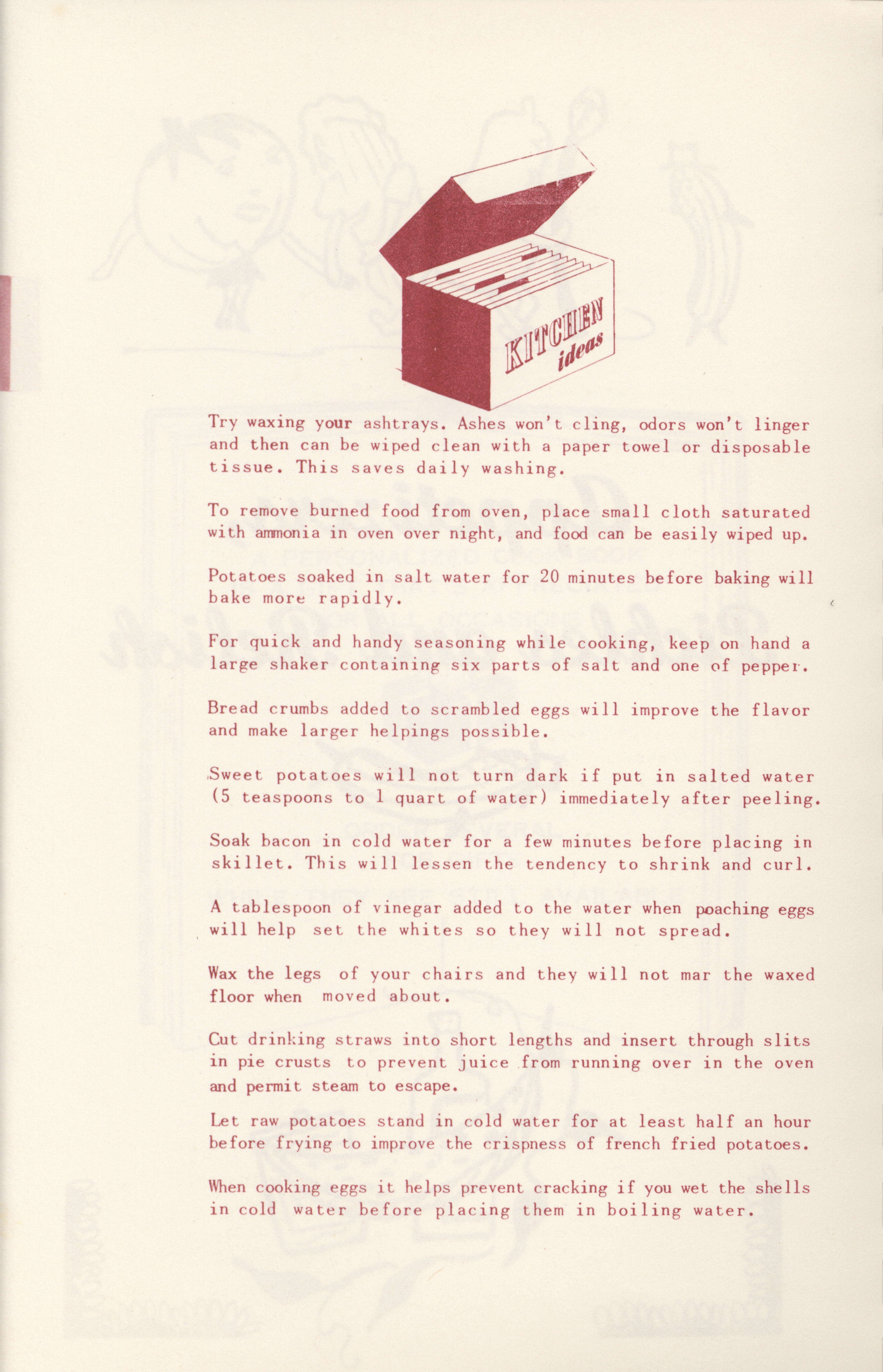 - Community cookbook created by the St. Boniface – St. Mary's Altar and Rosary Society in Farmington, Iowa. Includes recipes, cooking guides, household tips, and charts on food preparation. Published in memory of Nedra Benjamin.