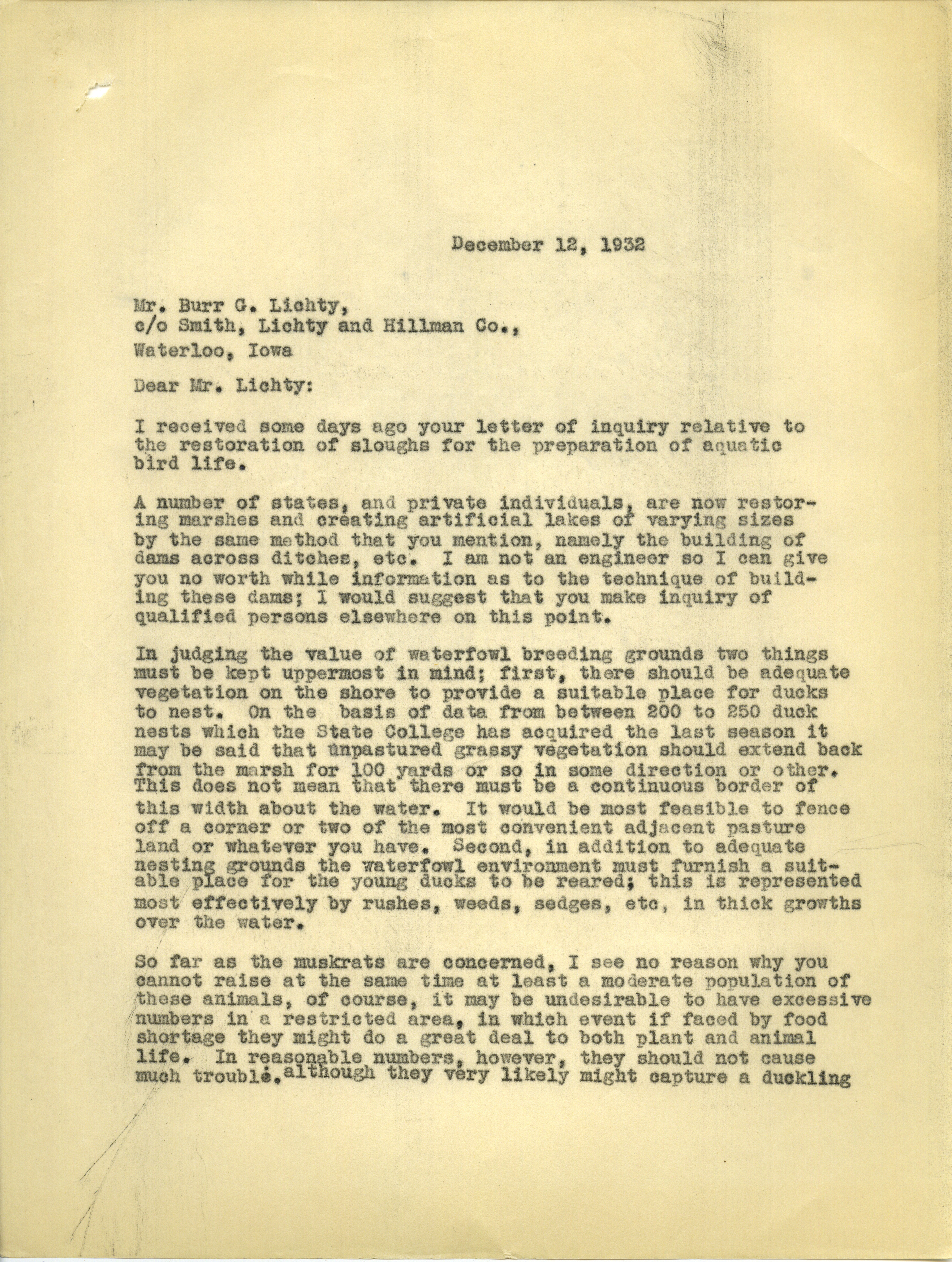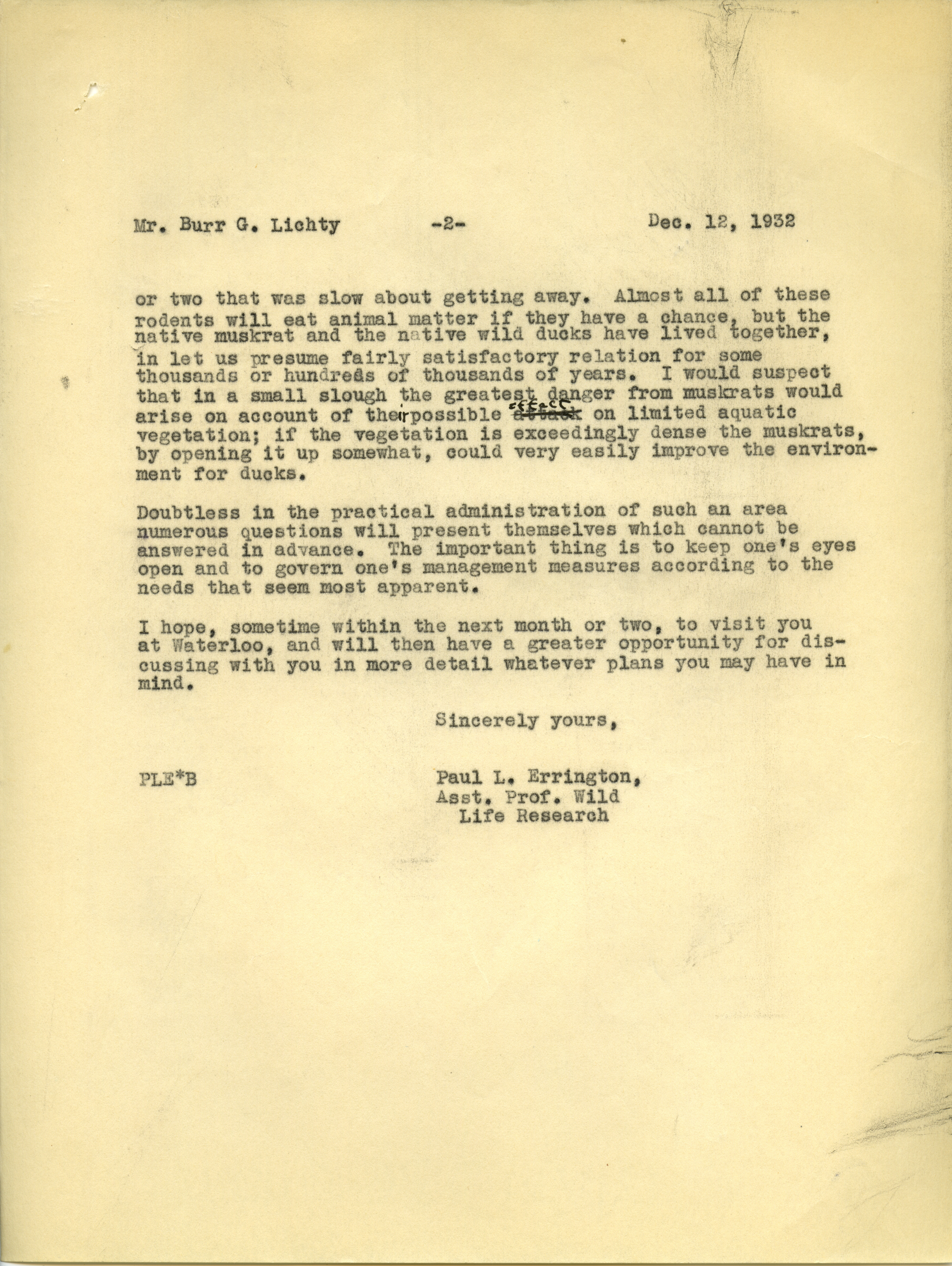 - "Paul L. Errington letter, December 12, 1932", Paul L. Errington Collection, Iowa State University Library Digital Collections