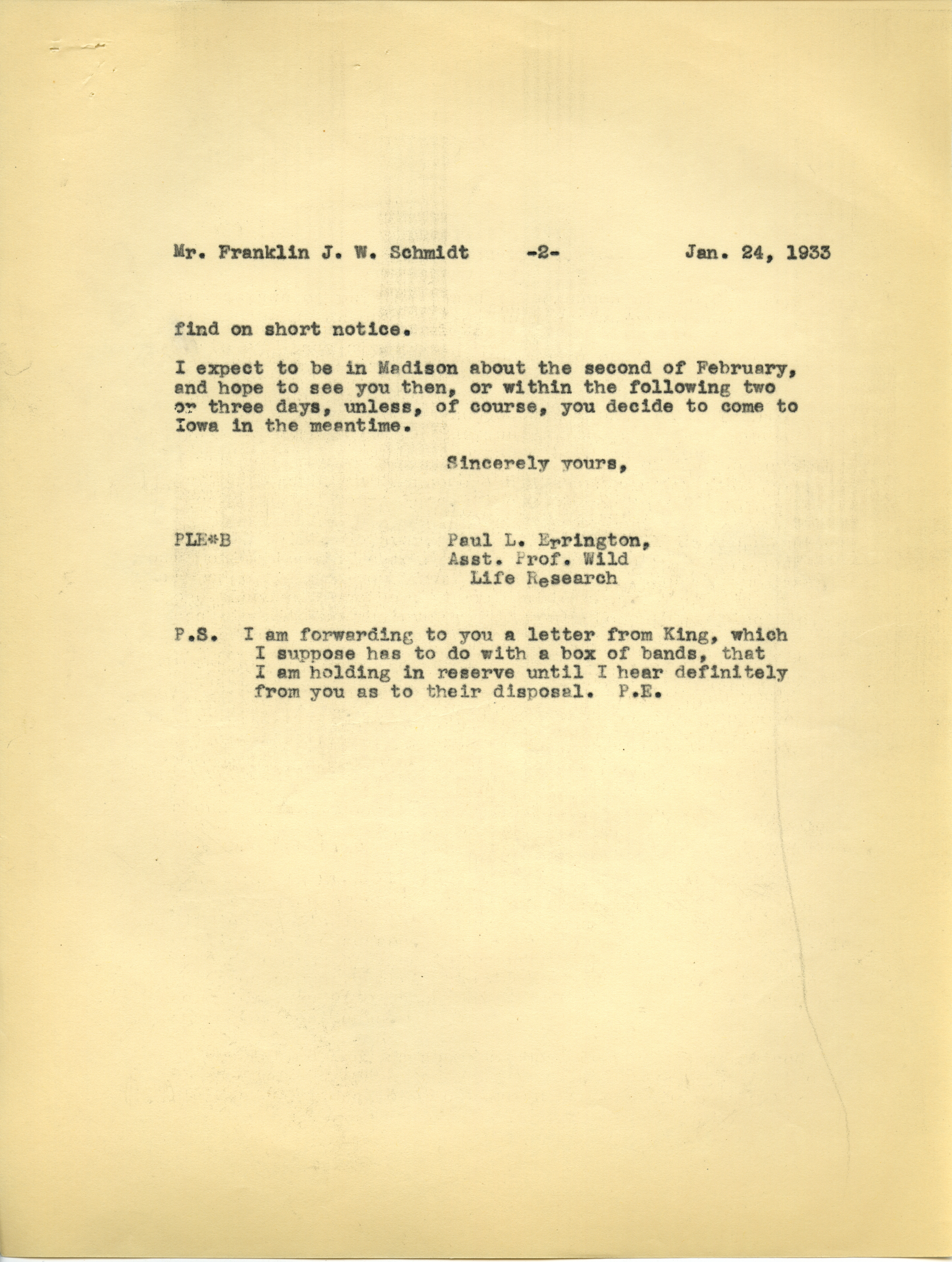 - Paul L. Errington letter 2, January 24, 1933