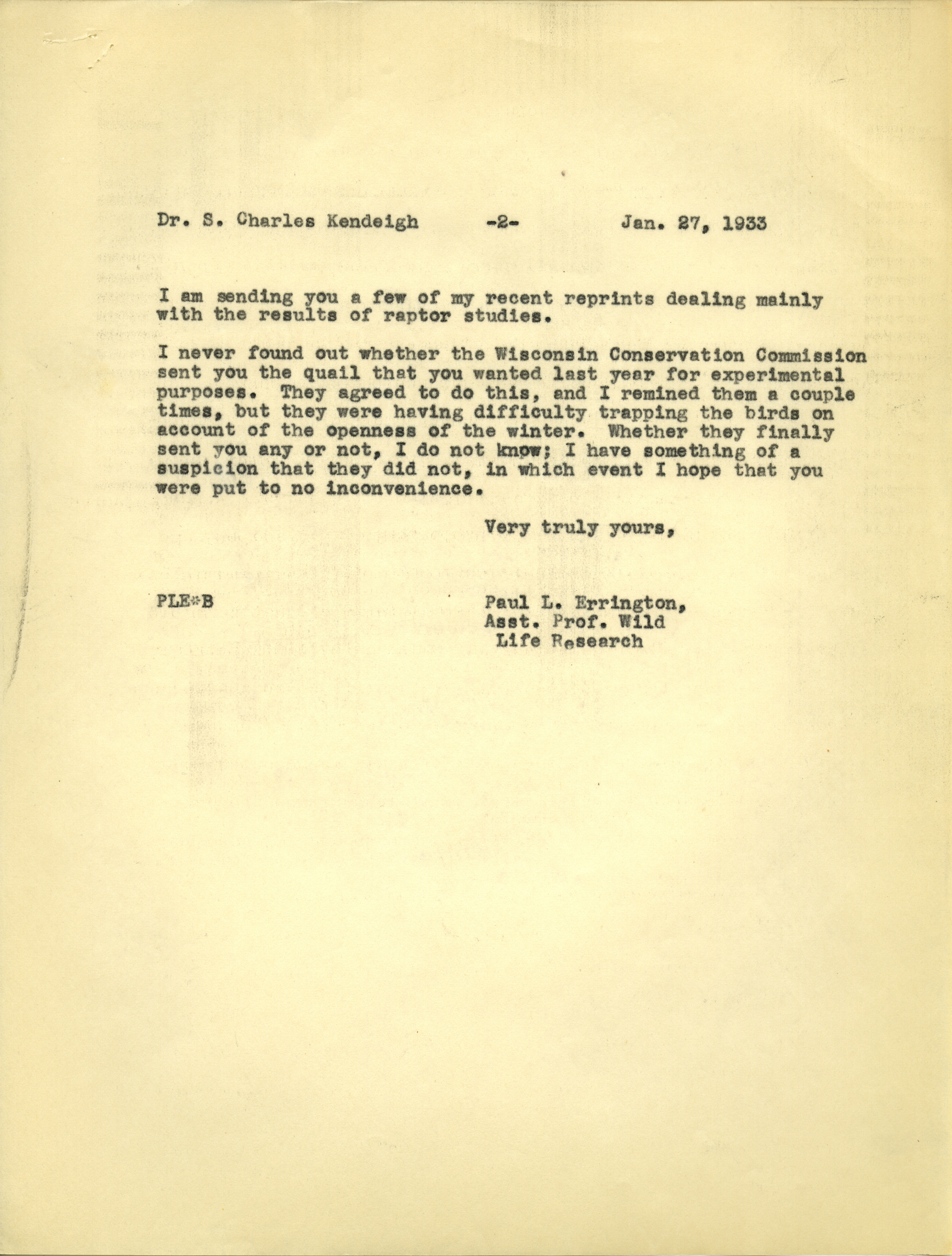 - Paul L. Errington letter, January 27, 1933