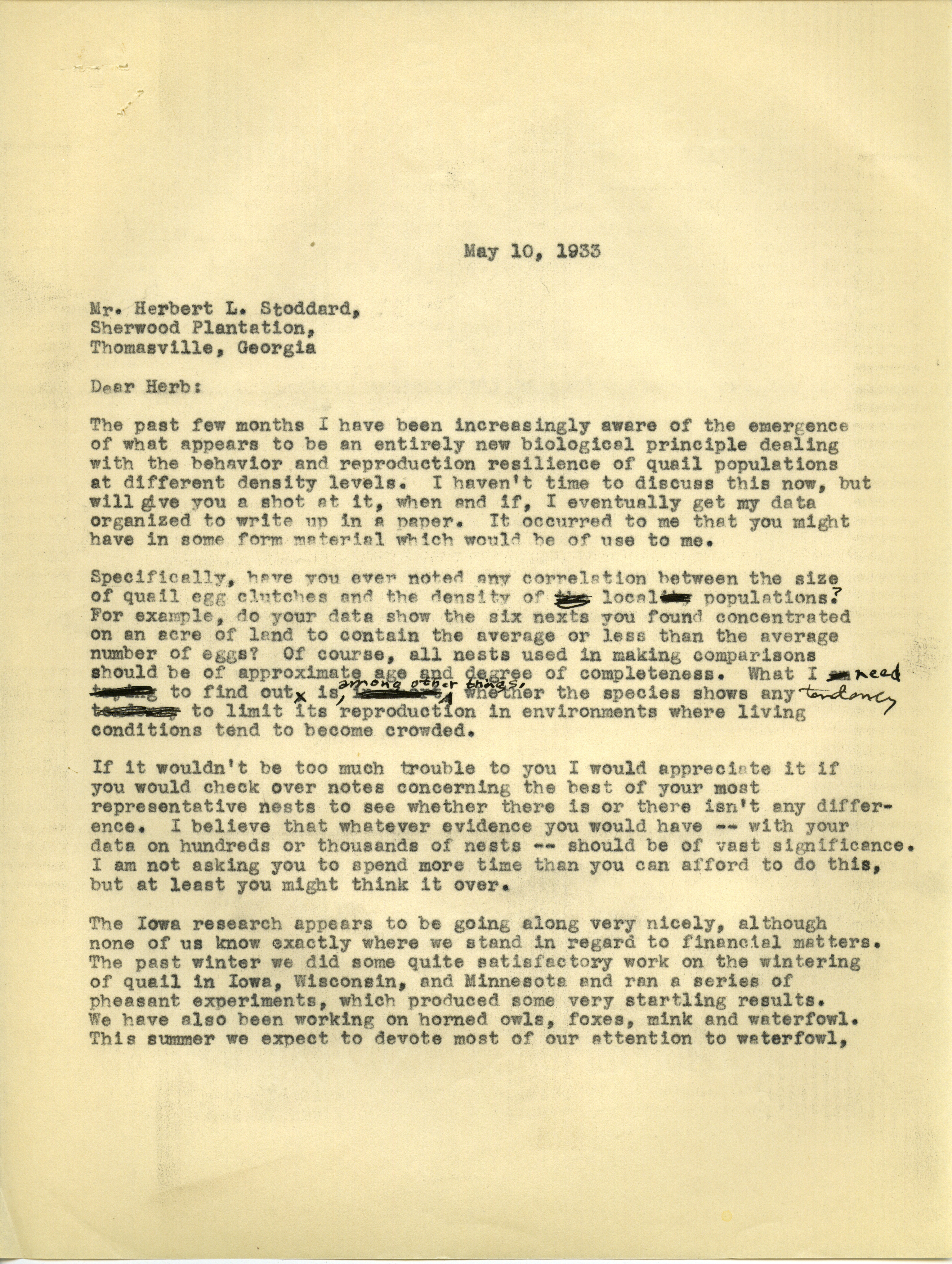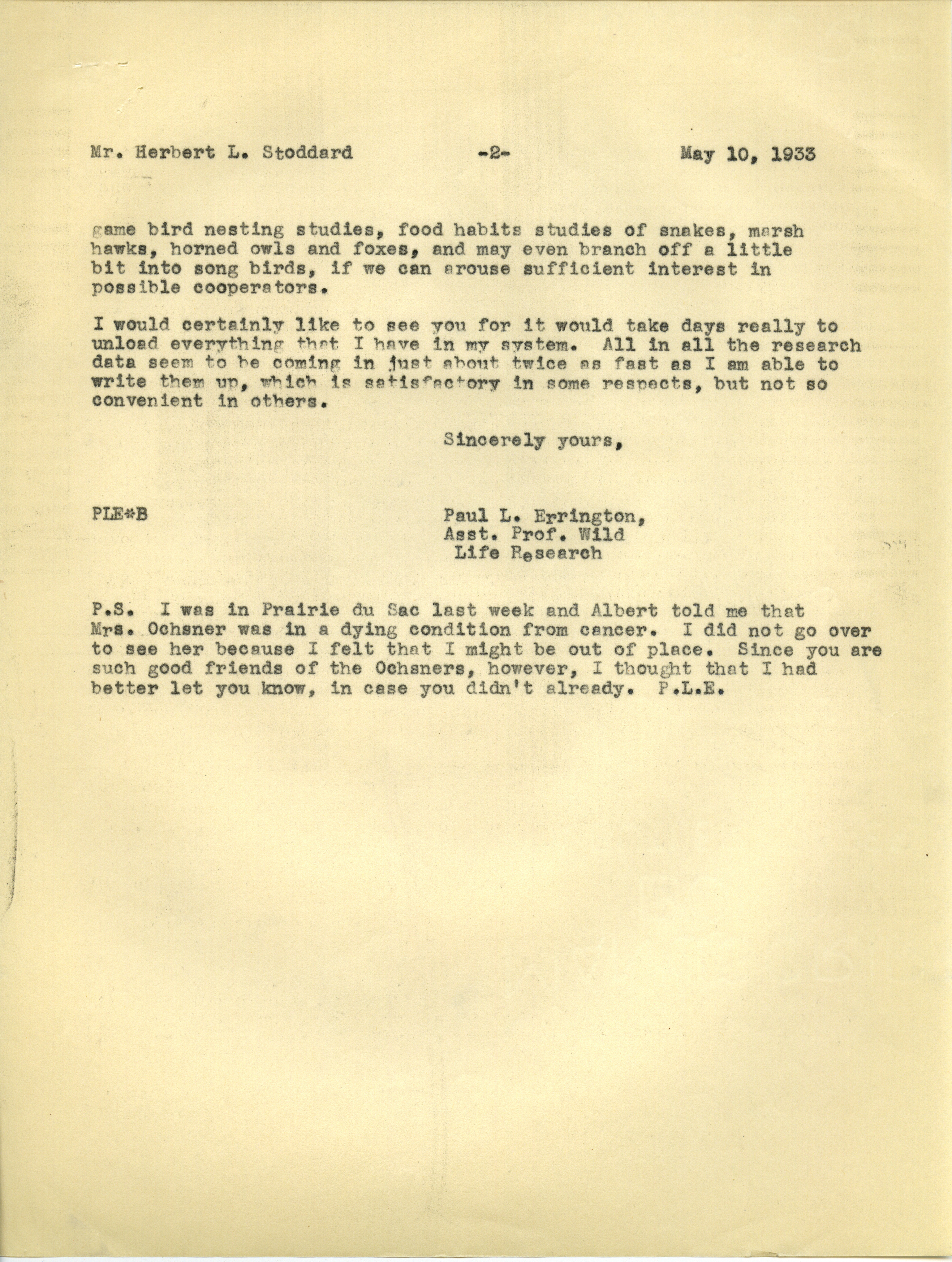 - "Paul L. Errington letter, May 10, 1933", Paul L. Errington Collection, Iowa State University Library Digital Collections