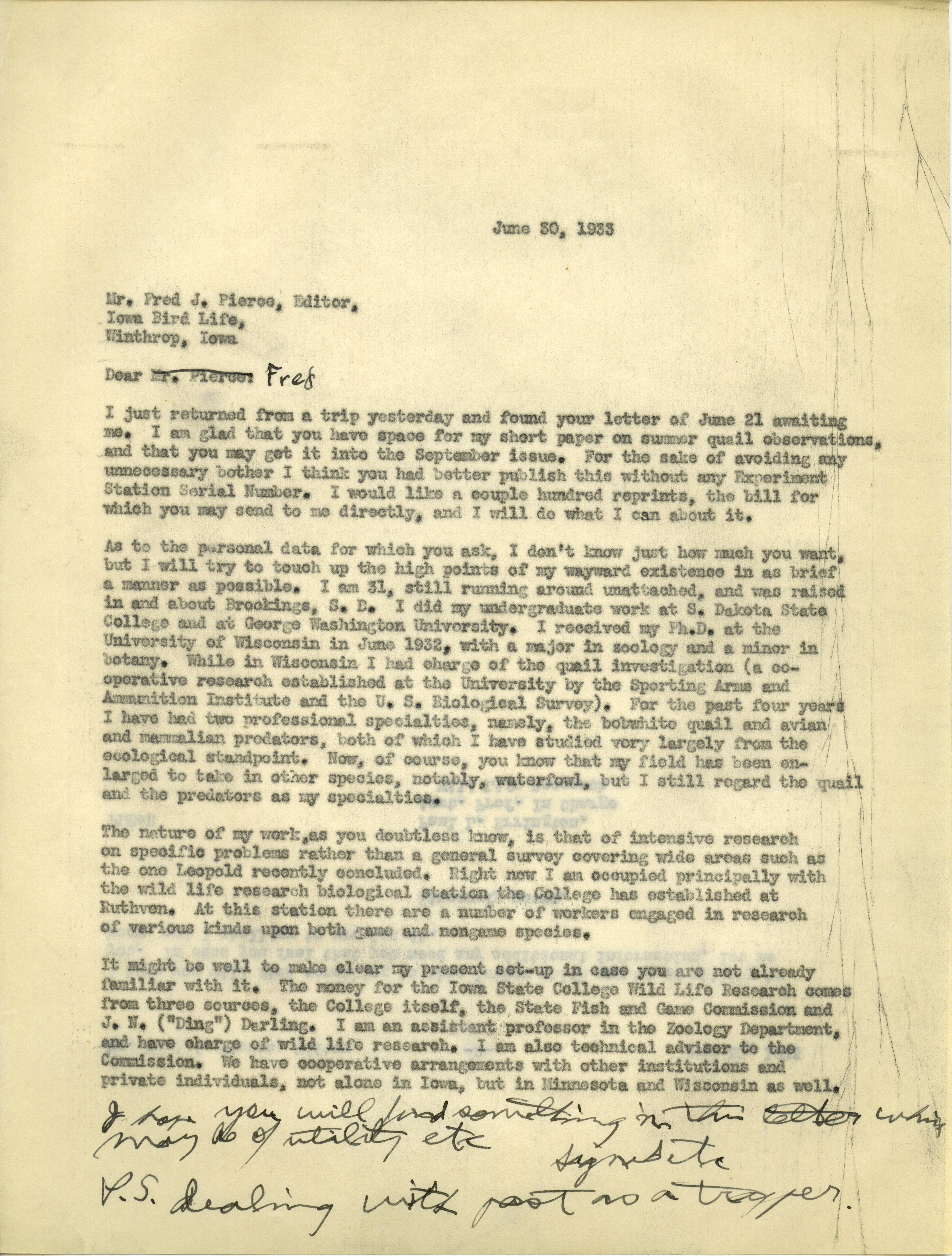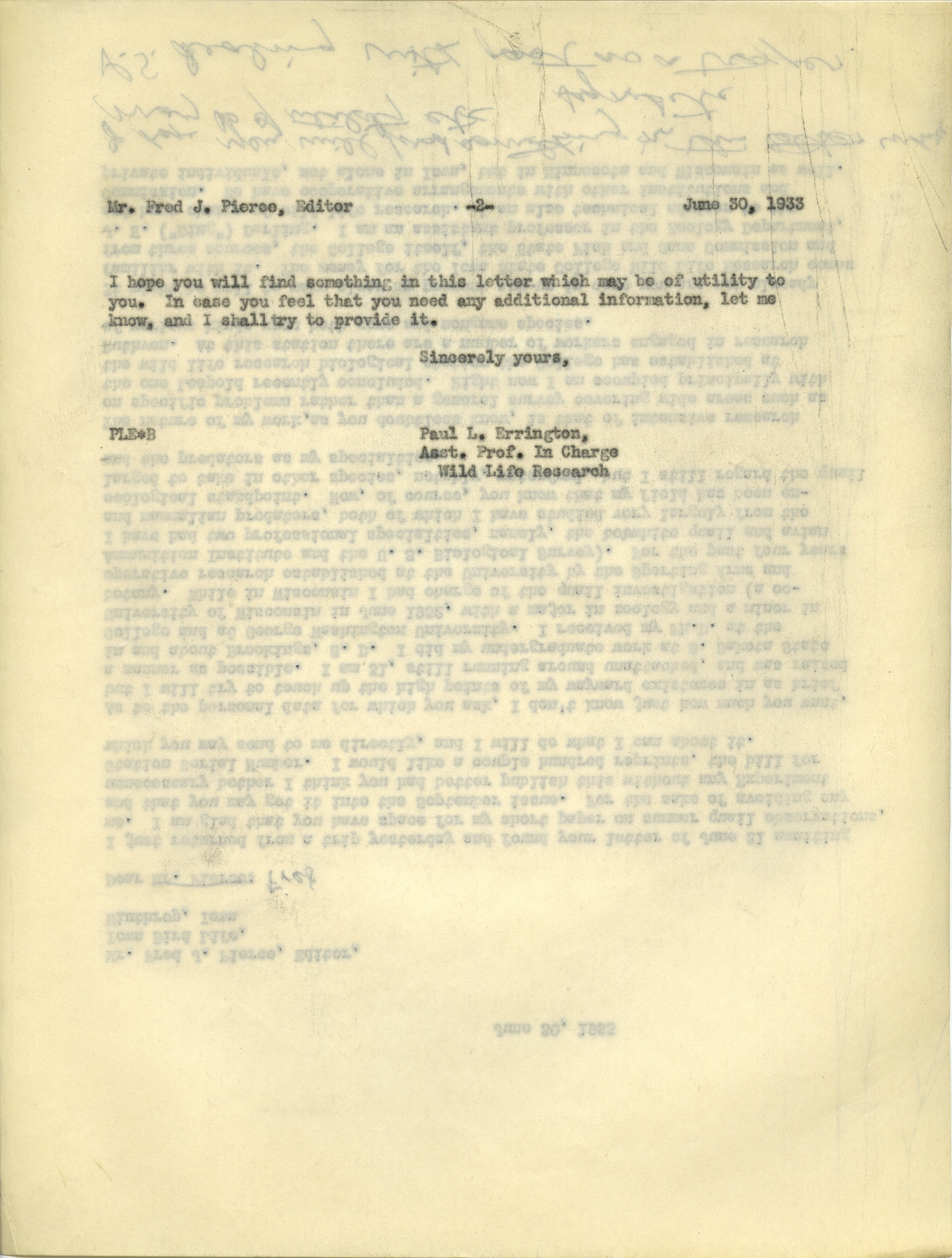 - Paul L. Errington letter 3, June 30, 1933
