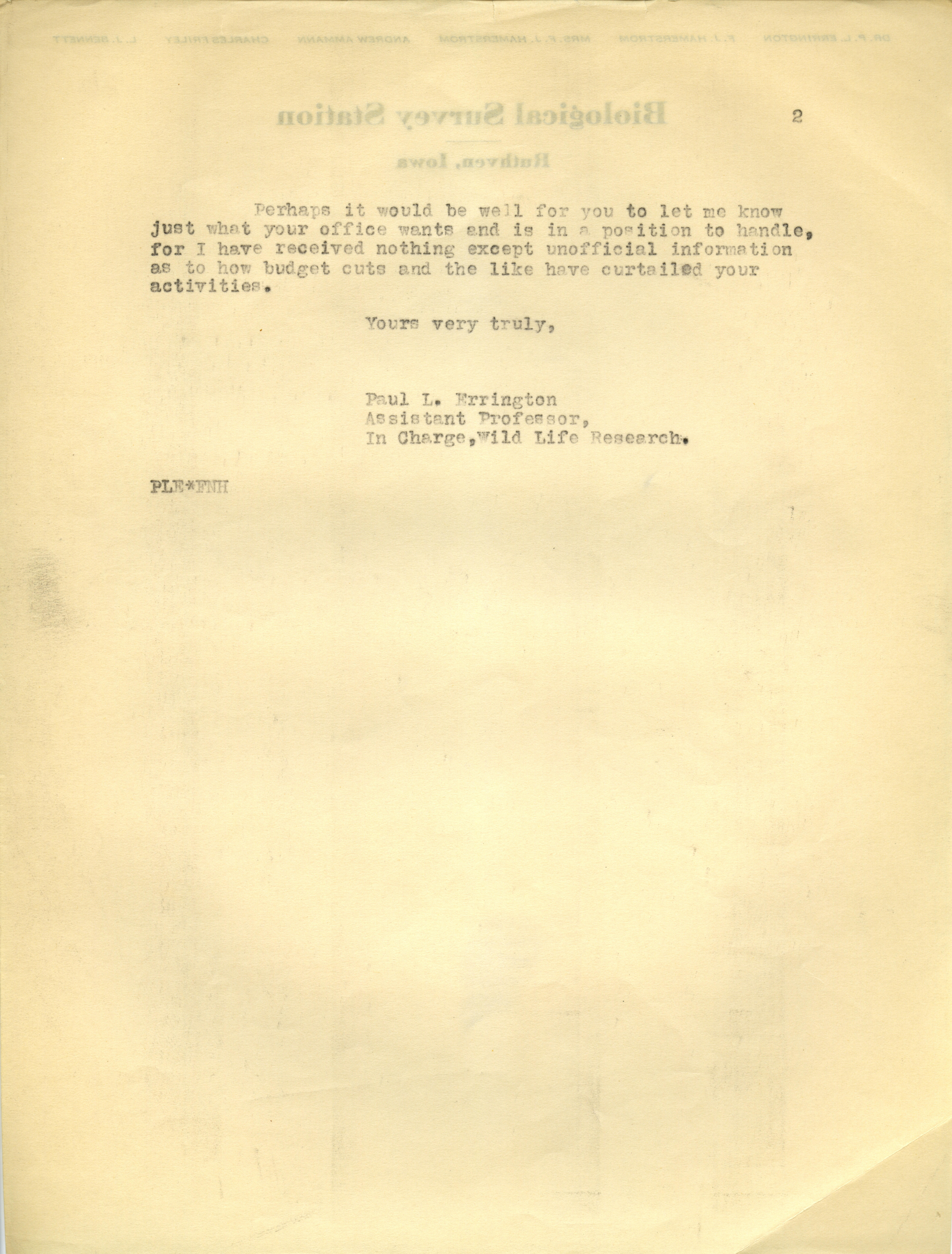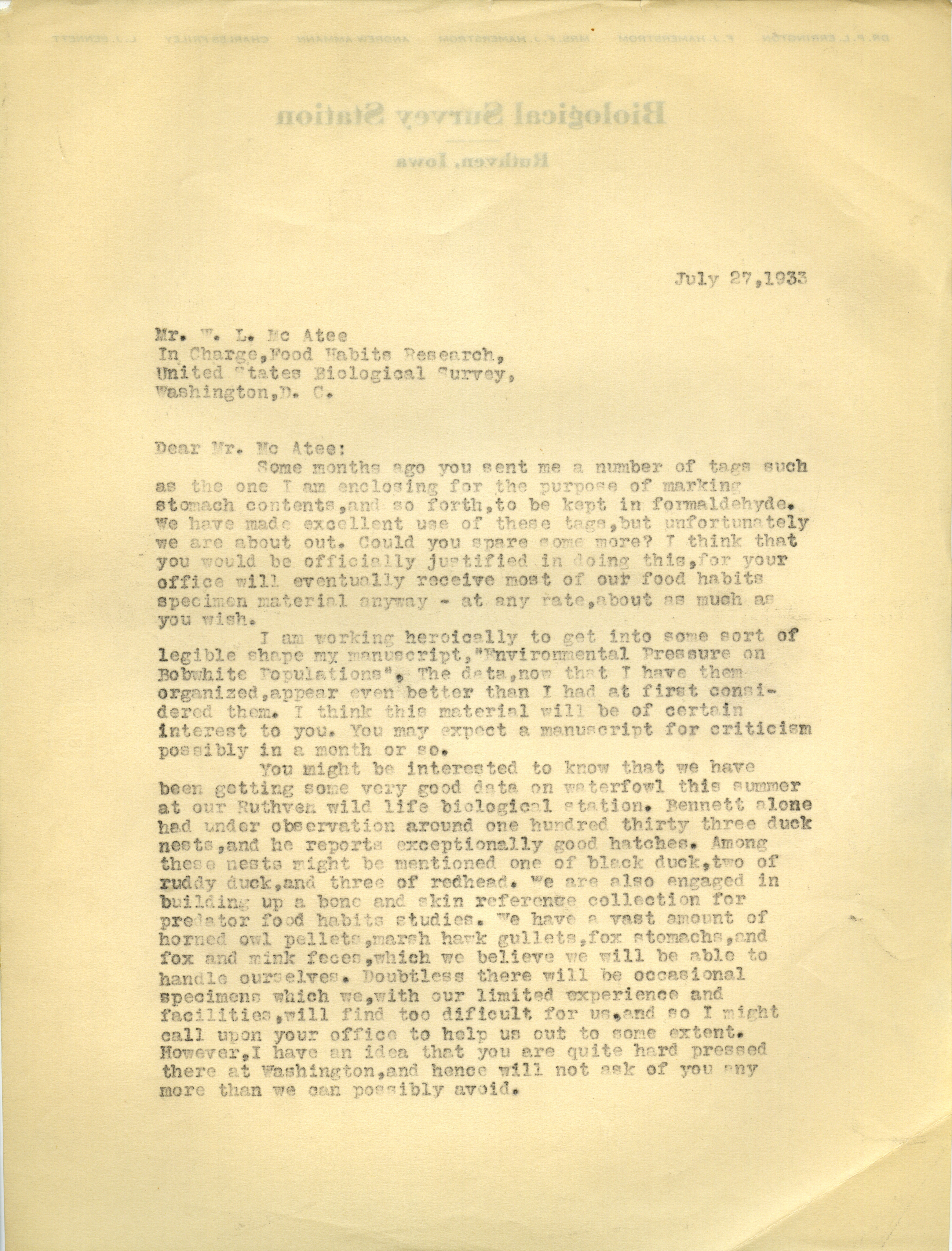 - Paul L. Errington letter, July 27, 1933