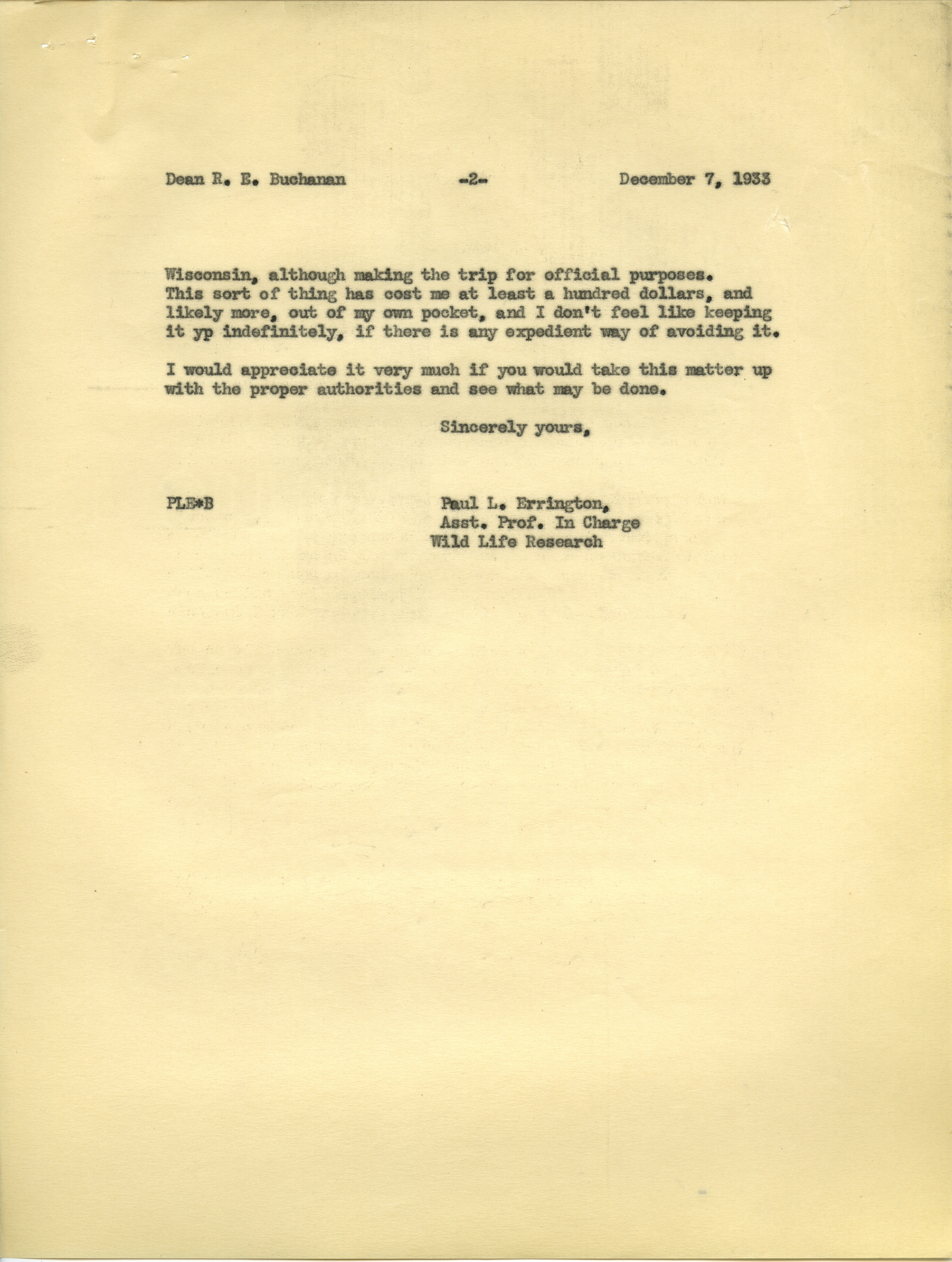 Paul L. Errington letter 2, December 7, 1933 Item Info
