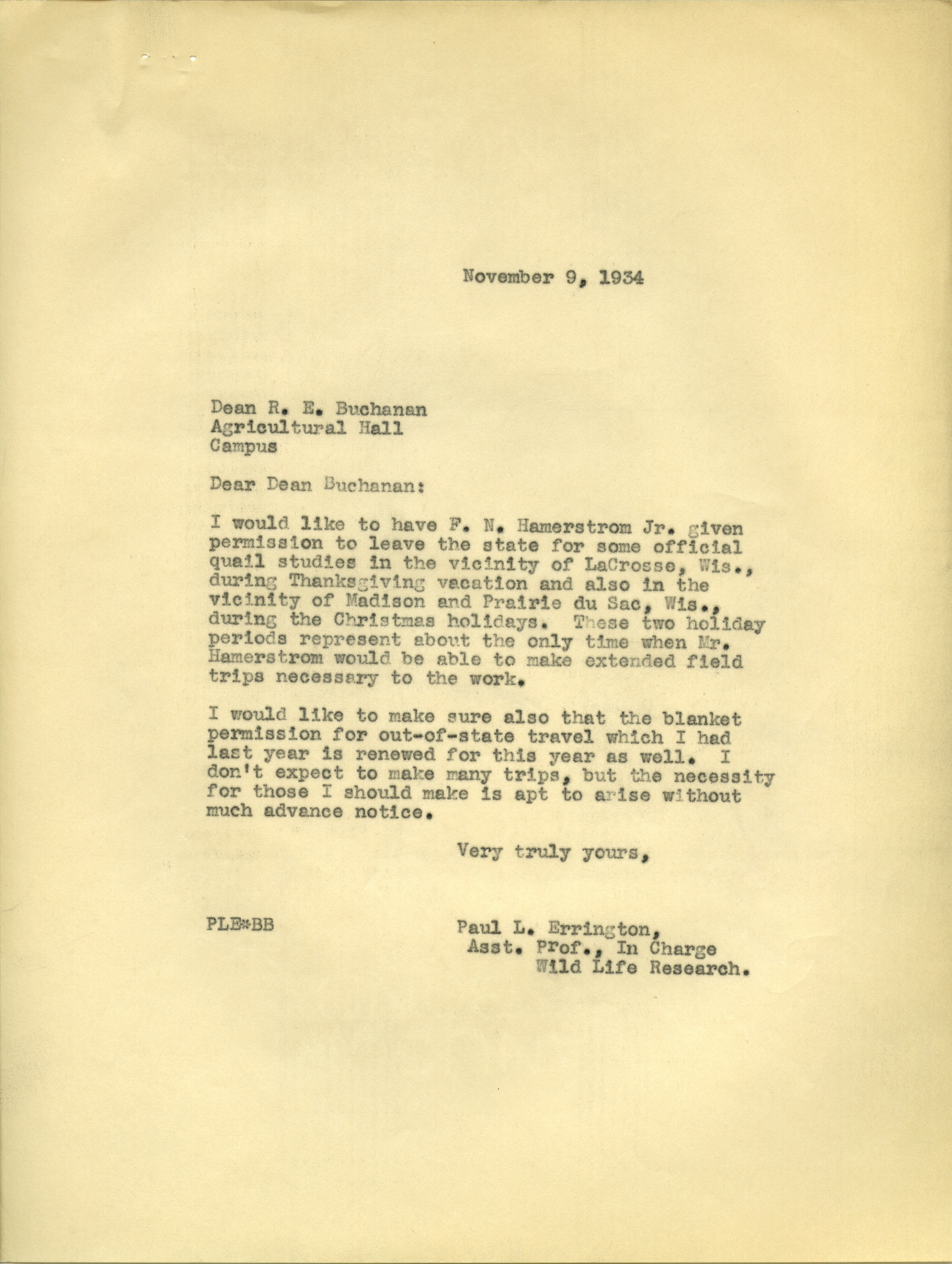 - "Paul L. Errington letter 2, December 7, 1933", Paul L. Errington Collection, Iowa State University Library Digital Collections