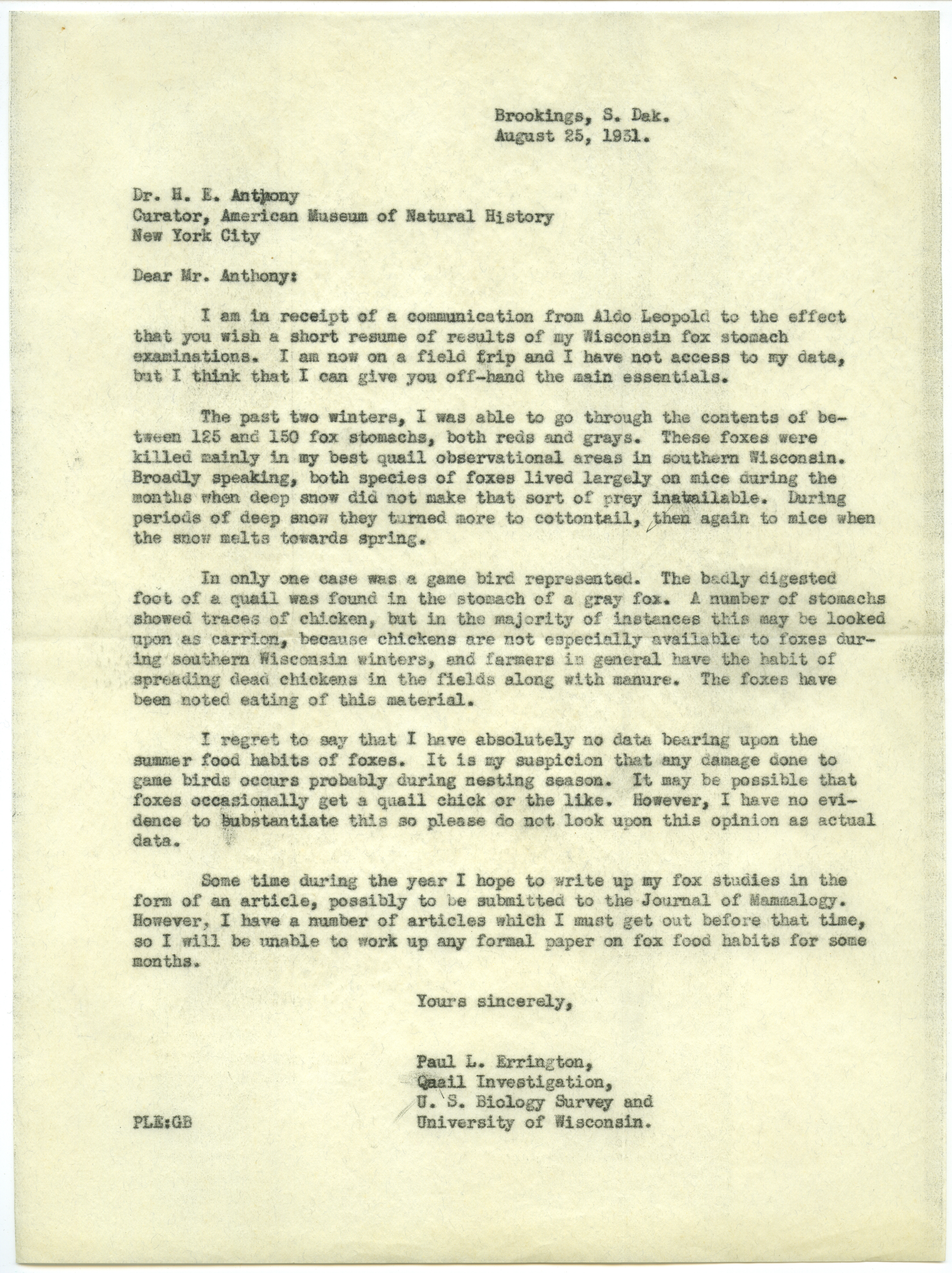 - "Paul L. Errington letter, August 25, 1931", Paul L. Errington Collection, Iowa State University Library Digital Collections