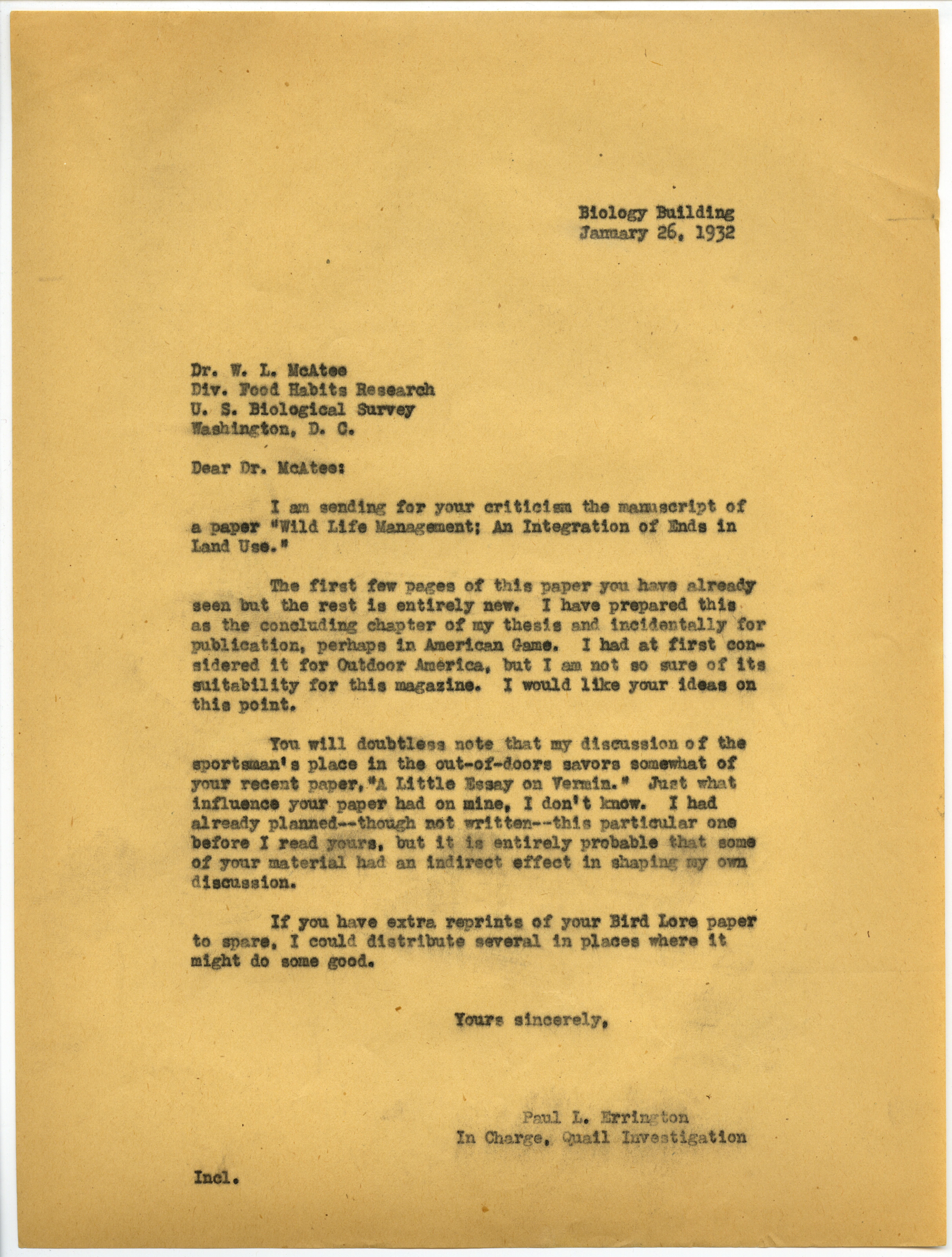 - Paul L. Errington letter 2, January 26, 1932