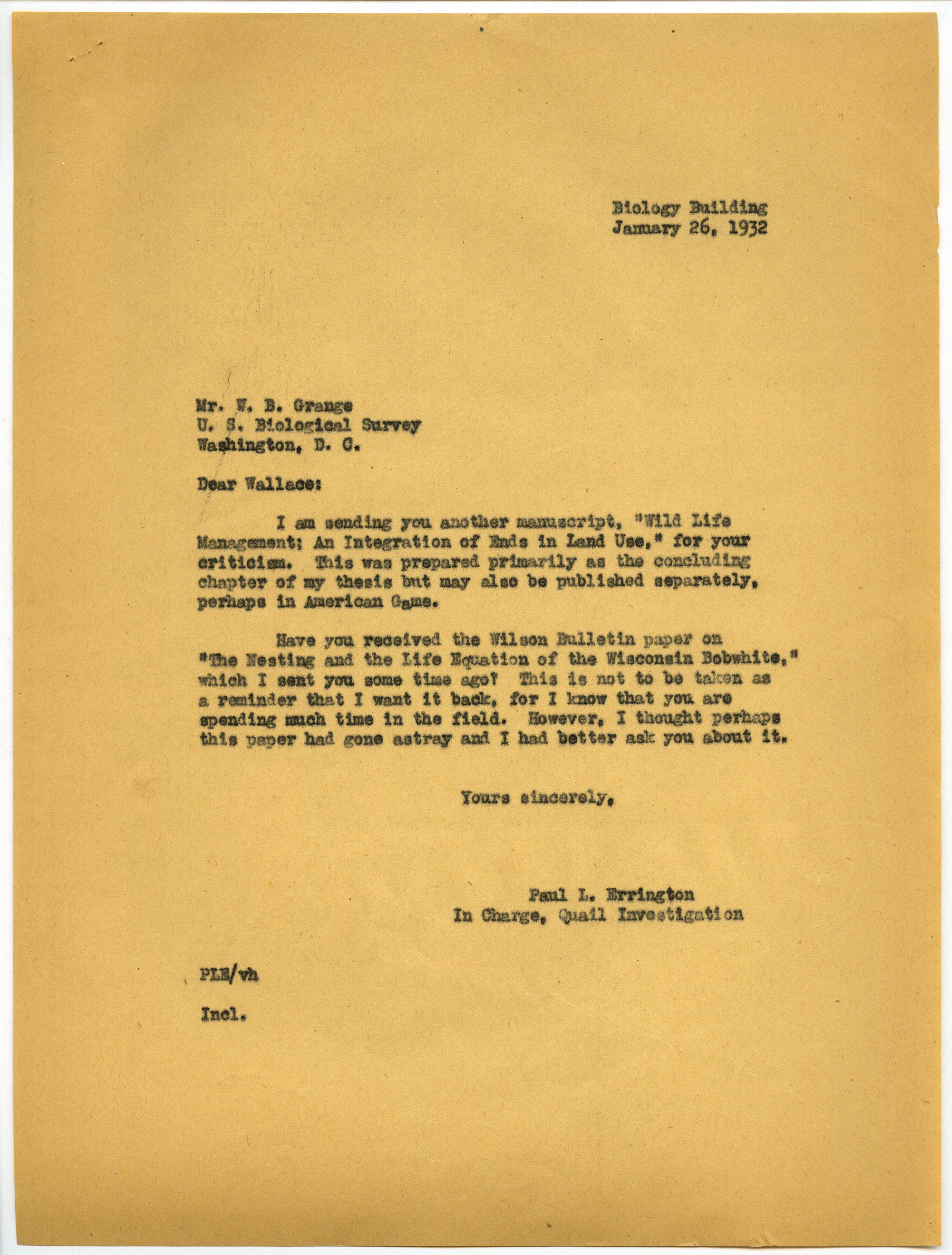 - "Paul L. Errington letter 1, January 26, 1932", Paul L. Errington Collection, Iowa State University Library Digital Collections