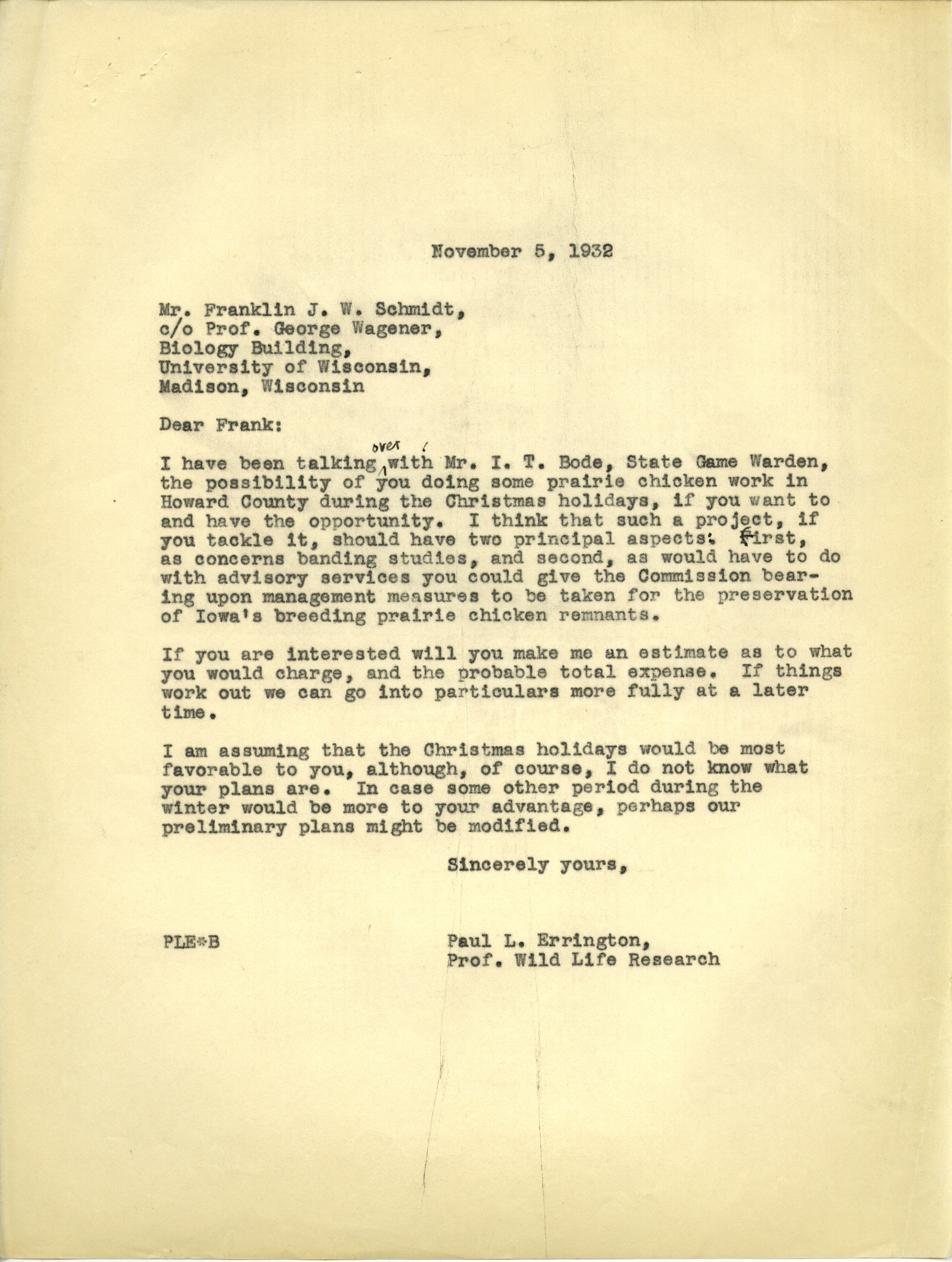 - "Paul L. Errington letter, November 5, 1932", Paul L. Errington Collection, Iowa State University Library Digital Collections