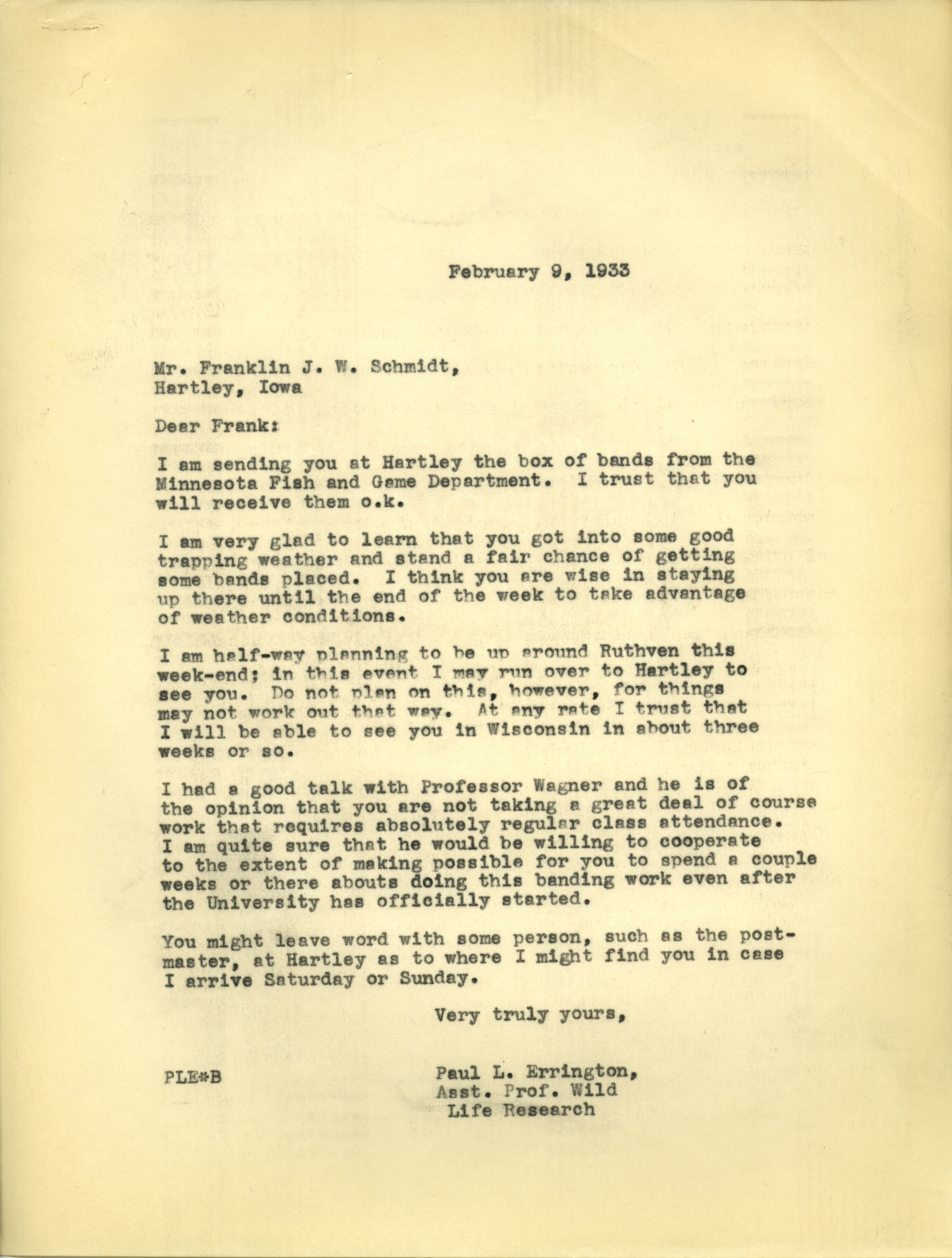 - Paul L. Errington letter 1, February 9, 1933
