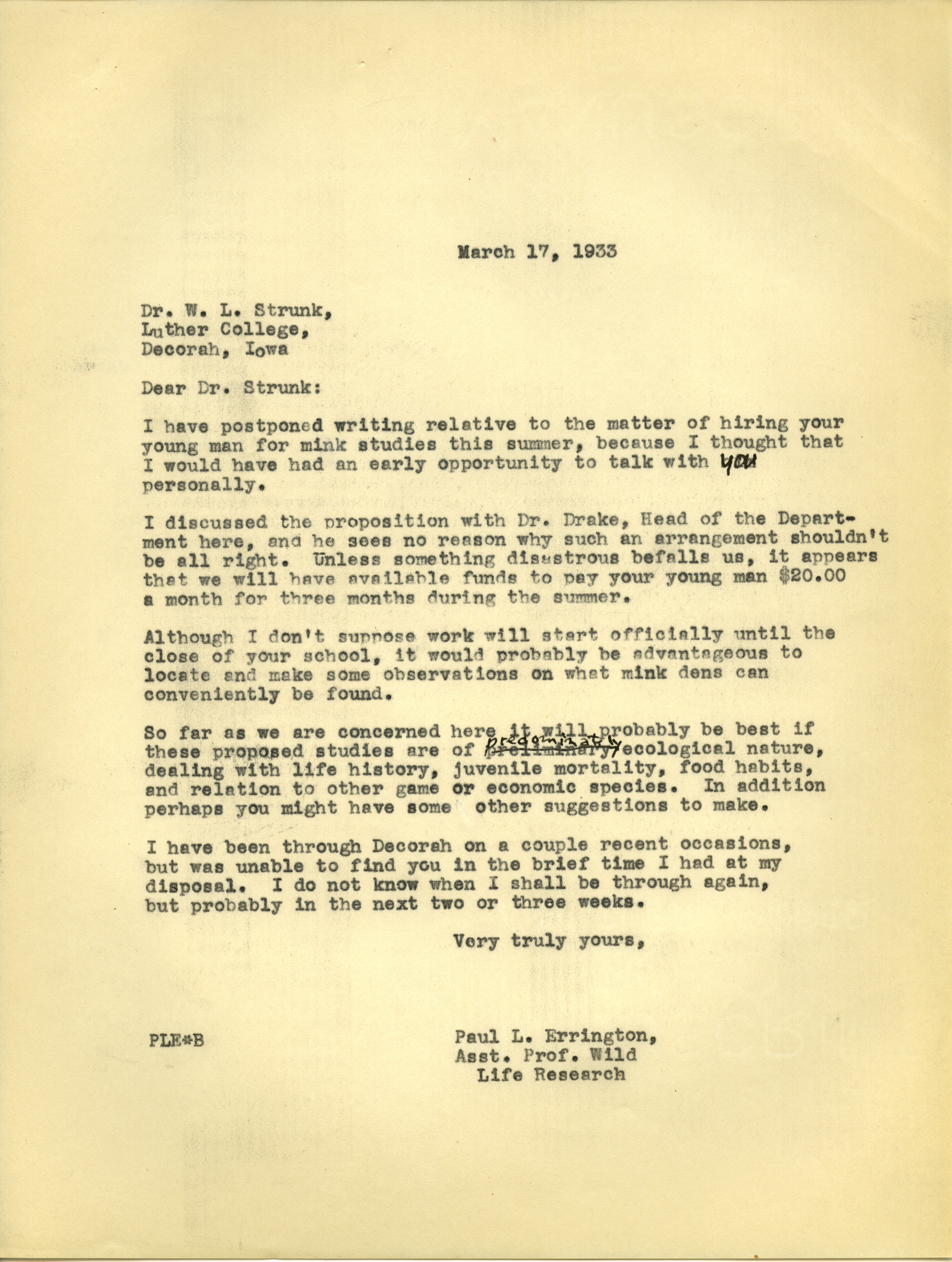 - Paul L. Errington letter 2, March 17, 1933