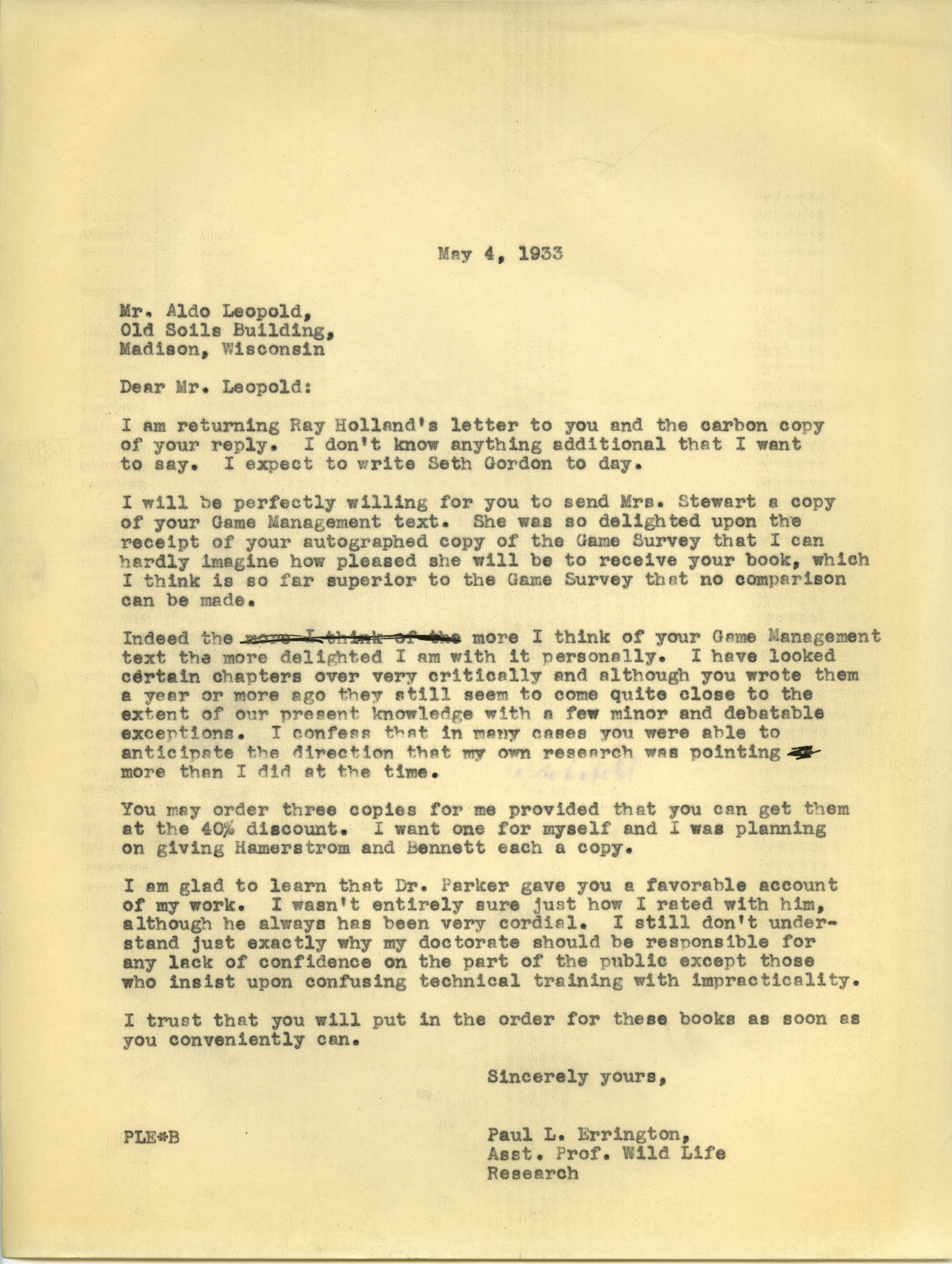 - "Paul L. Errington letter 5, May 4, 1933", Paul L. Errington Collection, Iowa State University Library Digital Collections