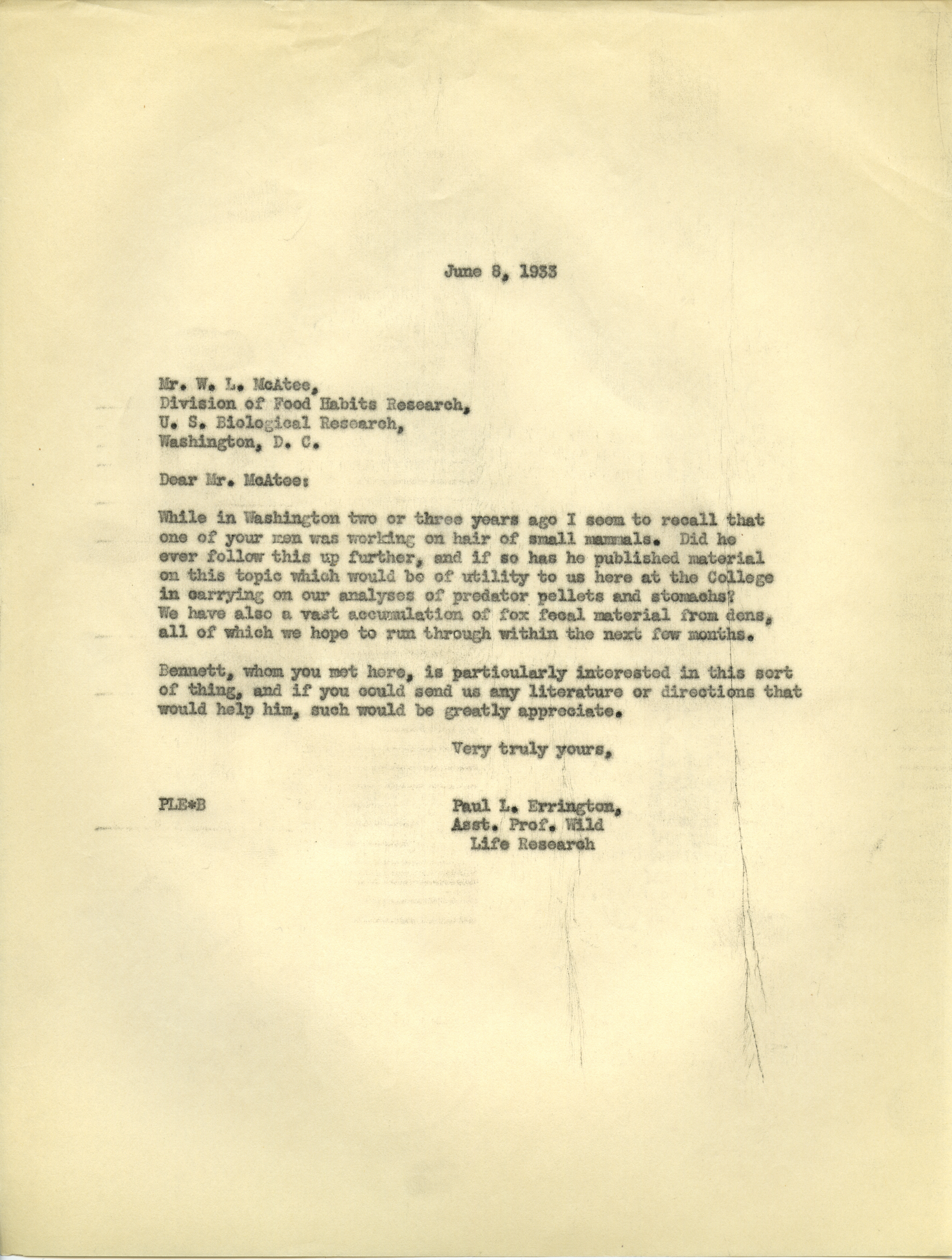 - "Paul L. Errington letter, June 8, 1933", Paul L. Errington Collection, Iowa State University Library Digital Collections
