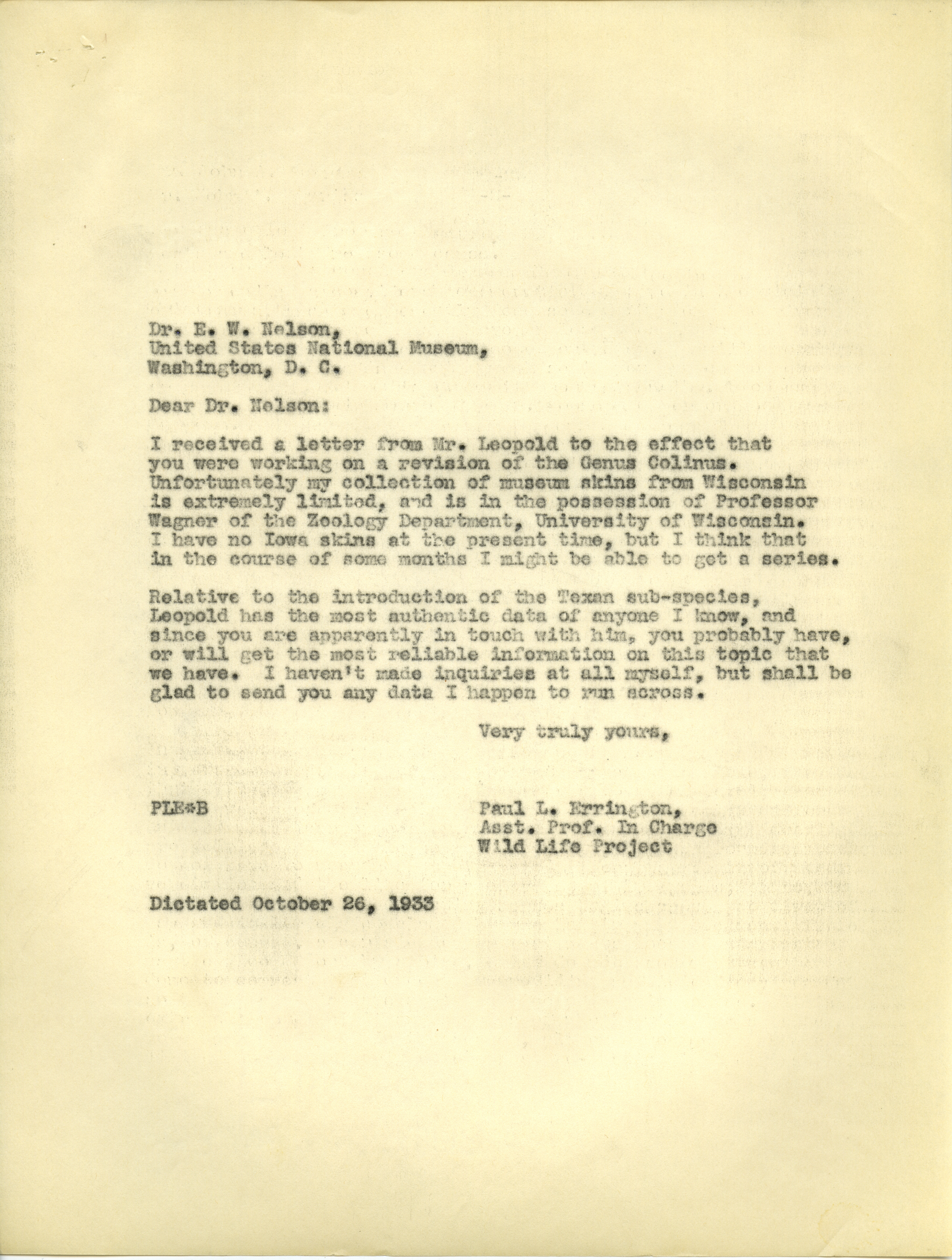 - Paul L. Errington letter, October 26, 1933