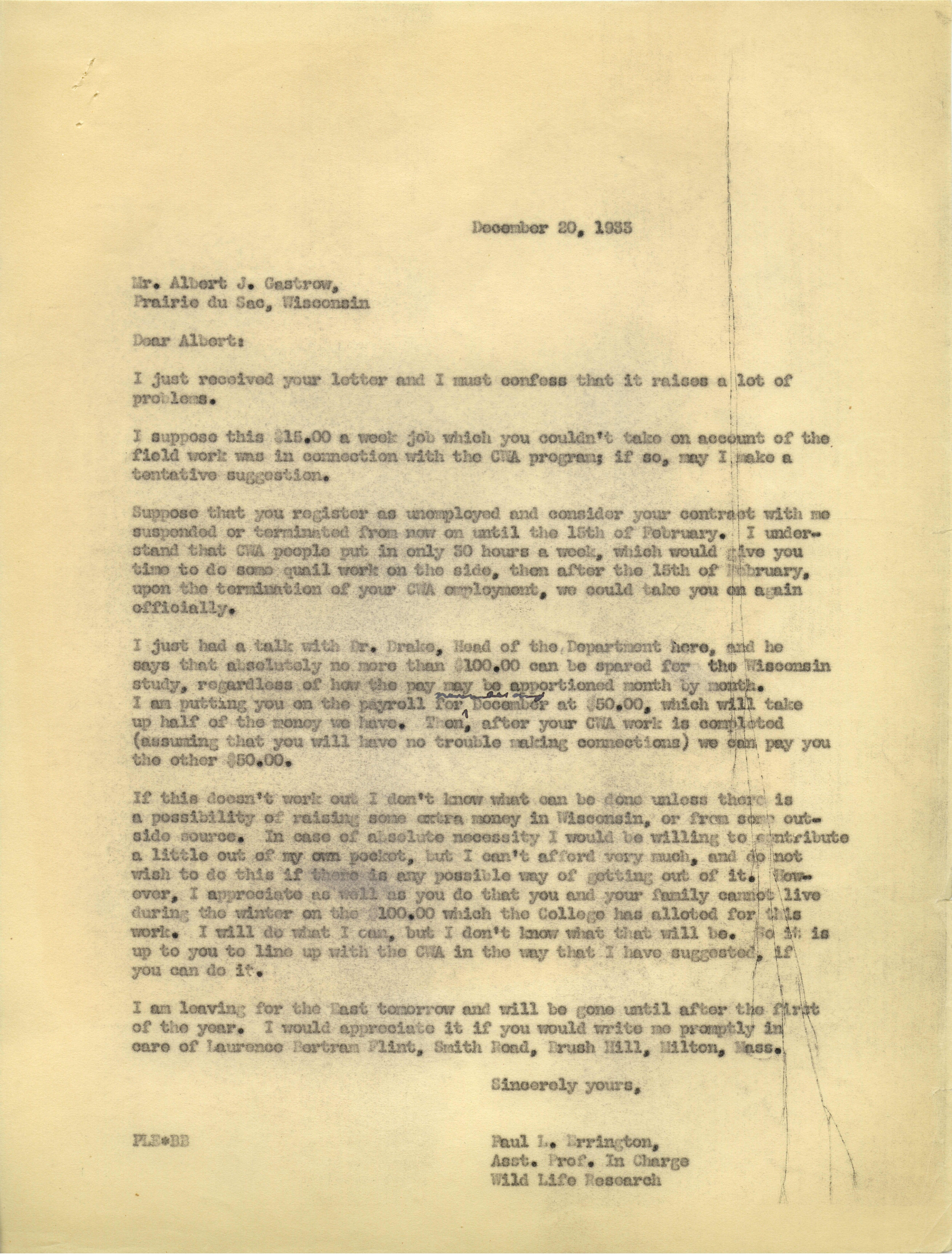 Paul L. Errington letter 2, December 20, 1933 Item Info