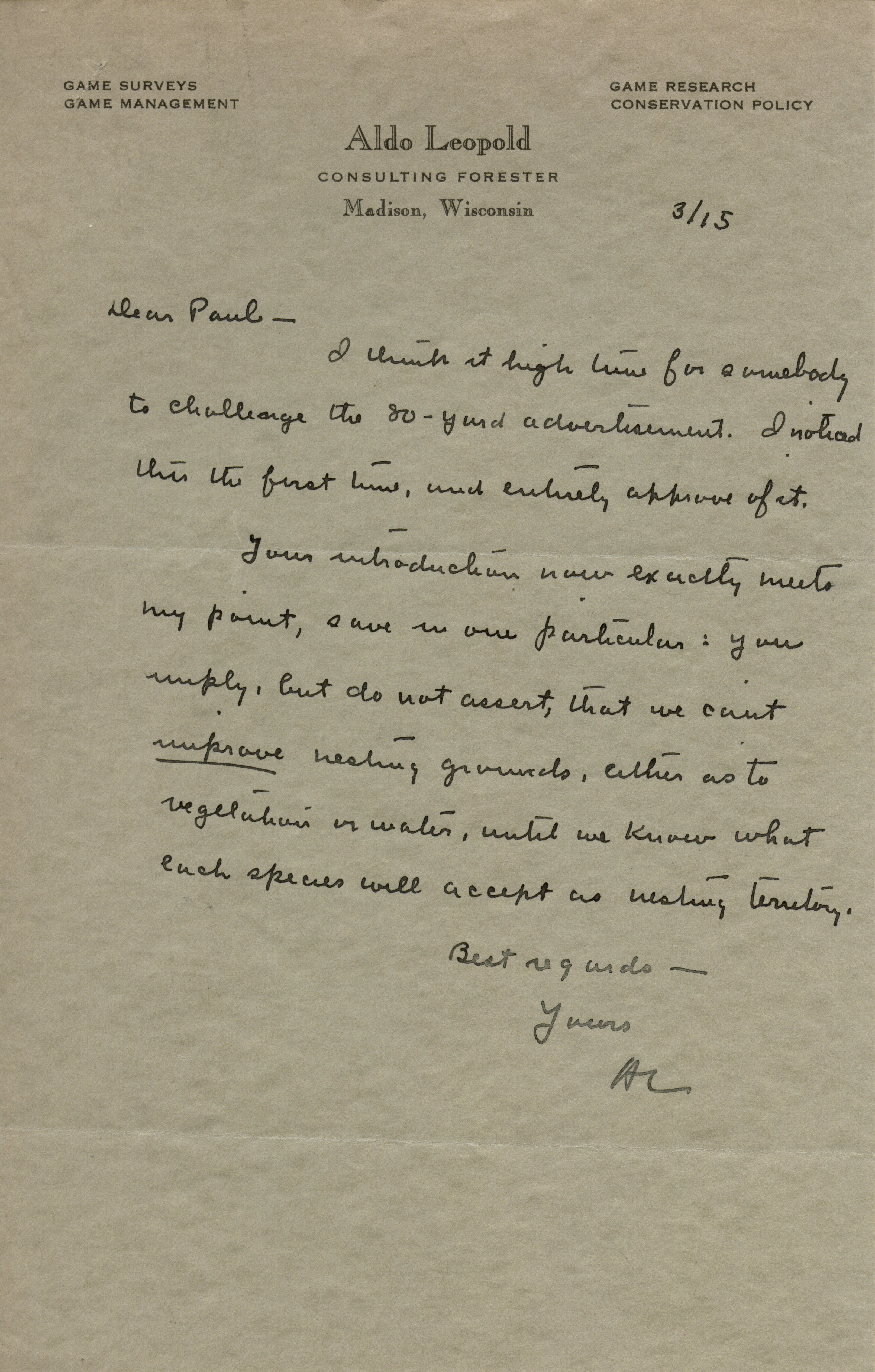 - Aldo Leopold letter to Paul Errington, March 15, 1930