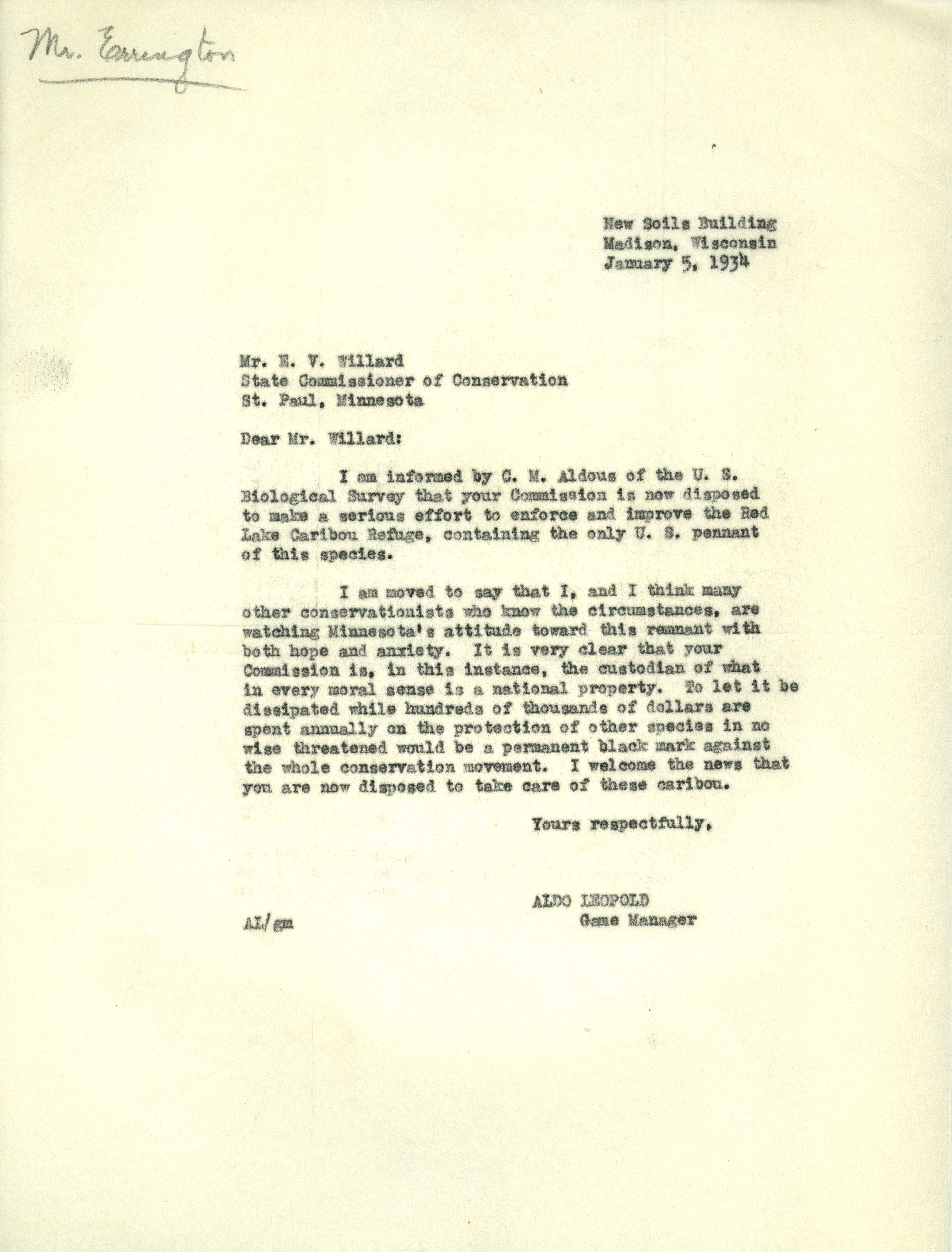 Aldo Leopold letter to Willard, January 5, 1934 Item Info