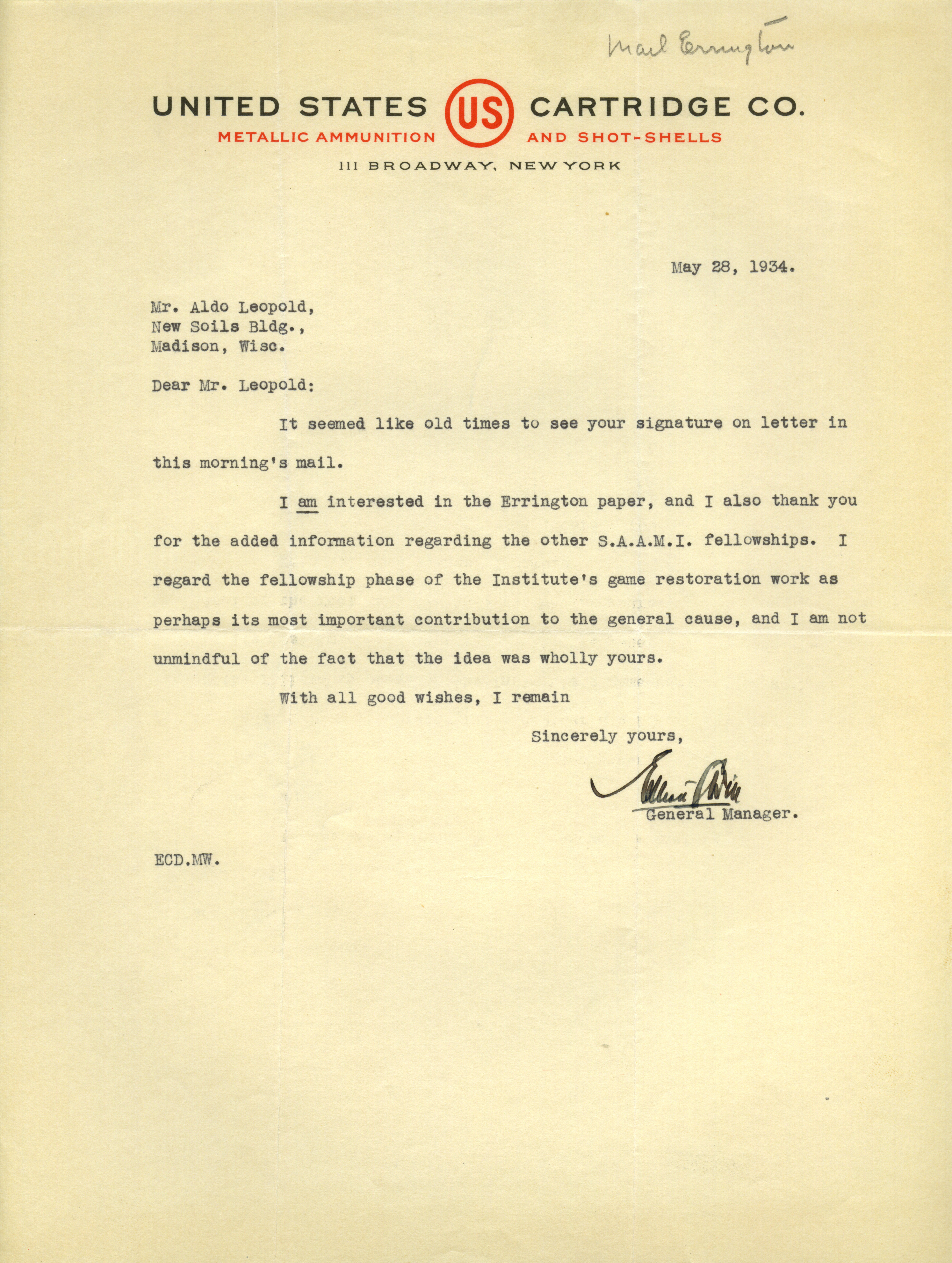 Letter to Aldo Leopold, May 28, 1934 Item Info