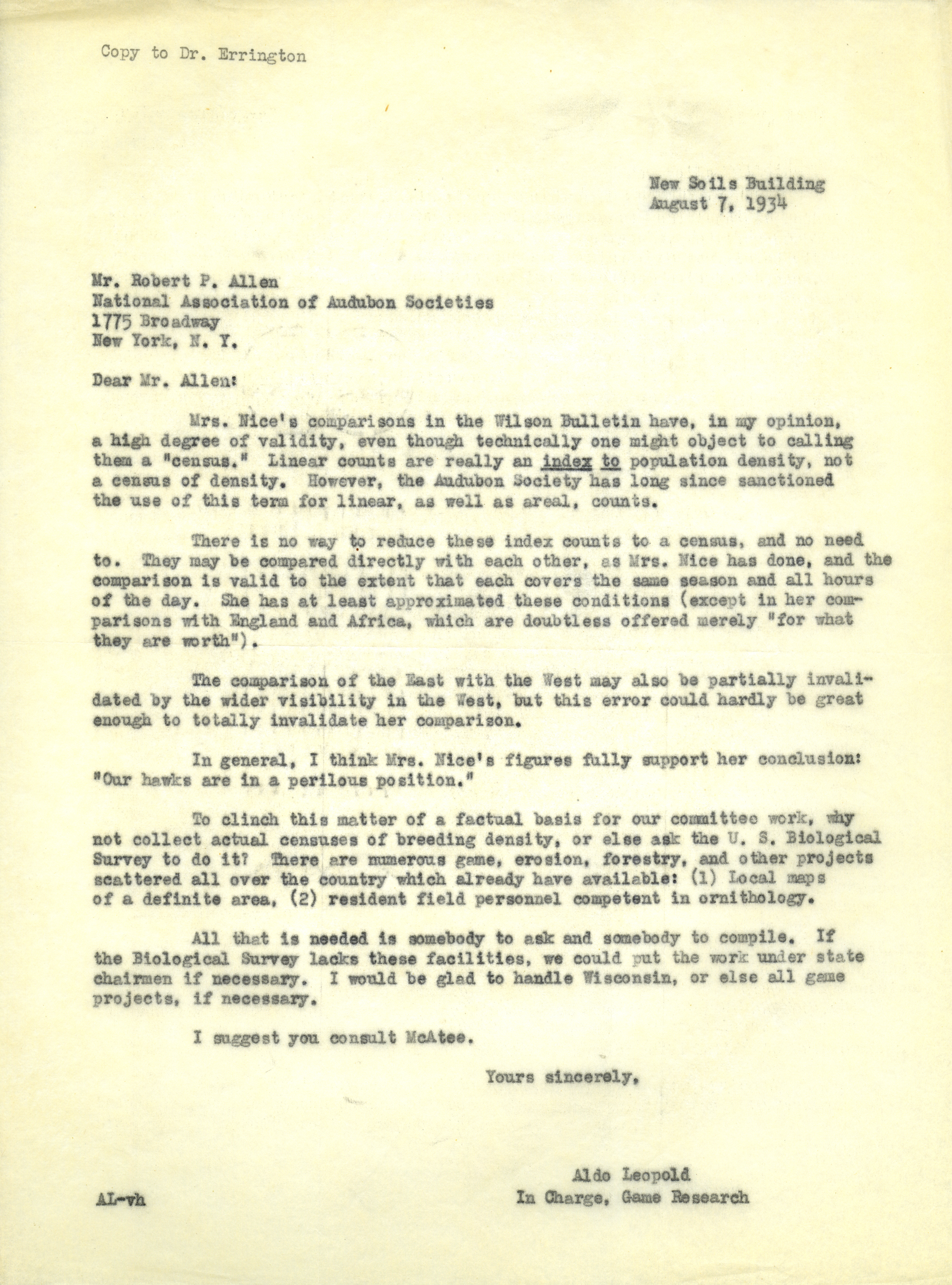 - "Aldo Leopold letter to Allen, August 7, 1934", Paul L. Errington Collection, Iowa State University Library Digital Collections