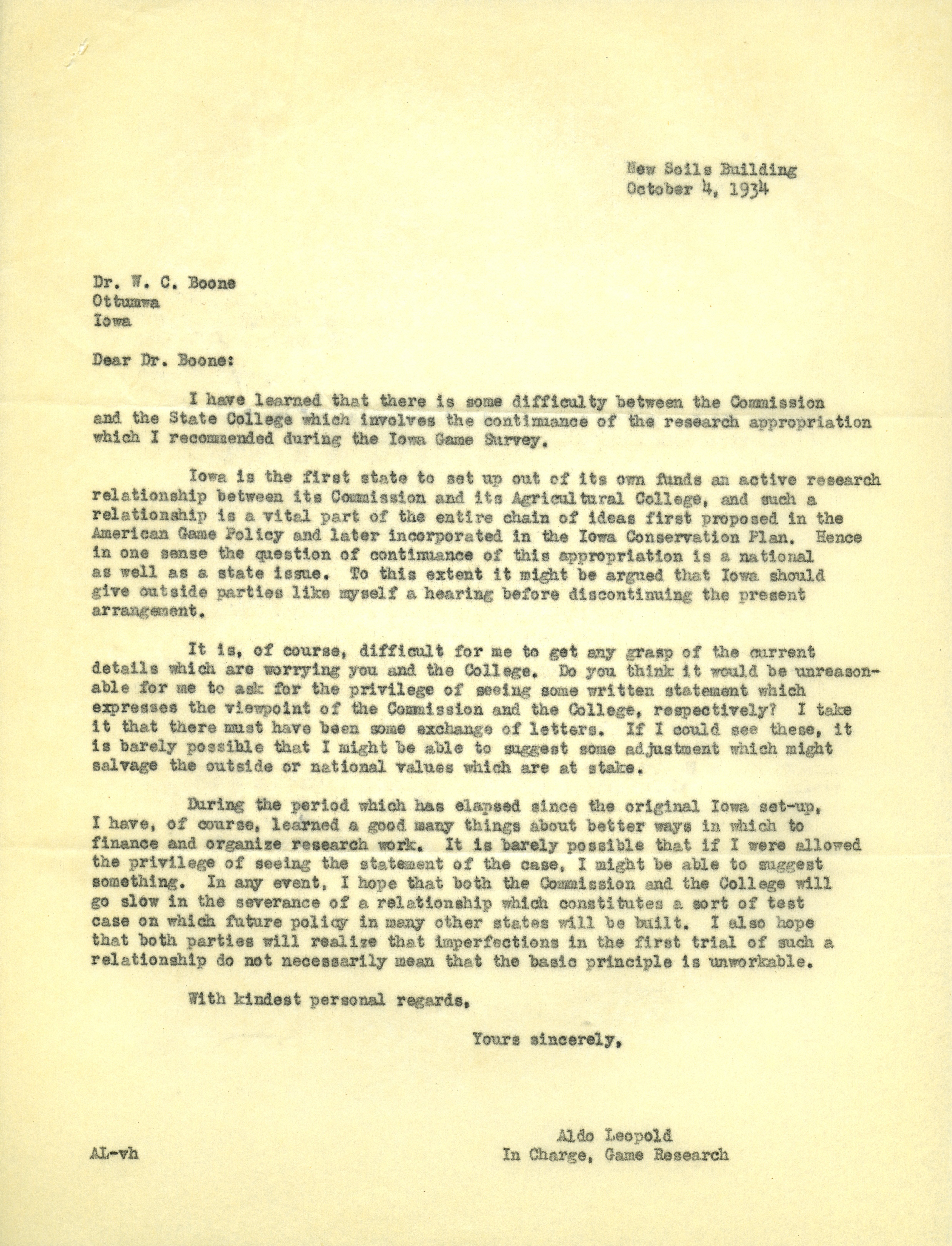 - Aldo Leopold letter to Boone, October 4, 1934