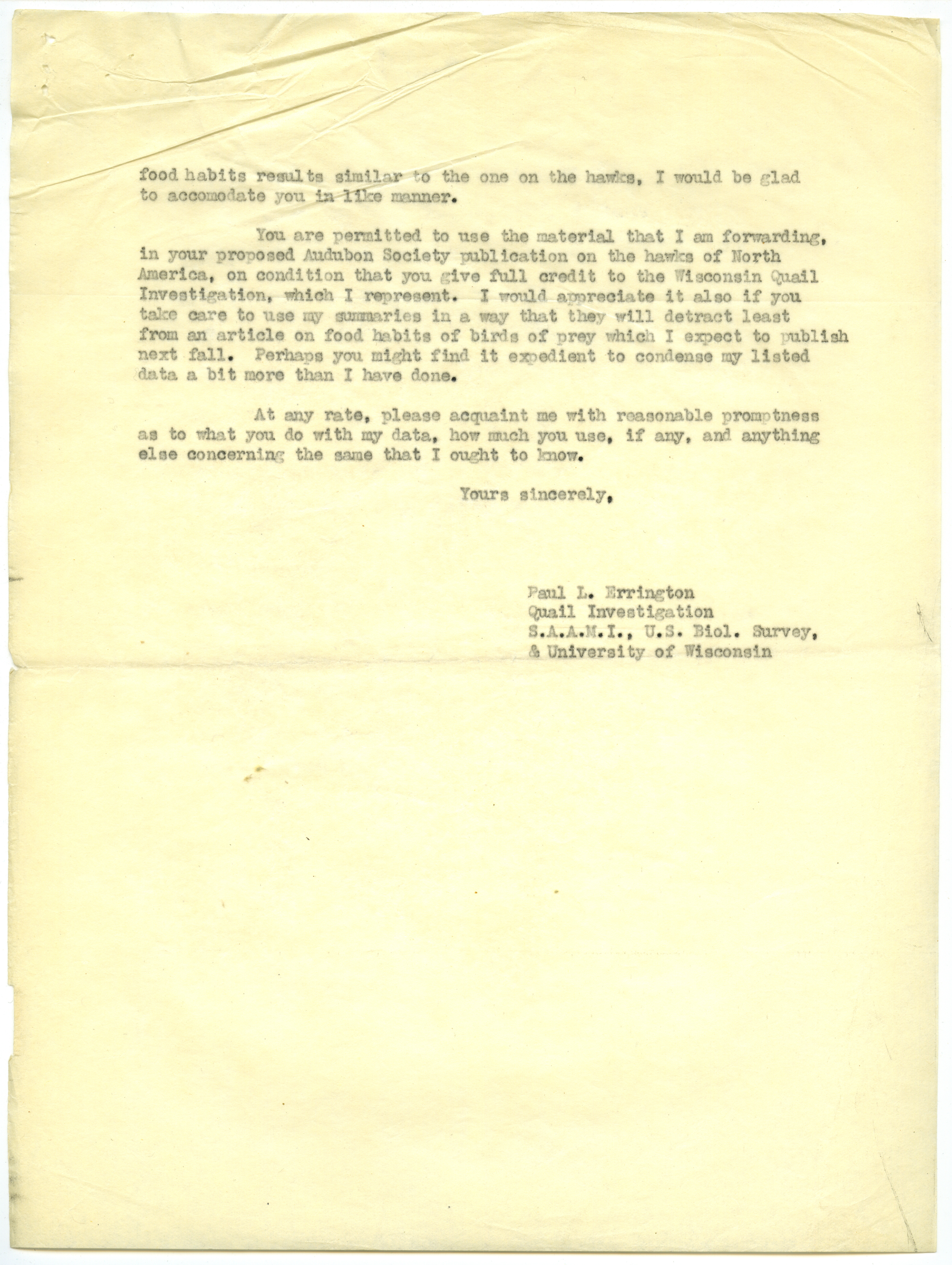 - "Paul L. Errington letter, December 20, 1930", Paul L. Errington Collection, Iowa State University Library Digital Collections