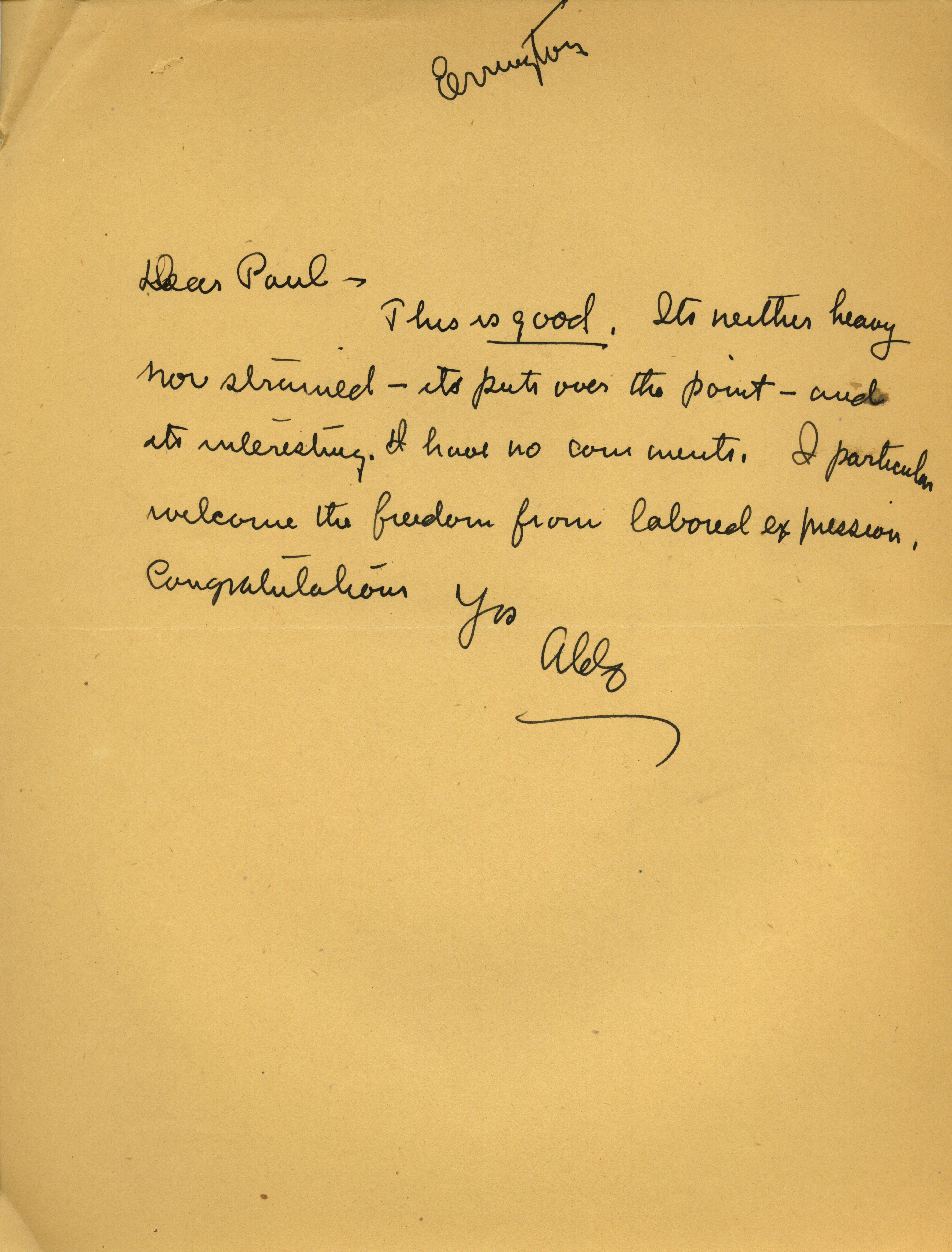 Aldo Leopold letter to Paul Errington, no date Item Info