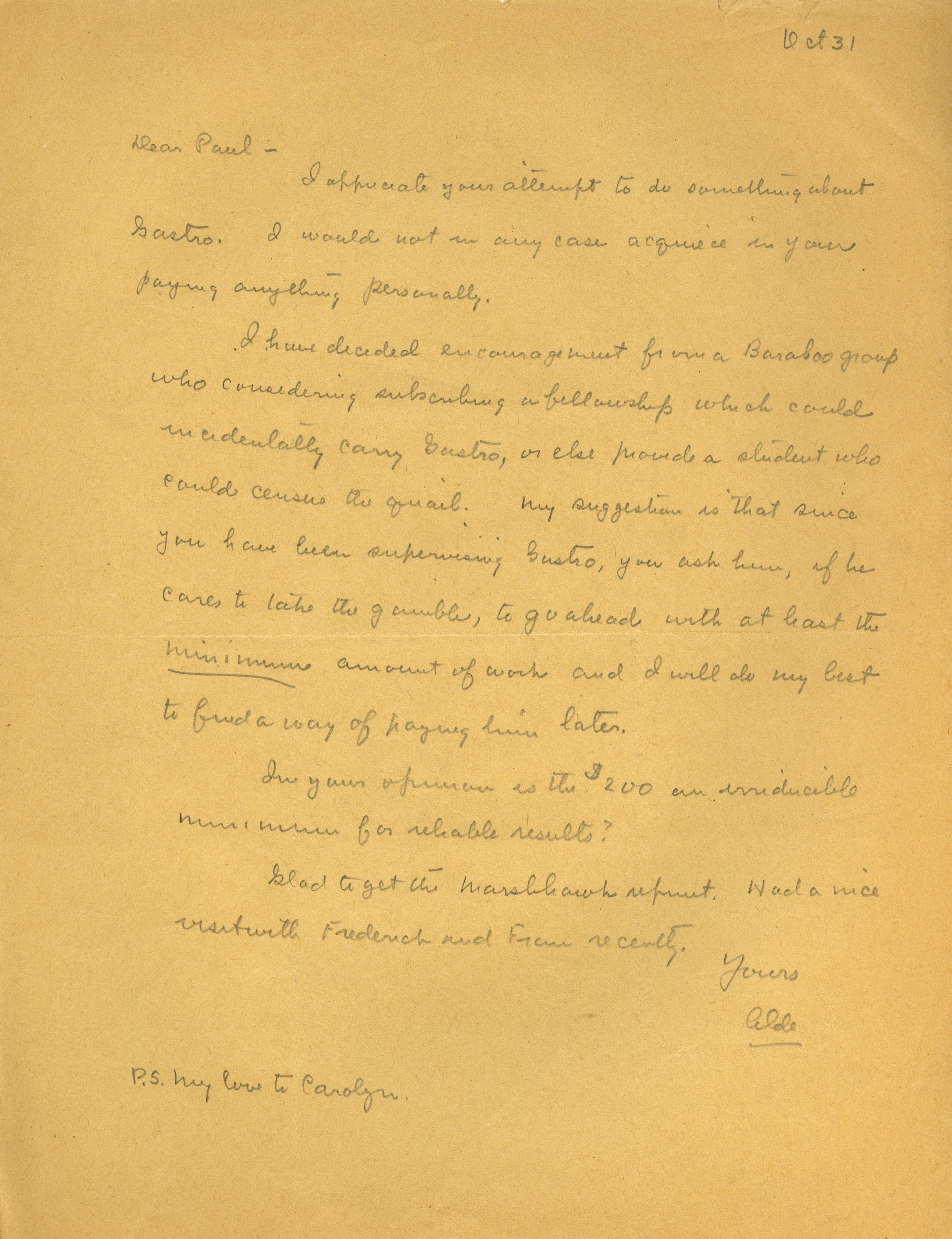 Aldo Leopold letter to Paul Errington, October 31, 1936 Item Info