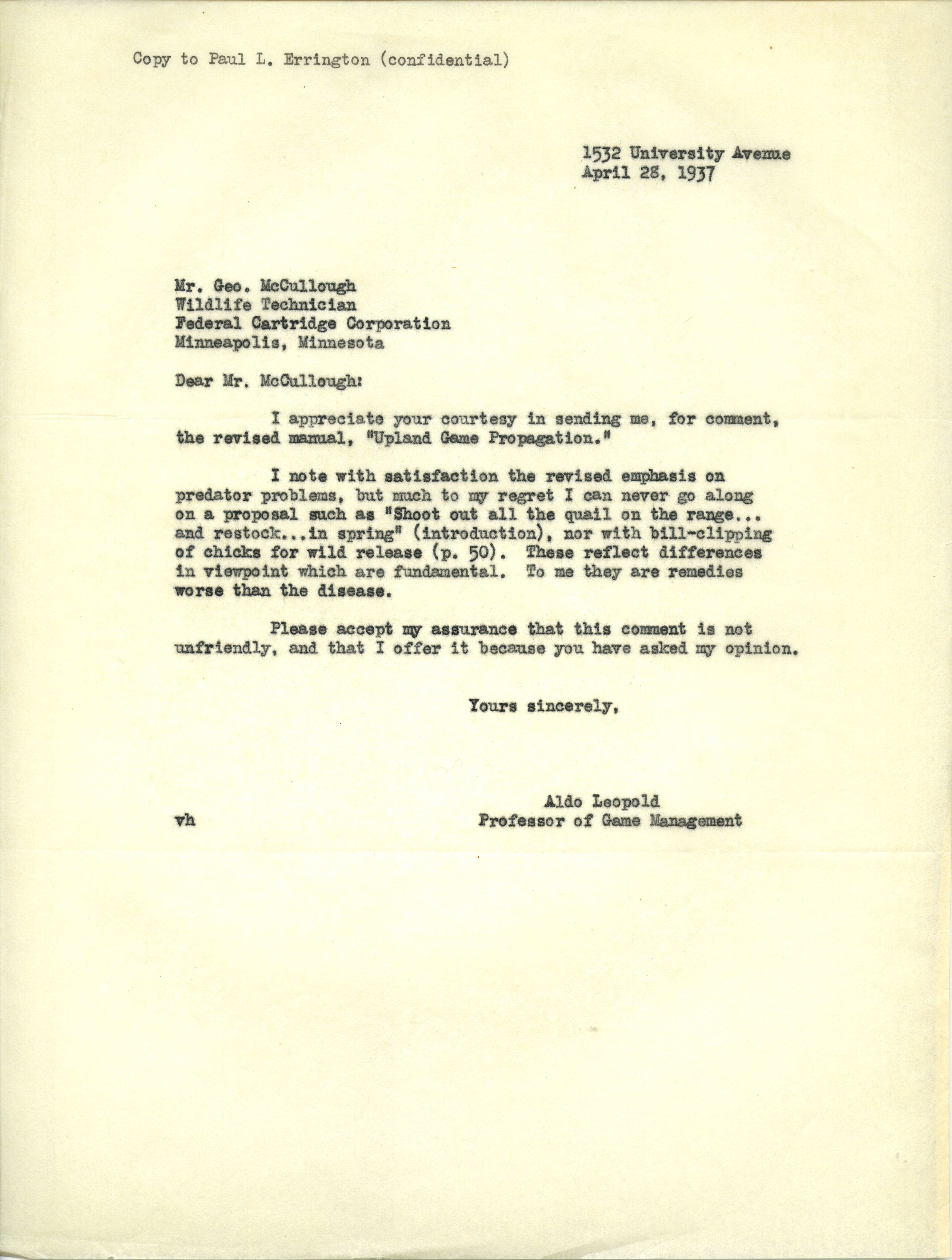 - Aldo Leopold letter to McCullough, April 28, 1937