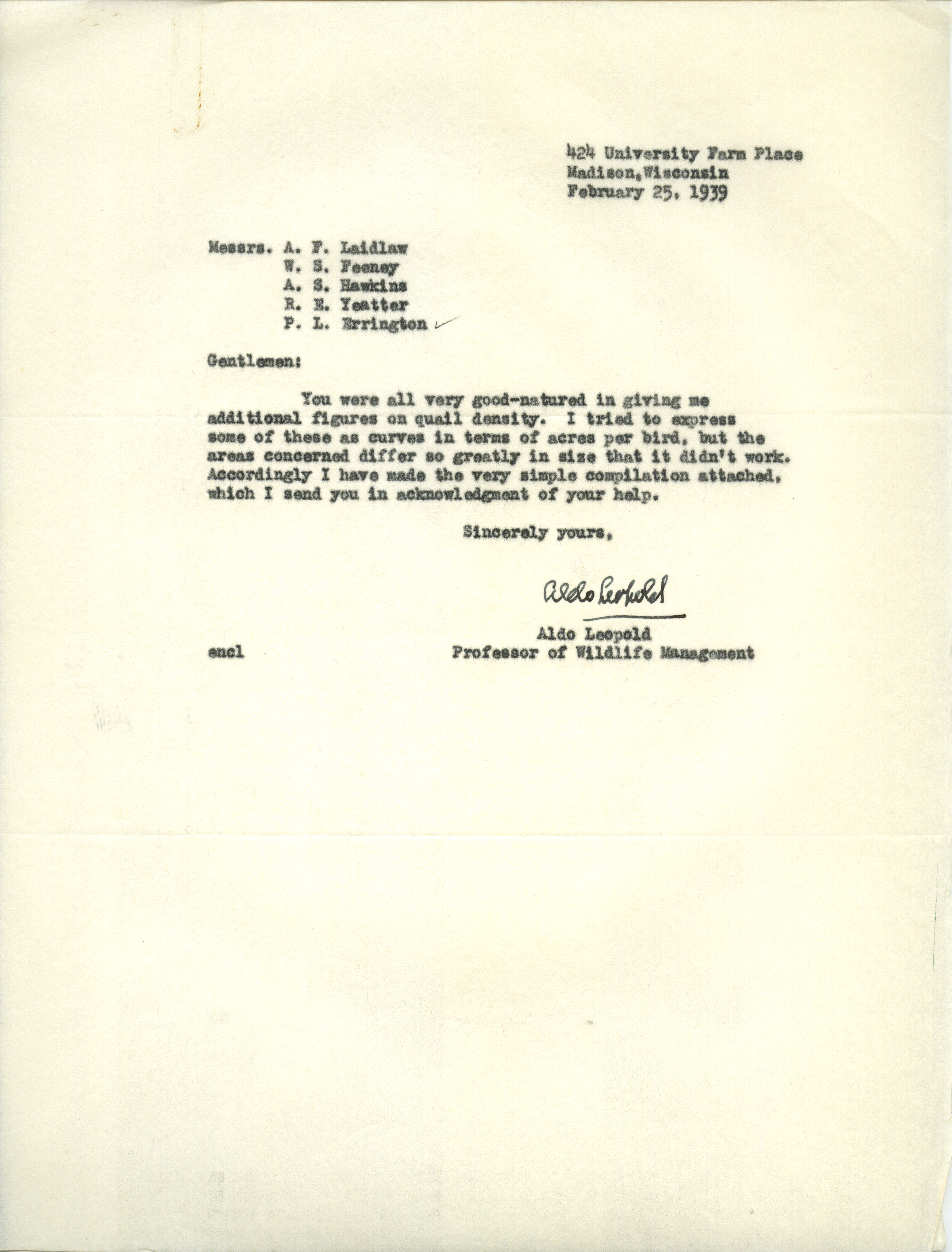 - Aldo Leopold letter to Paul Errington, February 25, 1939