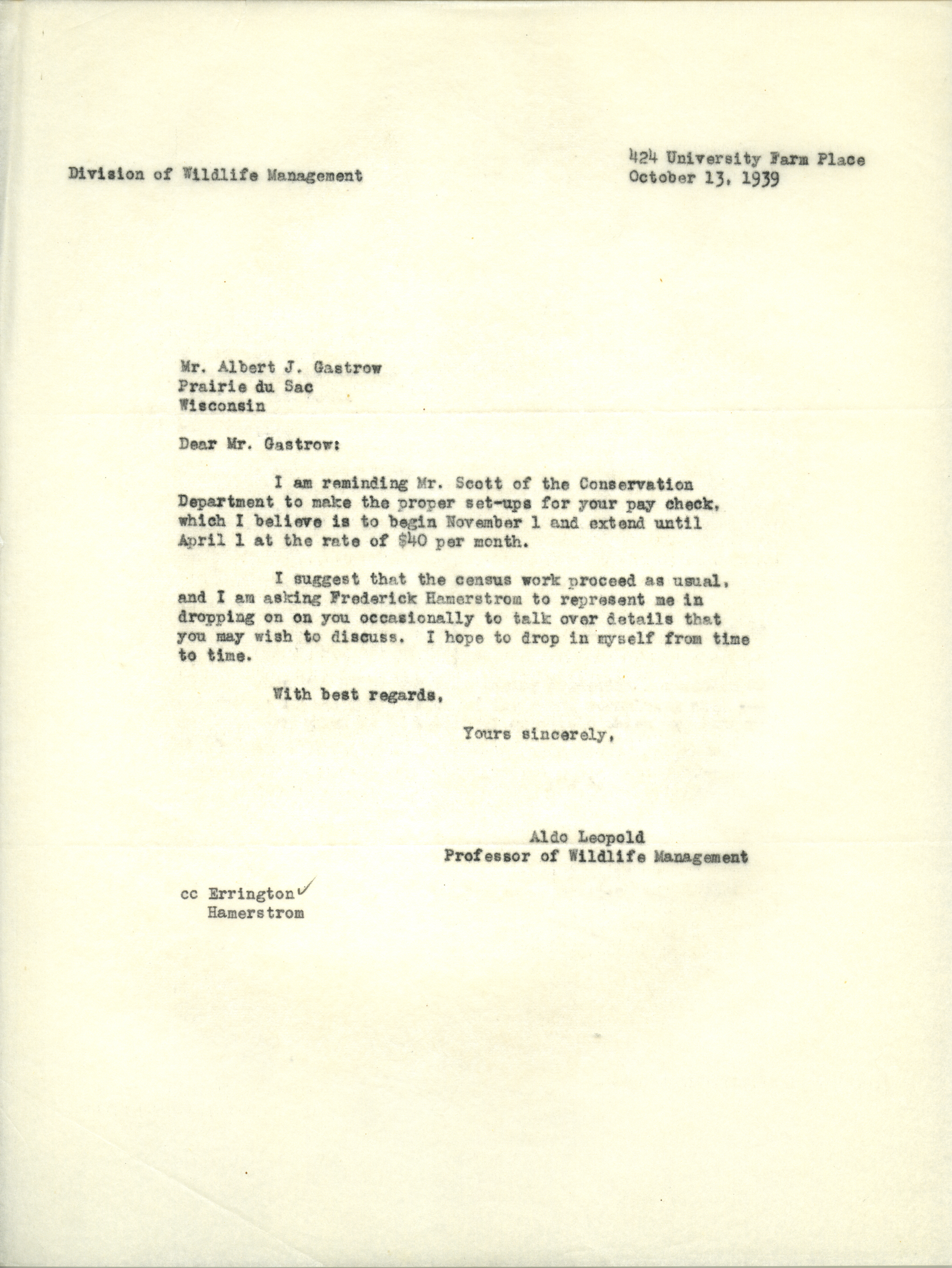 - Aldo Leopold letter to Gastrow, October 13, 1939