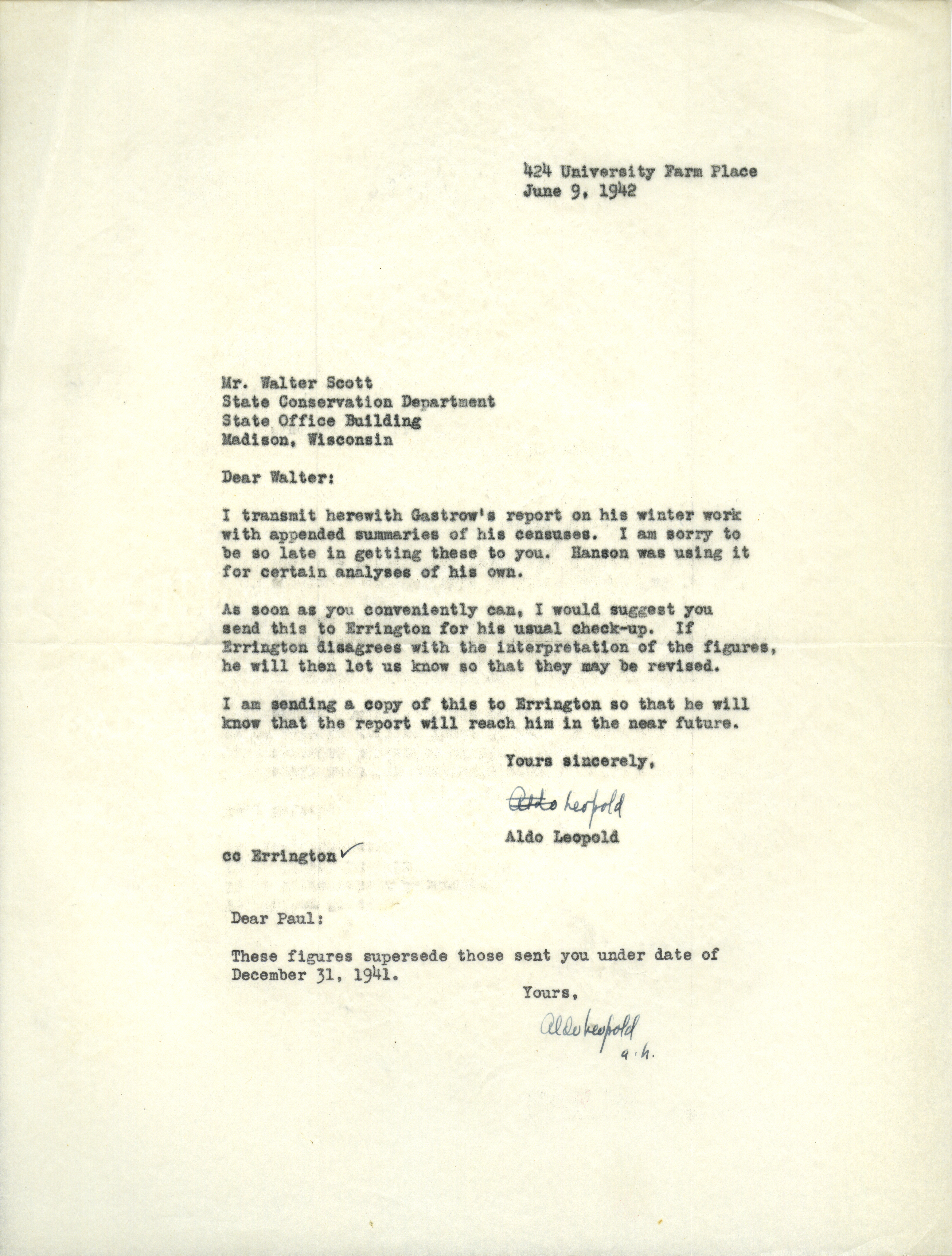 Aldo Leopold letter to Scott, June 9, 1942 Item Info