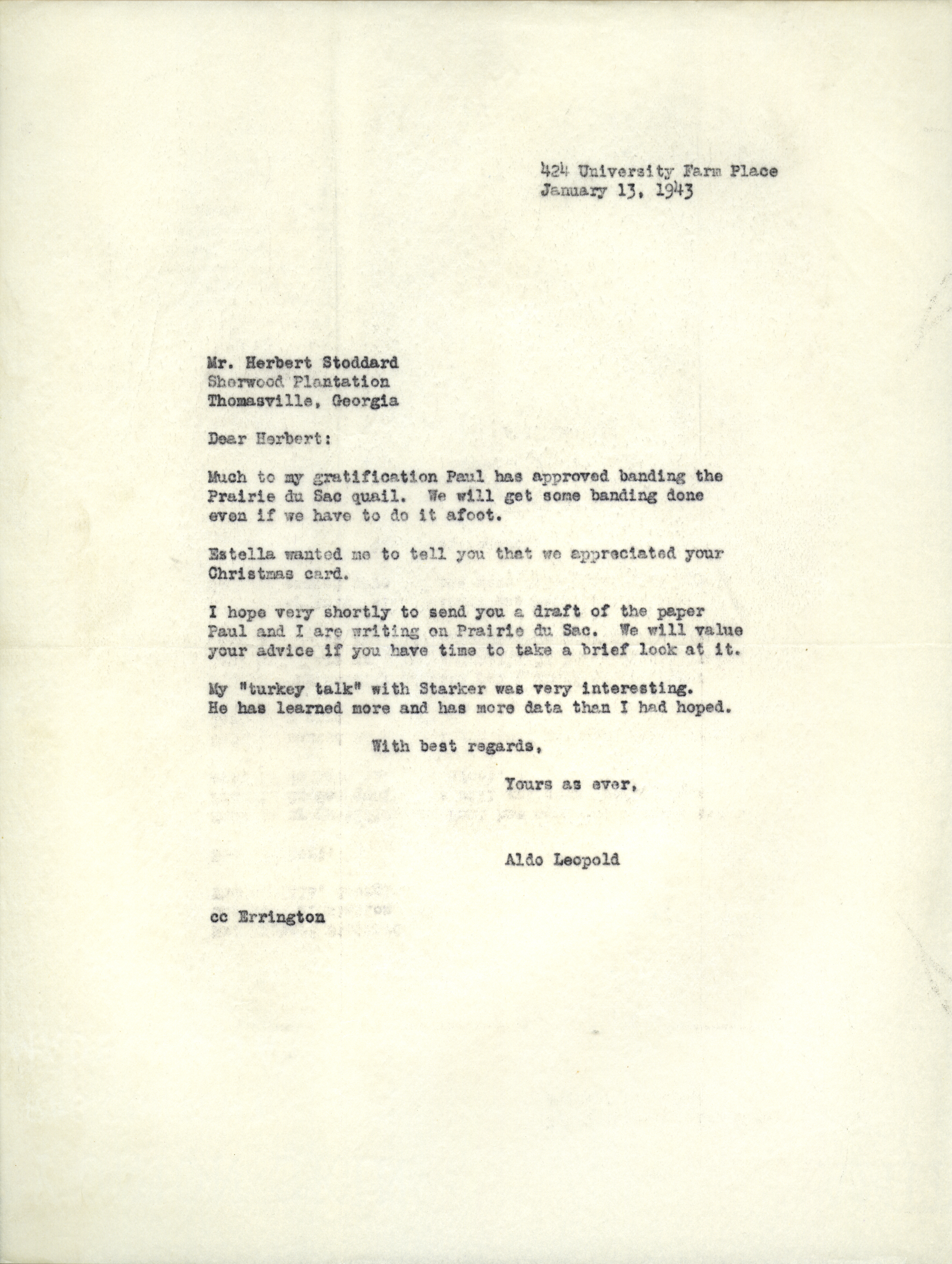 - Aldo Leopold letter to Stoddard, January 13, 1943