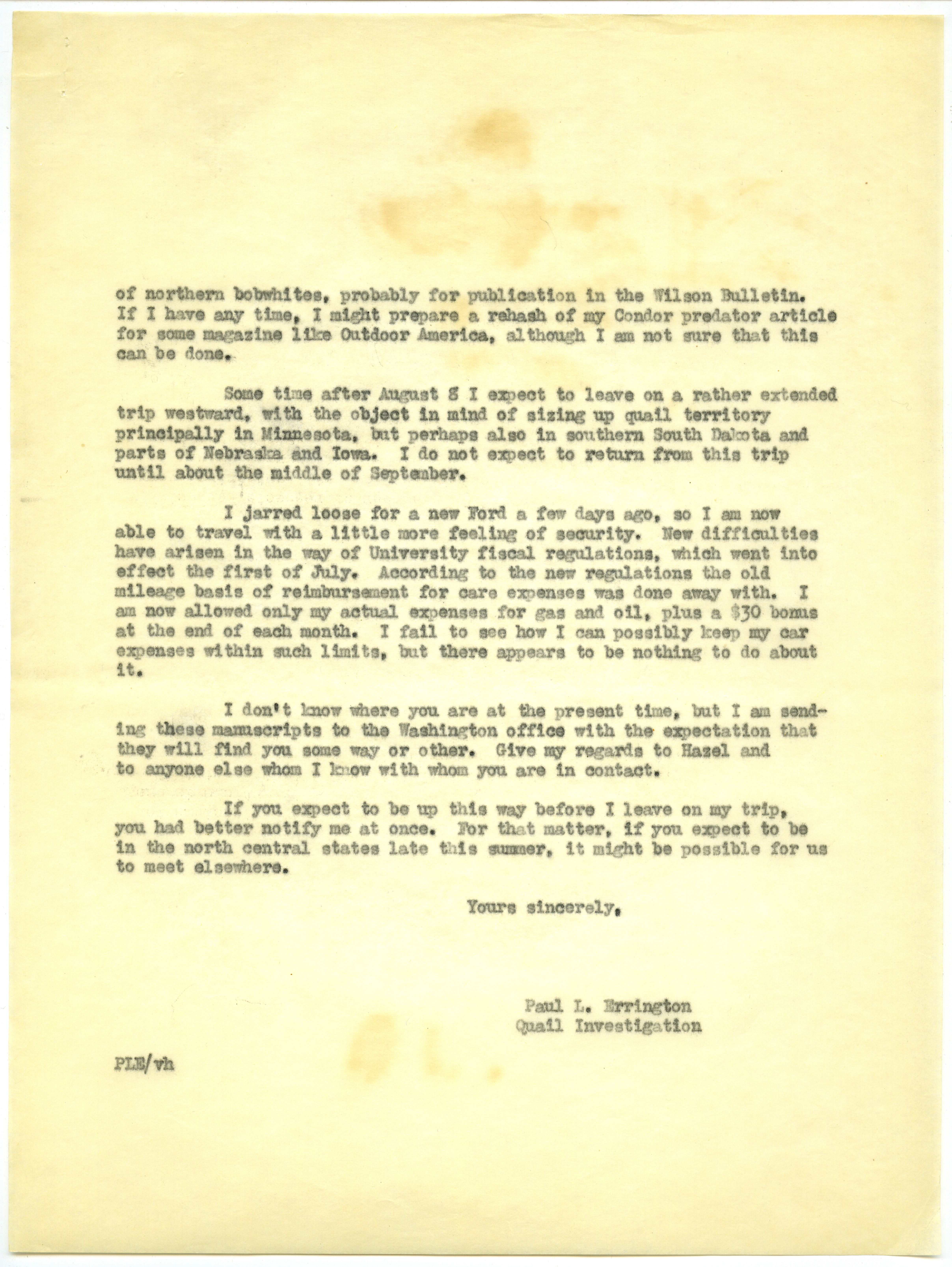 - "Paul L. Errington letter, July 23, 1931", Paul L. Errington Collection, Iowa State University Library Digital Collections