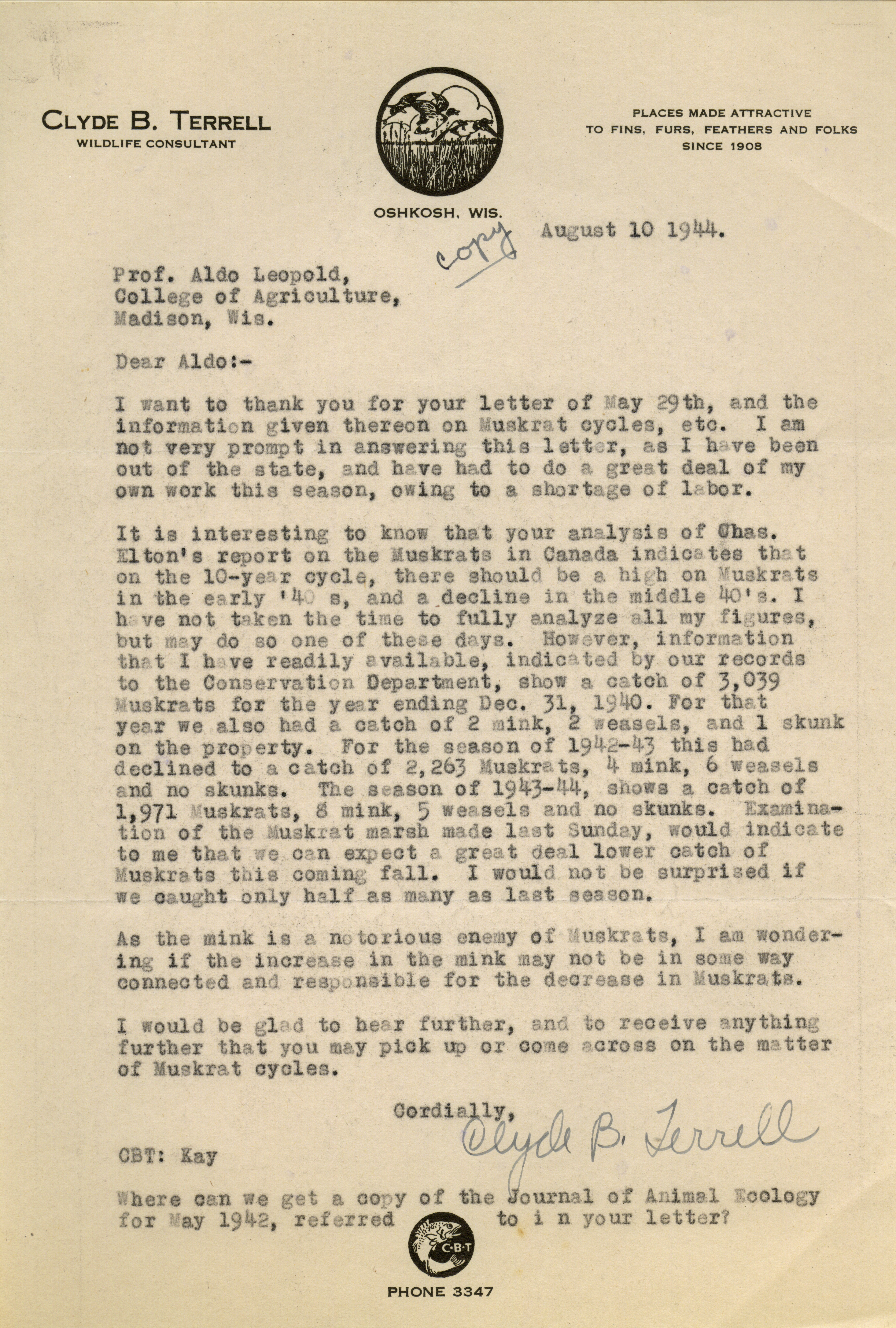 - Letter from Terrell to Aldo Leopold, August 10, 1944